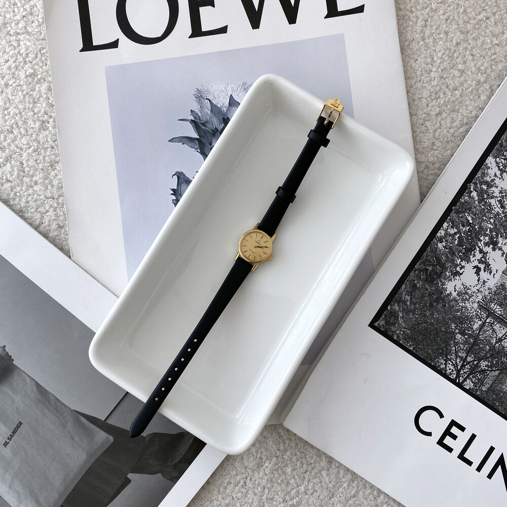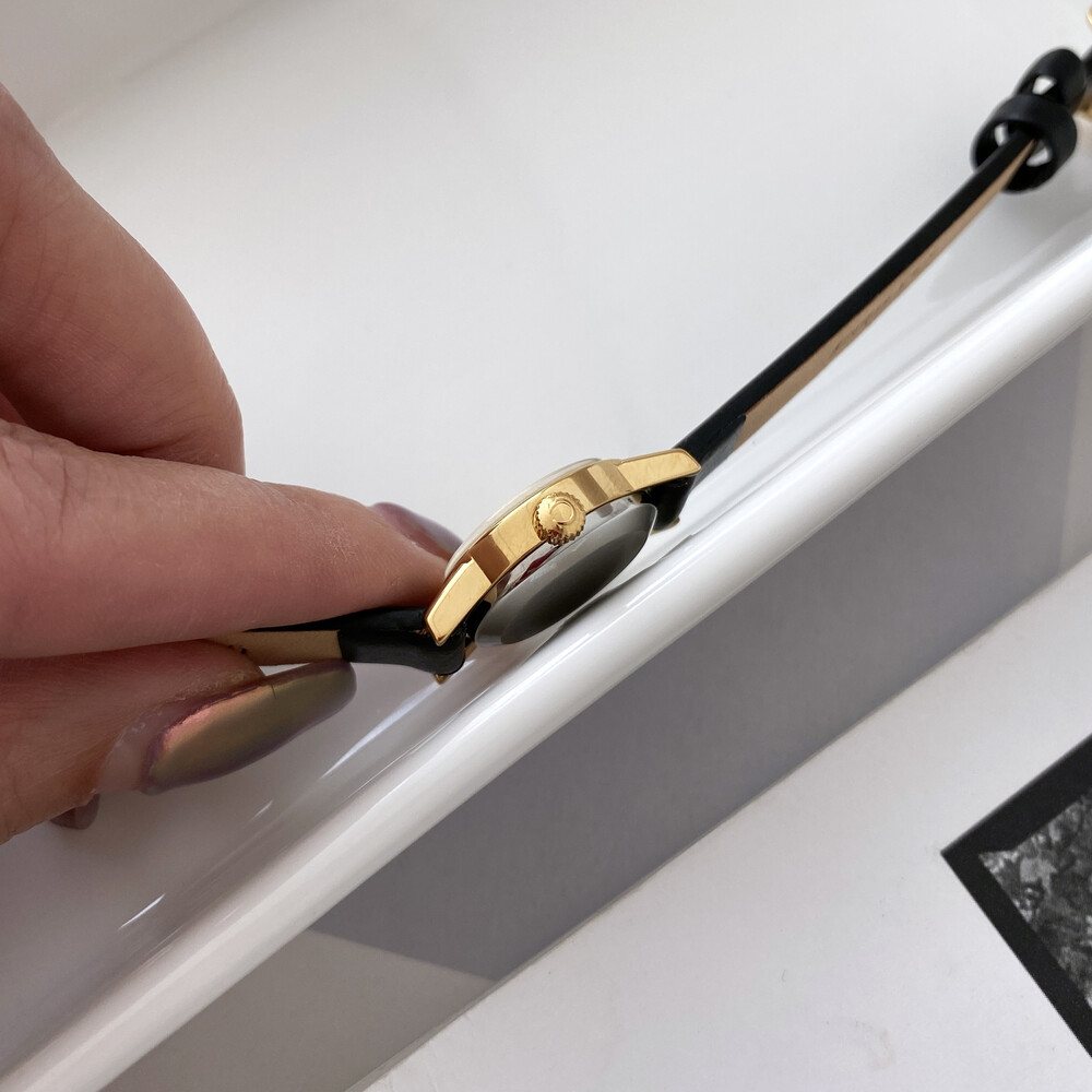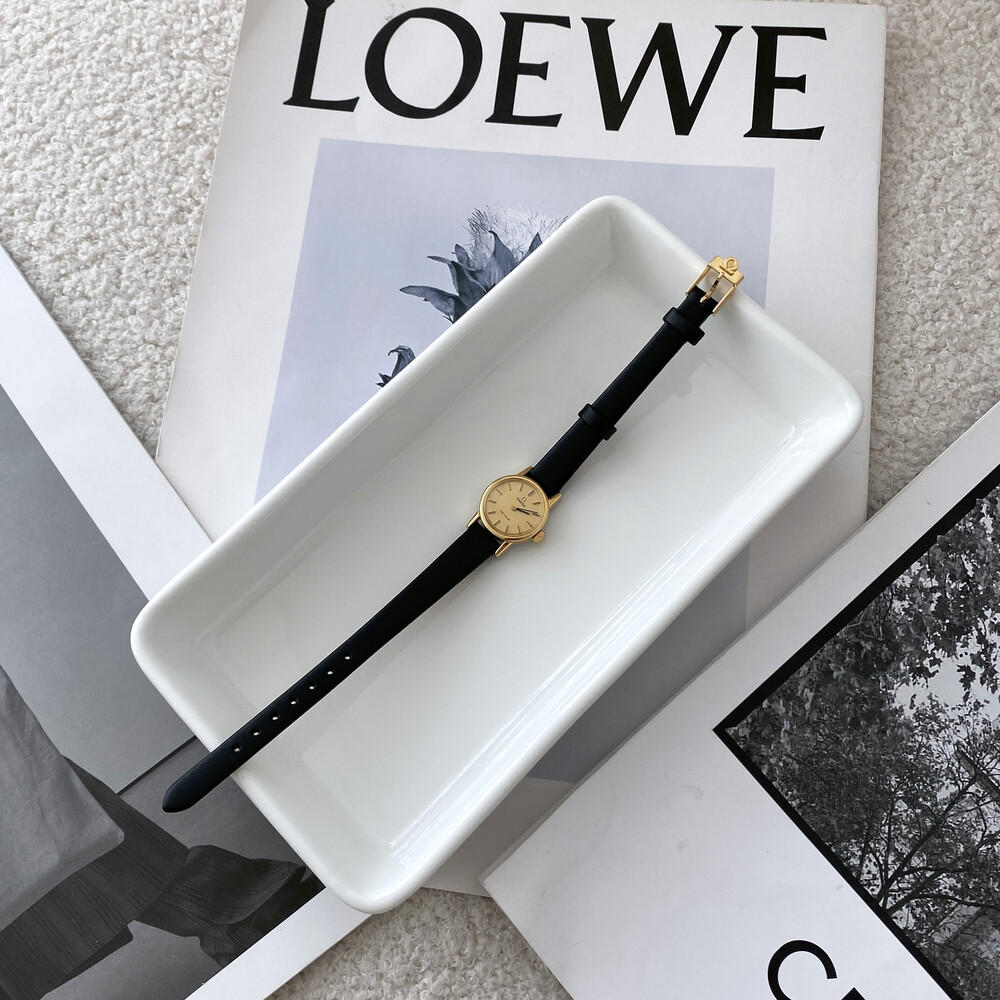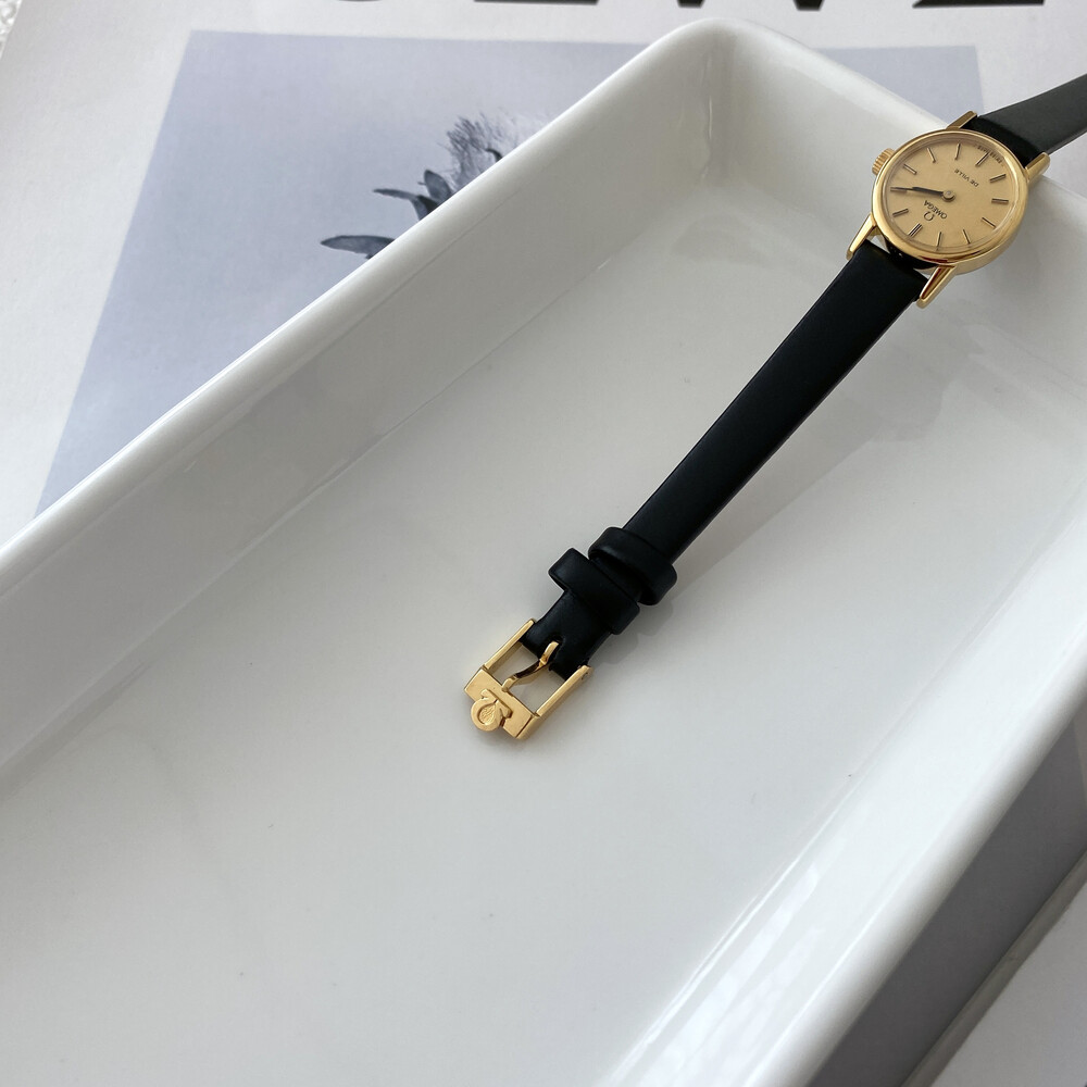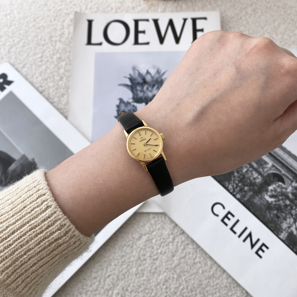 1977년도에 출시된 오메가 드빌 모델로 부드러운 골드톤 케이스,