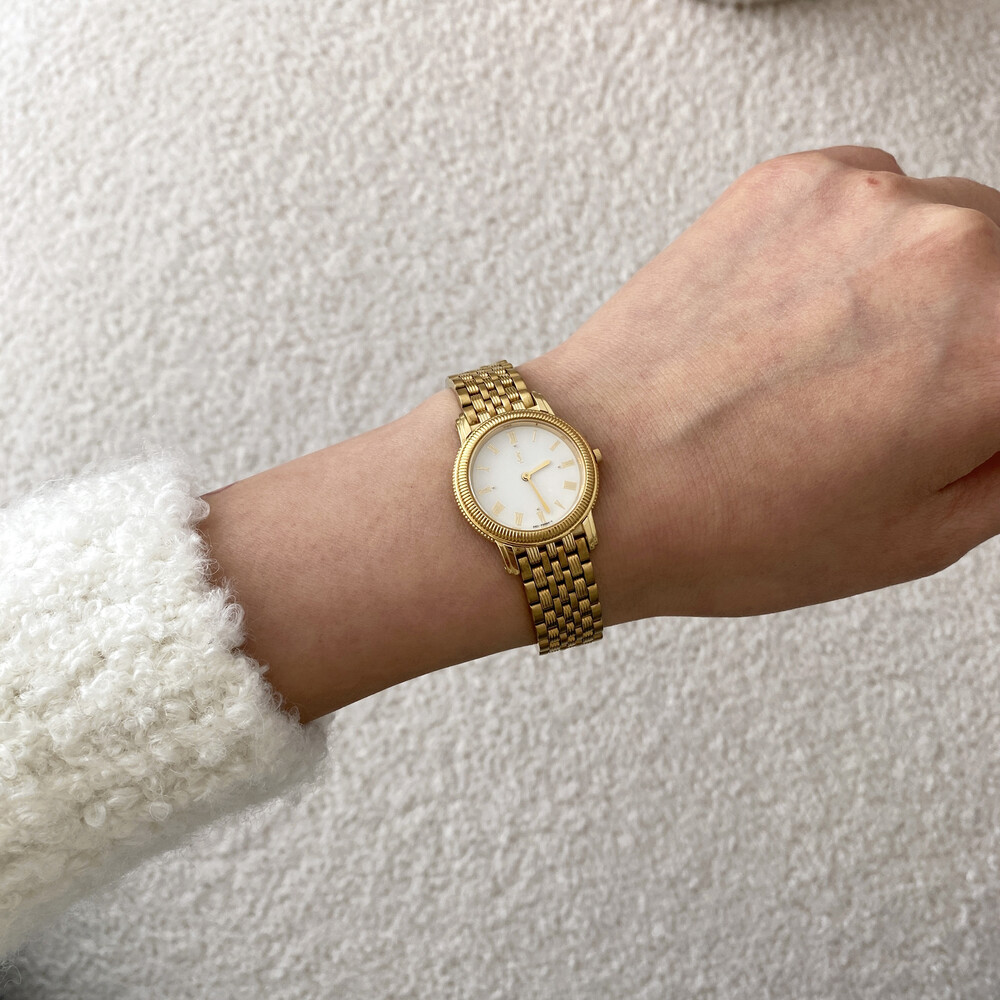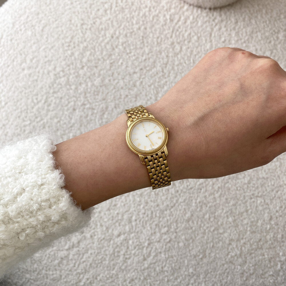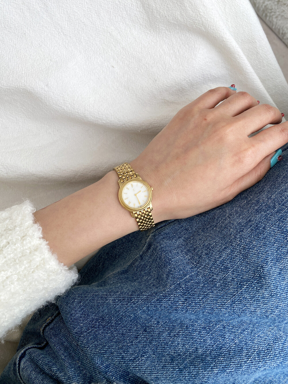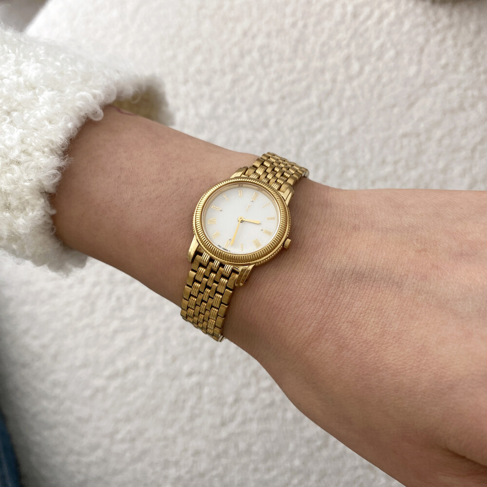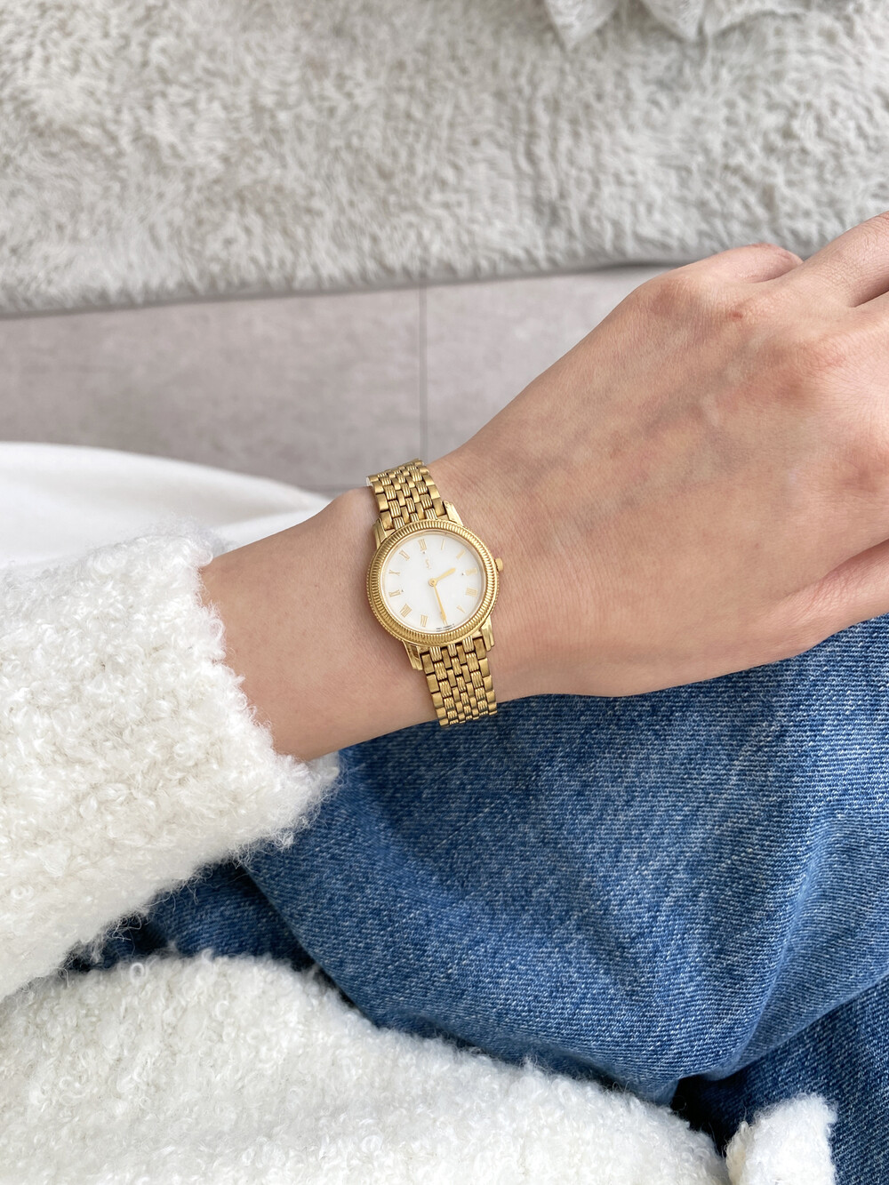골드 컬러에서 나오는 화려함과 화이트 다이얼에서 나오는 순수함의 조화가 아름다운 시계로
