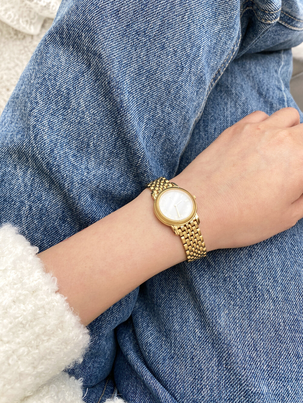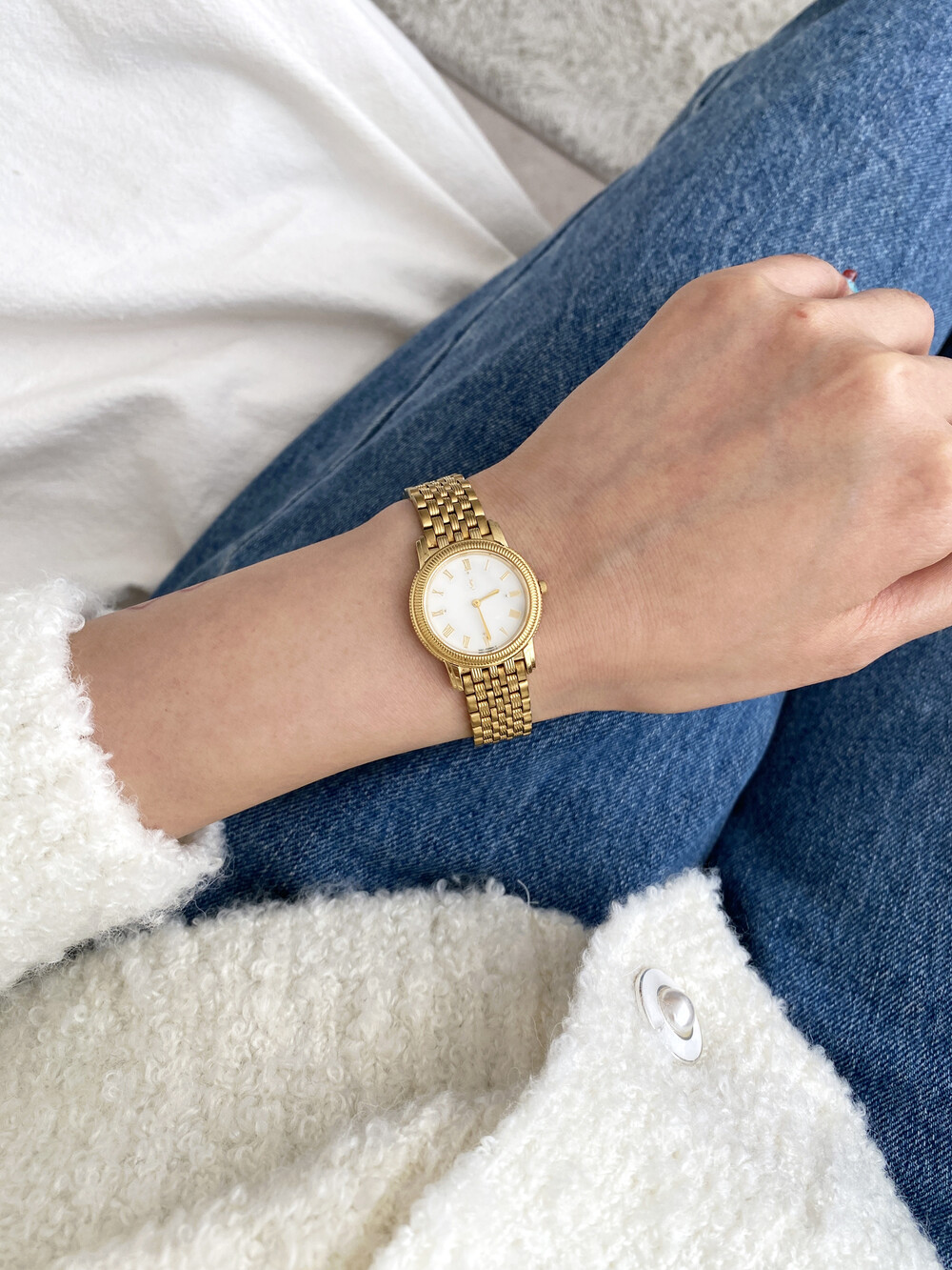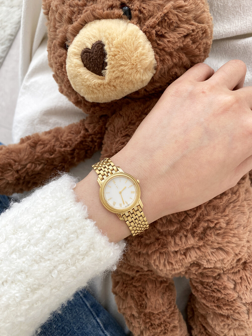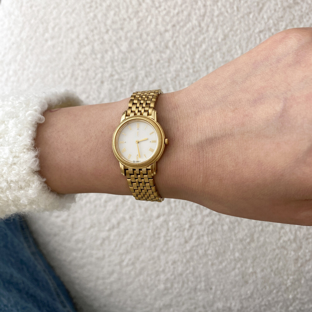 골드 컬러에서 나오는 화려함과 화이트 다이얼에서 나오는 순수함의 조화가 아름다운 시계로