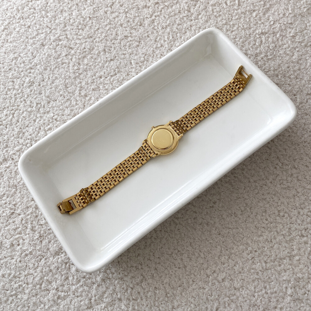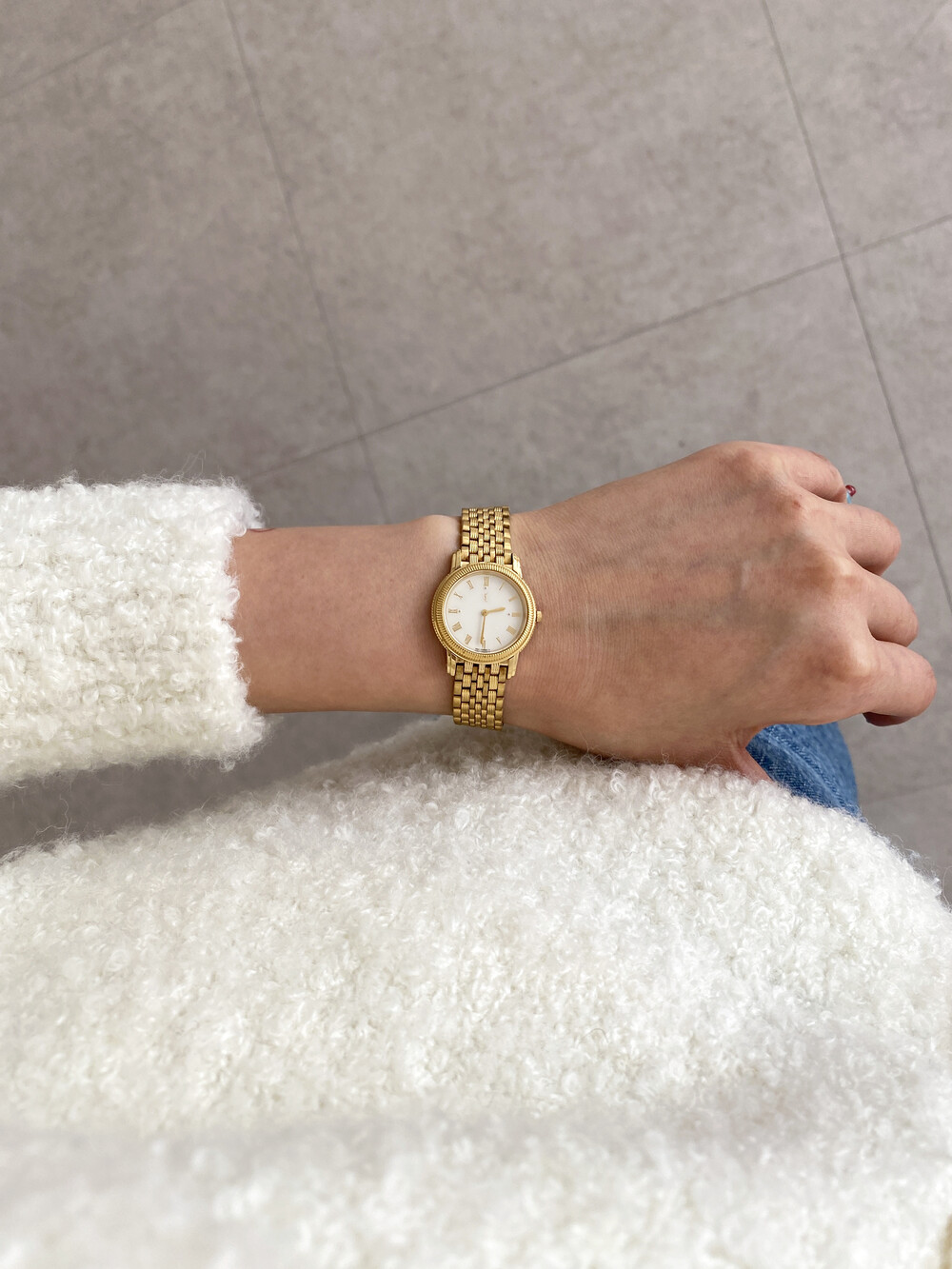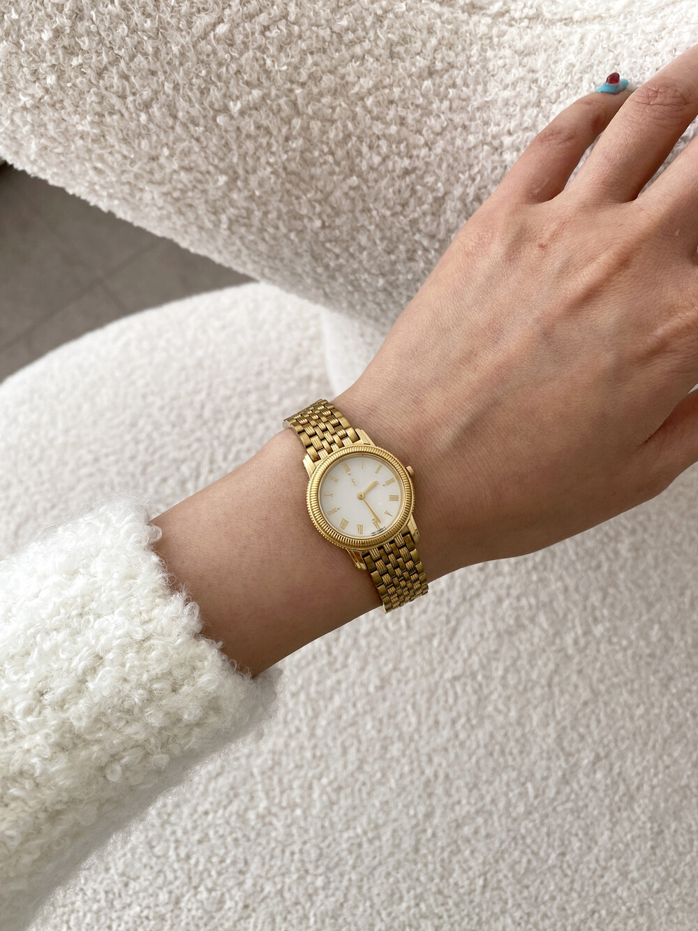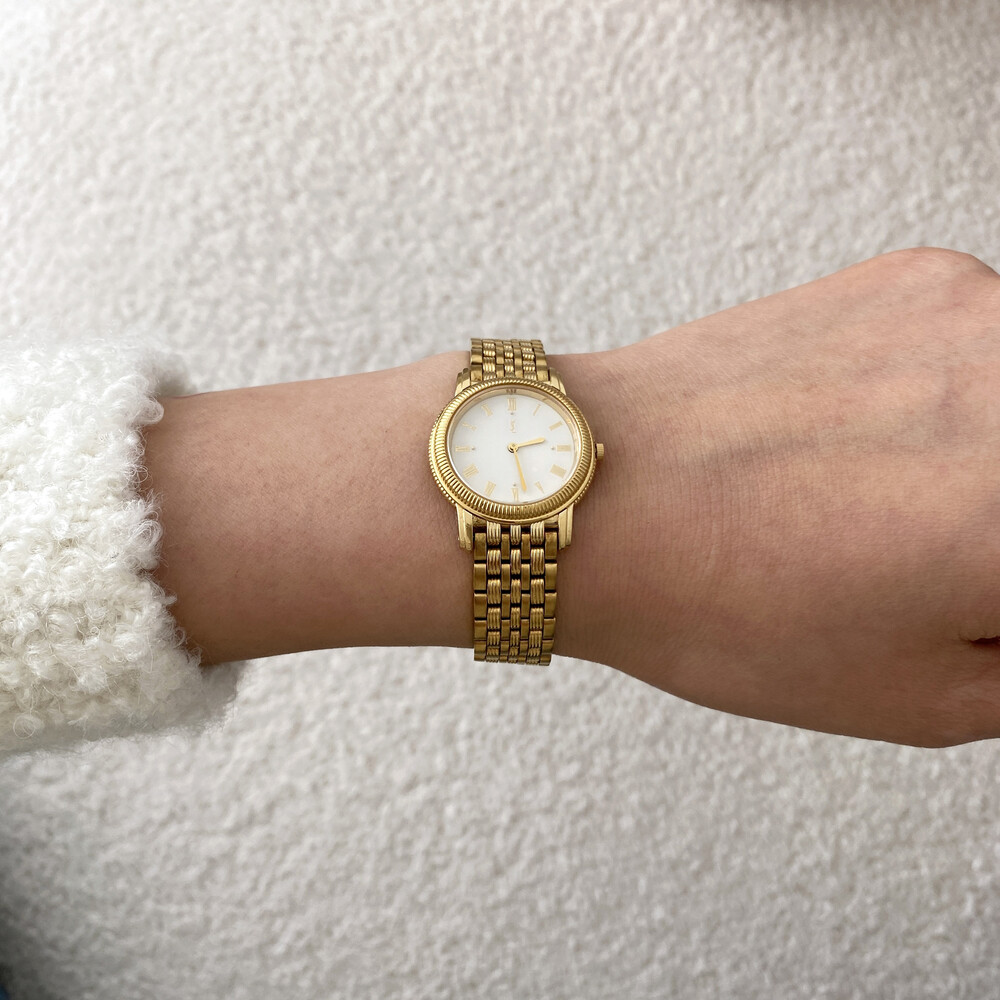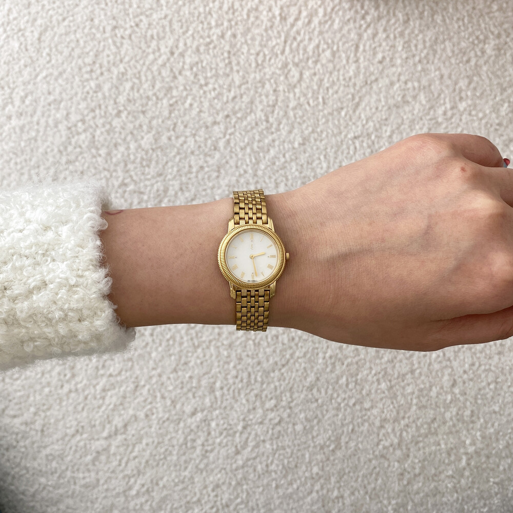 골드 컬러에서 나오는 화려함과 화이트 다이얼에서 나오는 순수함의 조화가 아름다운 시계로