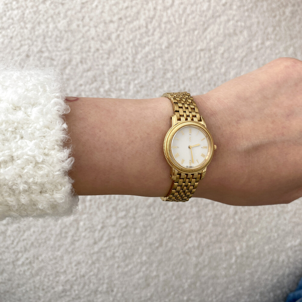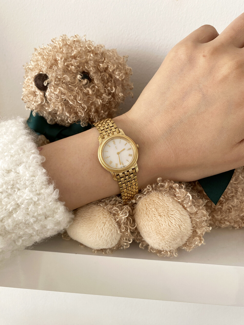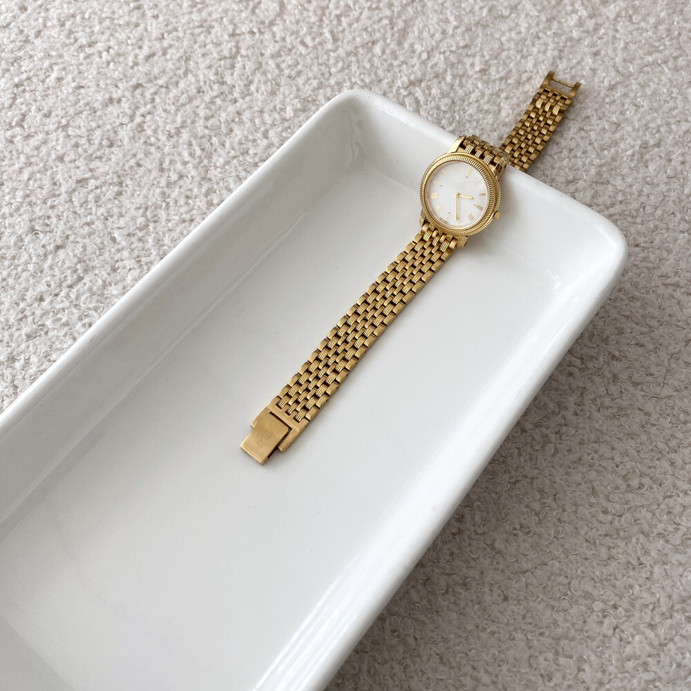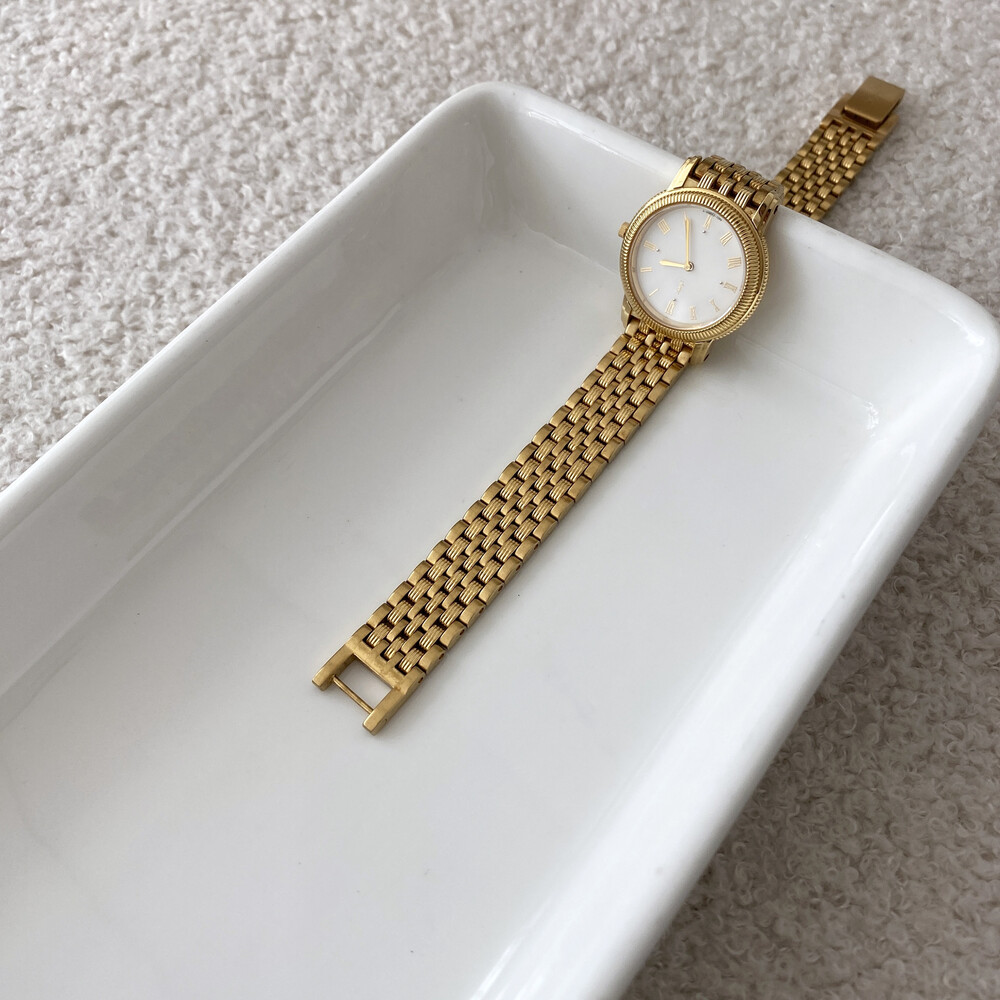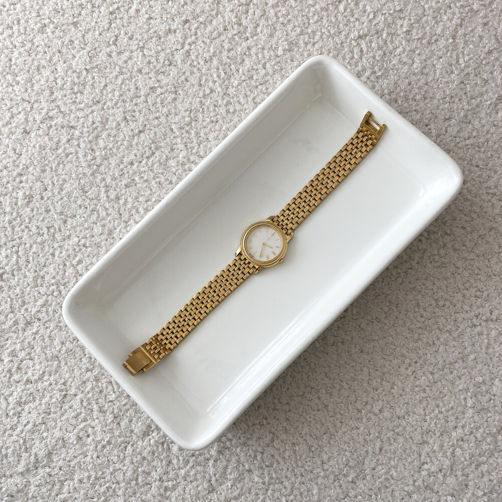 골드 컬러에서 나오는 화려함과 화이트 다이얼에서 나오는 순수함의 조화가 아름다운 시계로