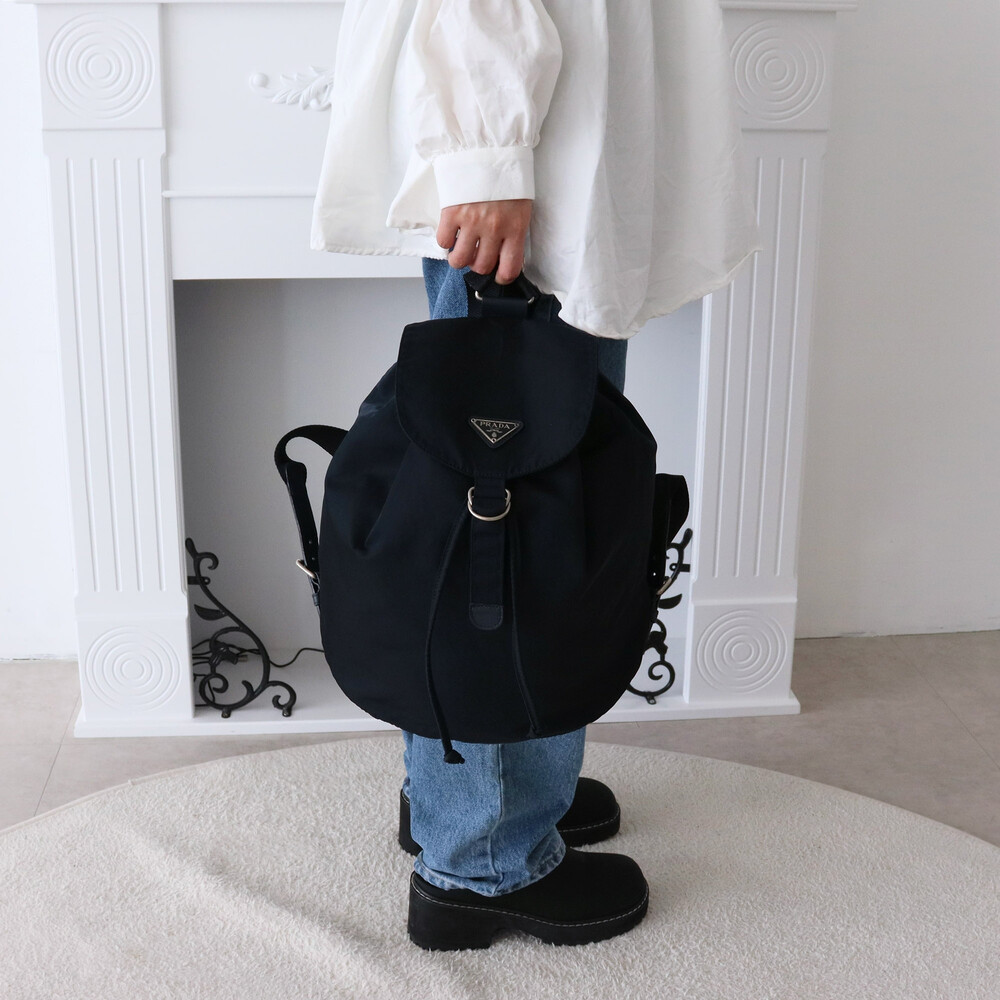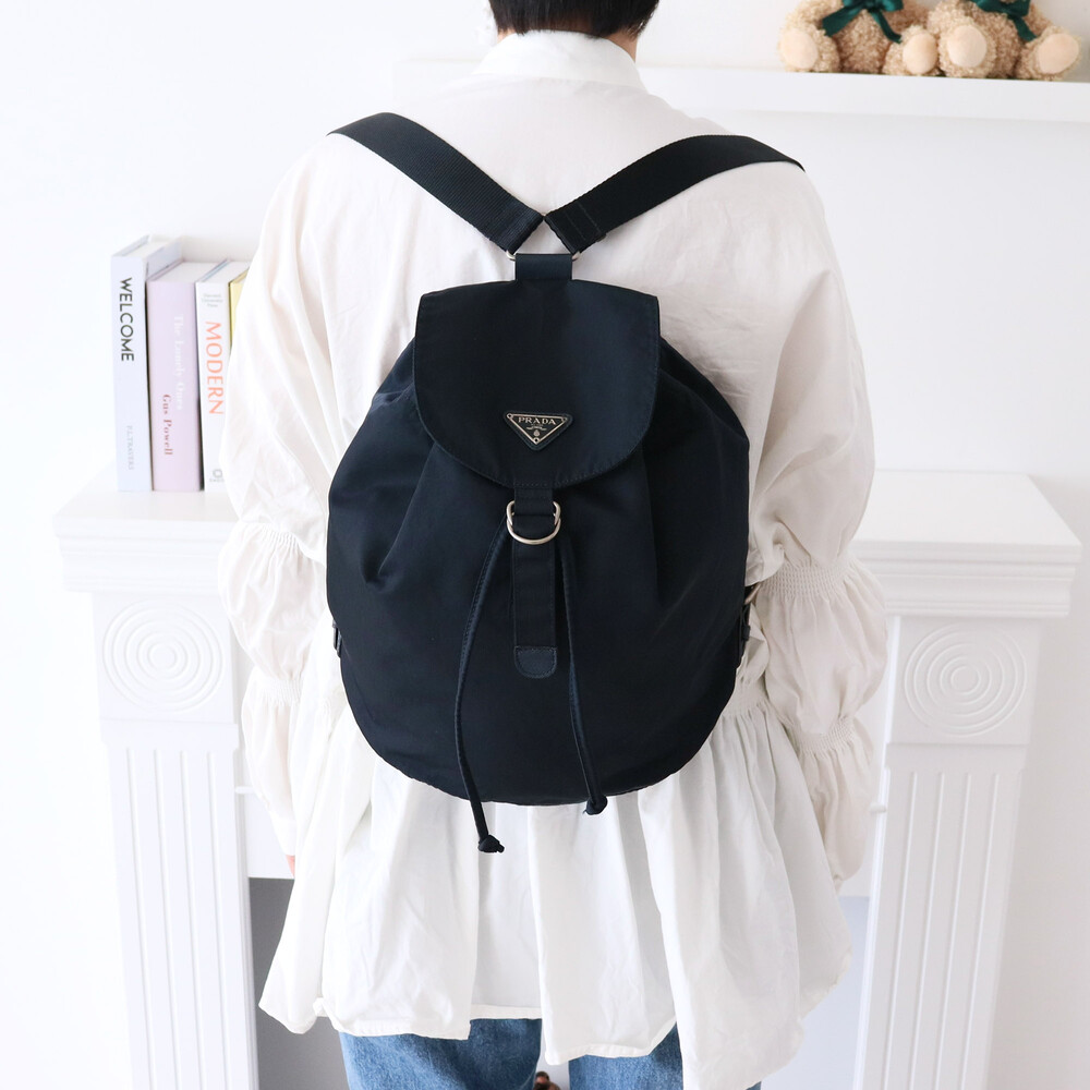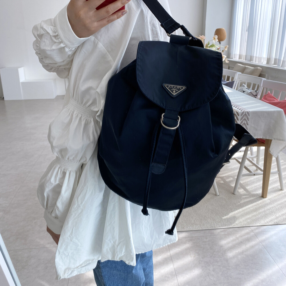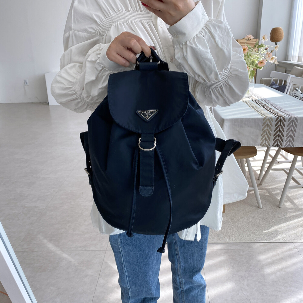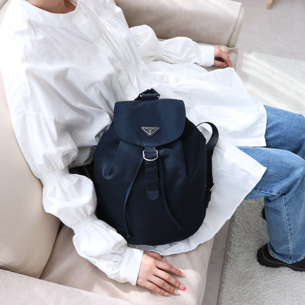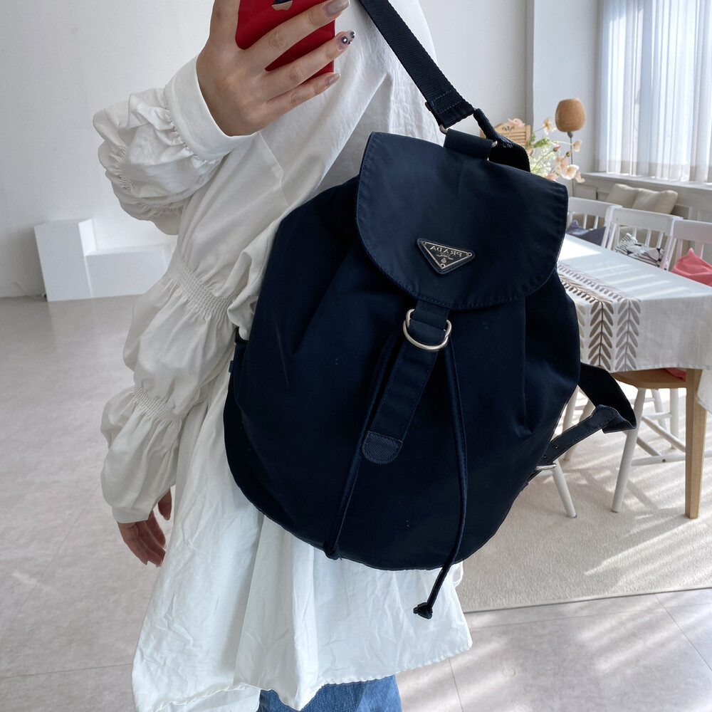프라다 헤리티지 나일론 바디와 프라다 삼각 플레이트 장식이 매력적인 모델입니다.