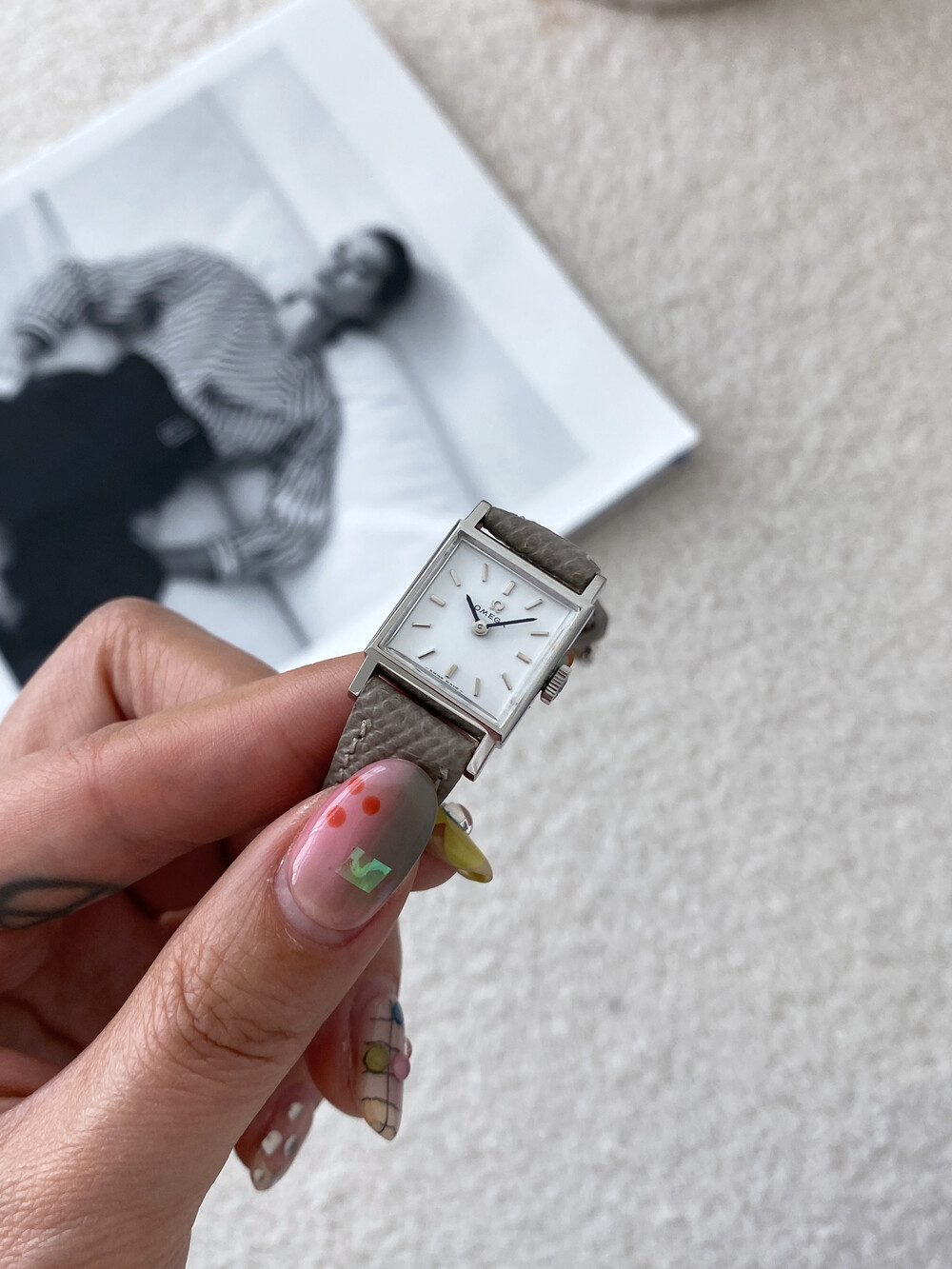 1965년도에 출시된 오메가 모델로 클래식한 스퀘어 케이스,