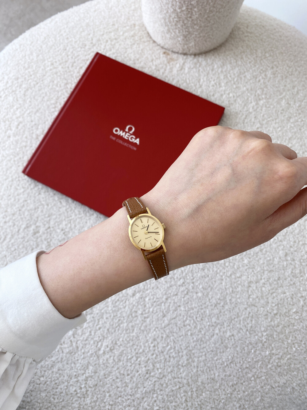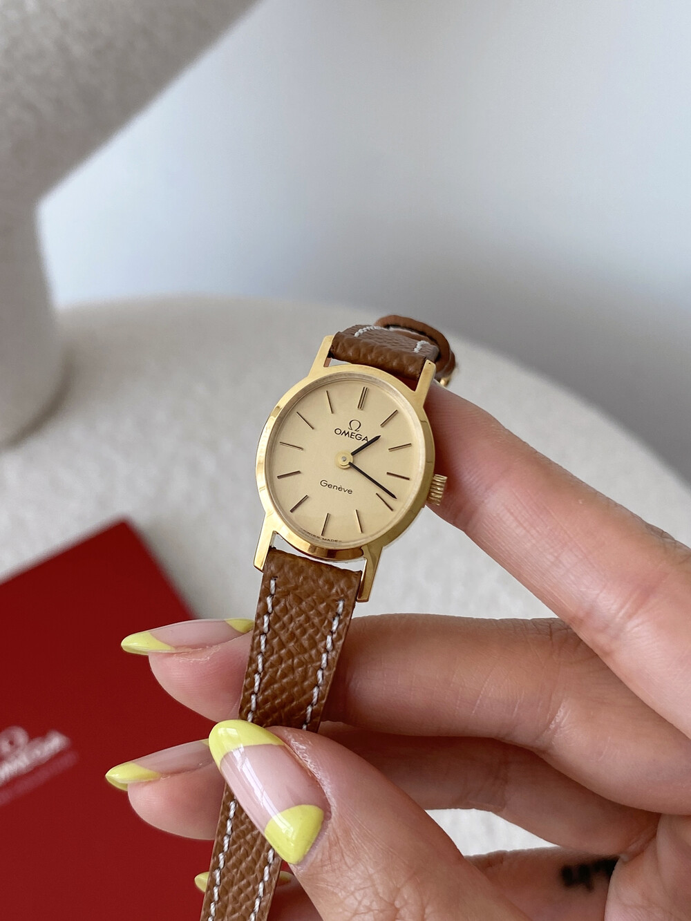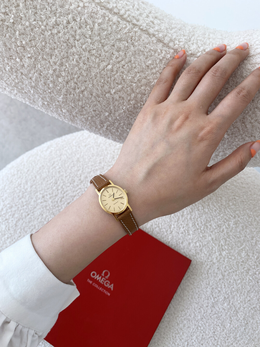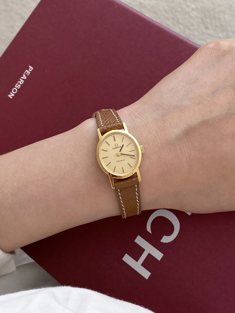 1973년도에 제작된 오메가 제네브 모델로 21mm의 오발 골드 케이스,