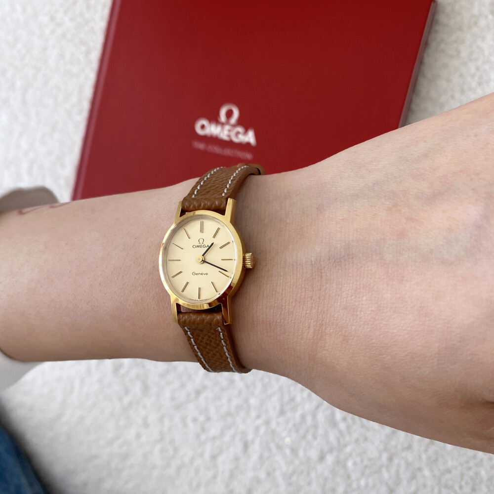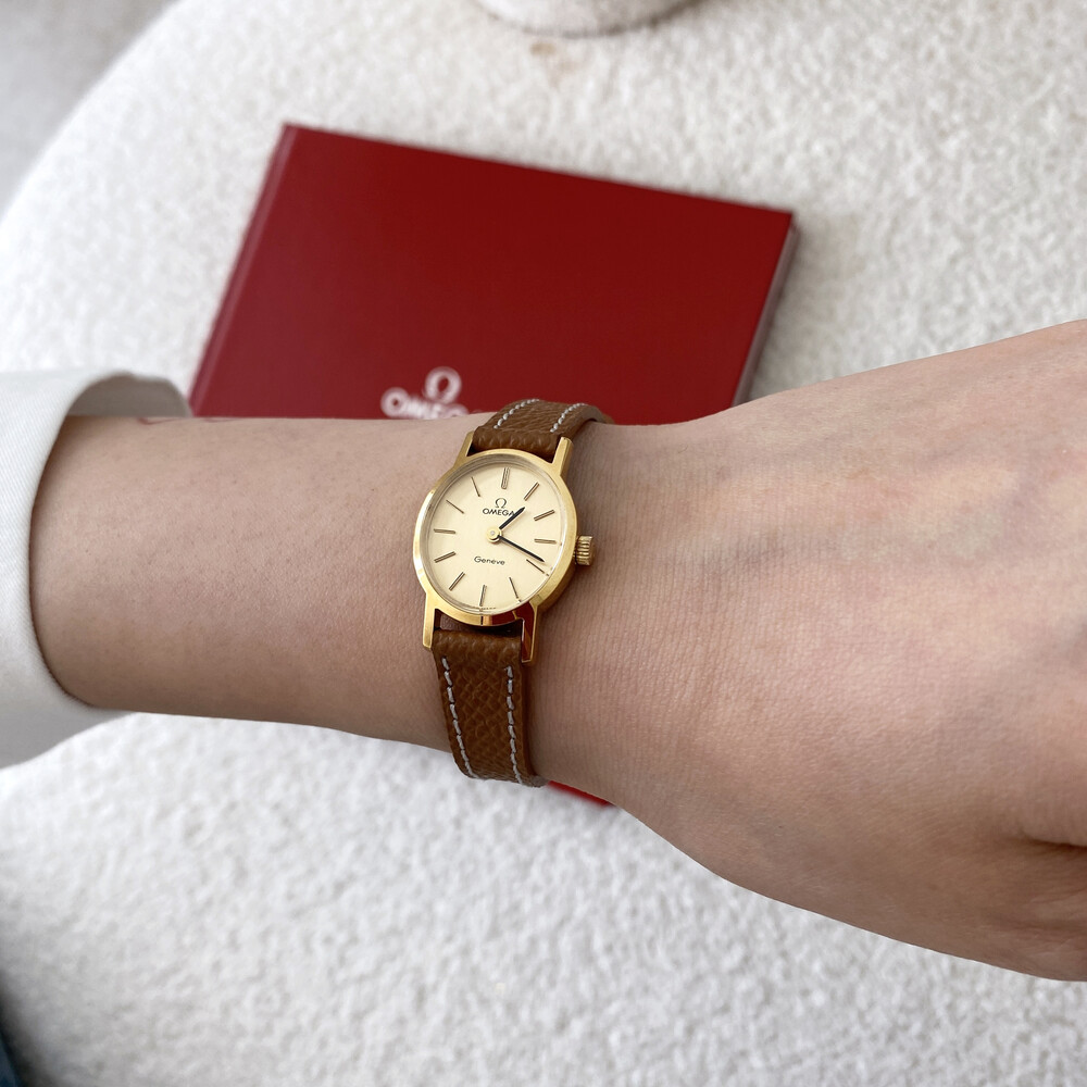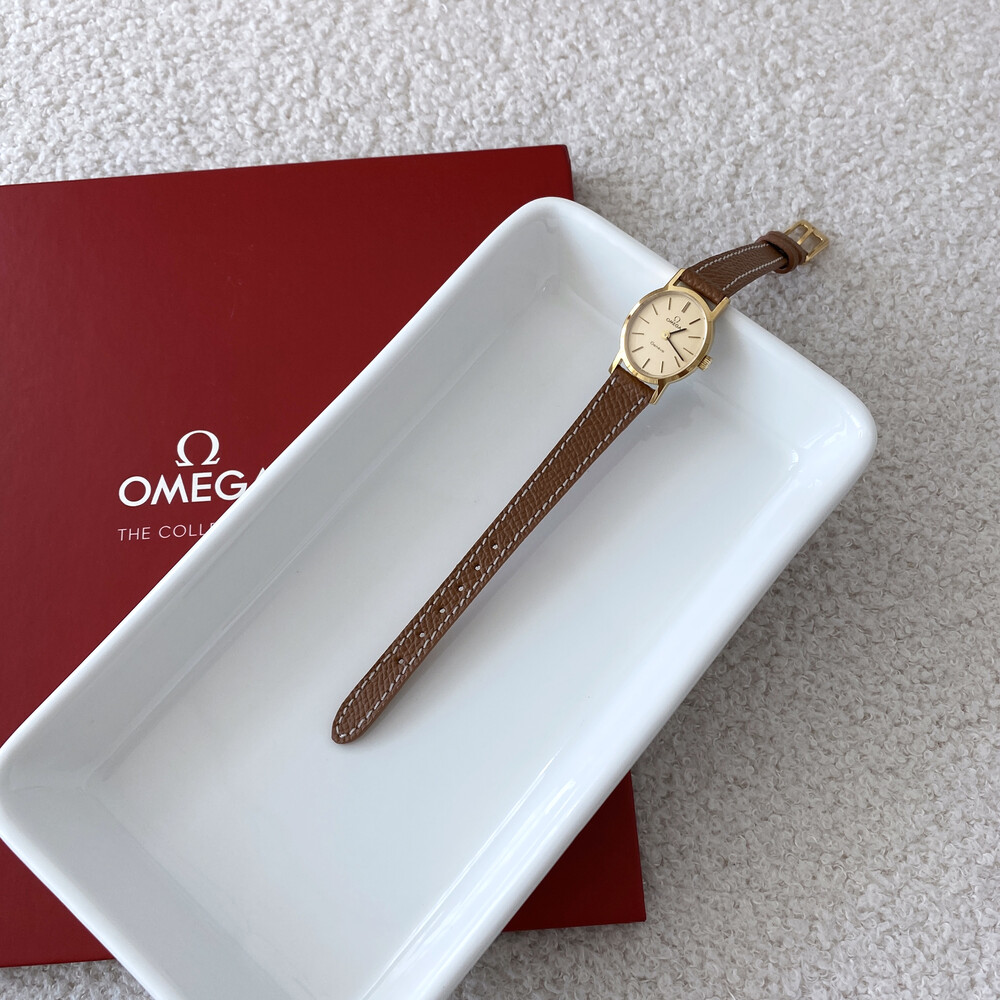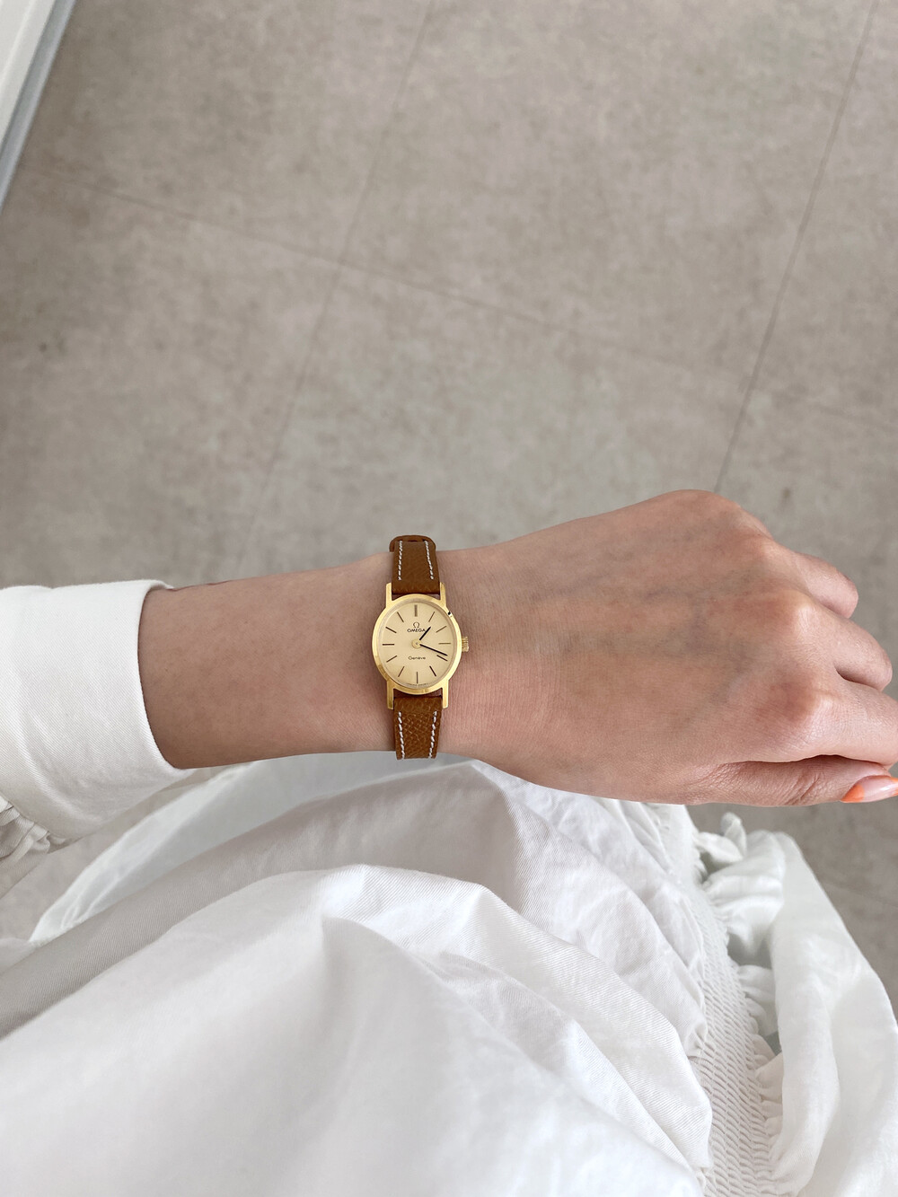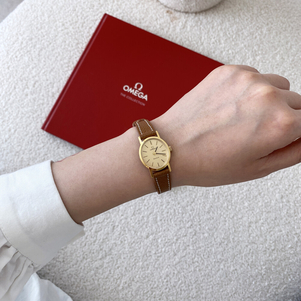 1973년도에 제작된 오메가 제네브 모델로 21mm의 오발 골드 케이스,