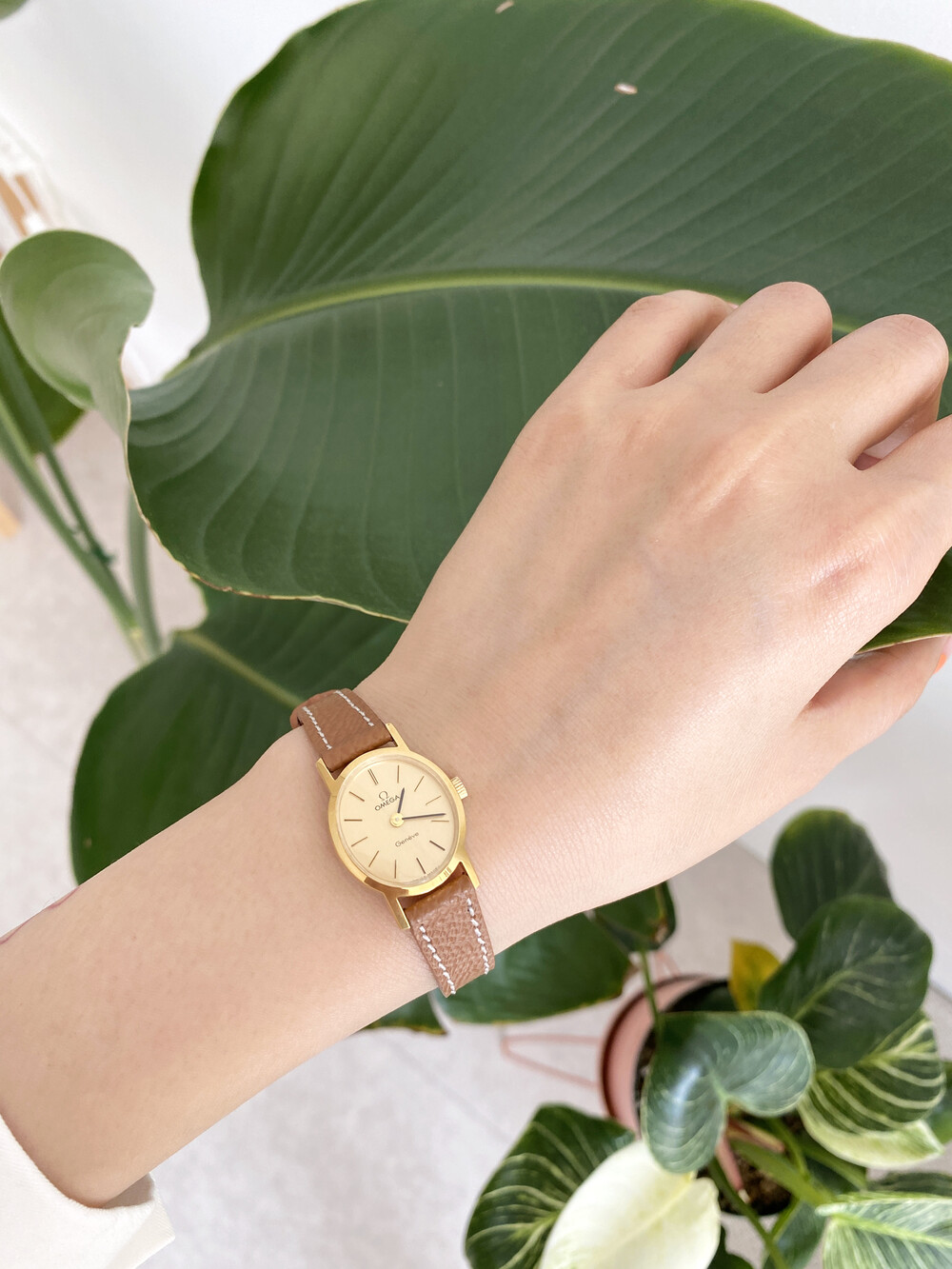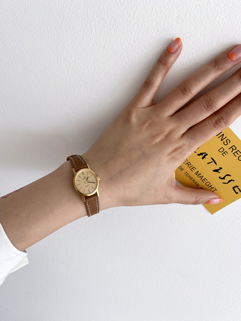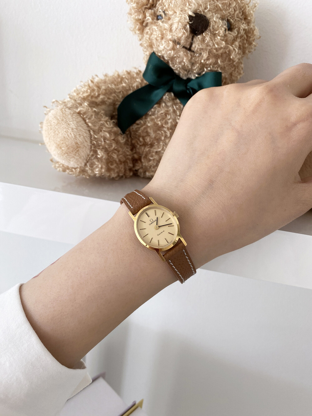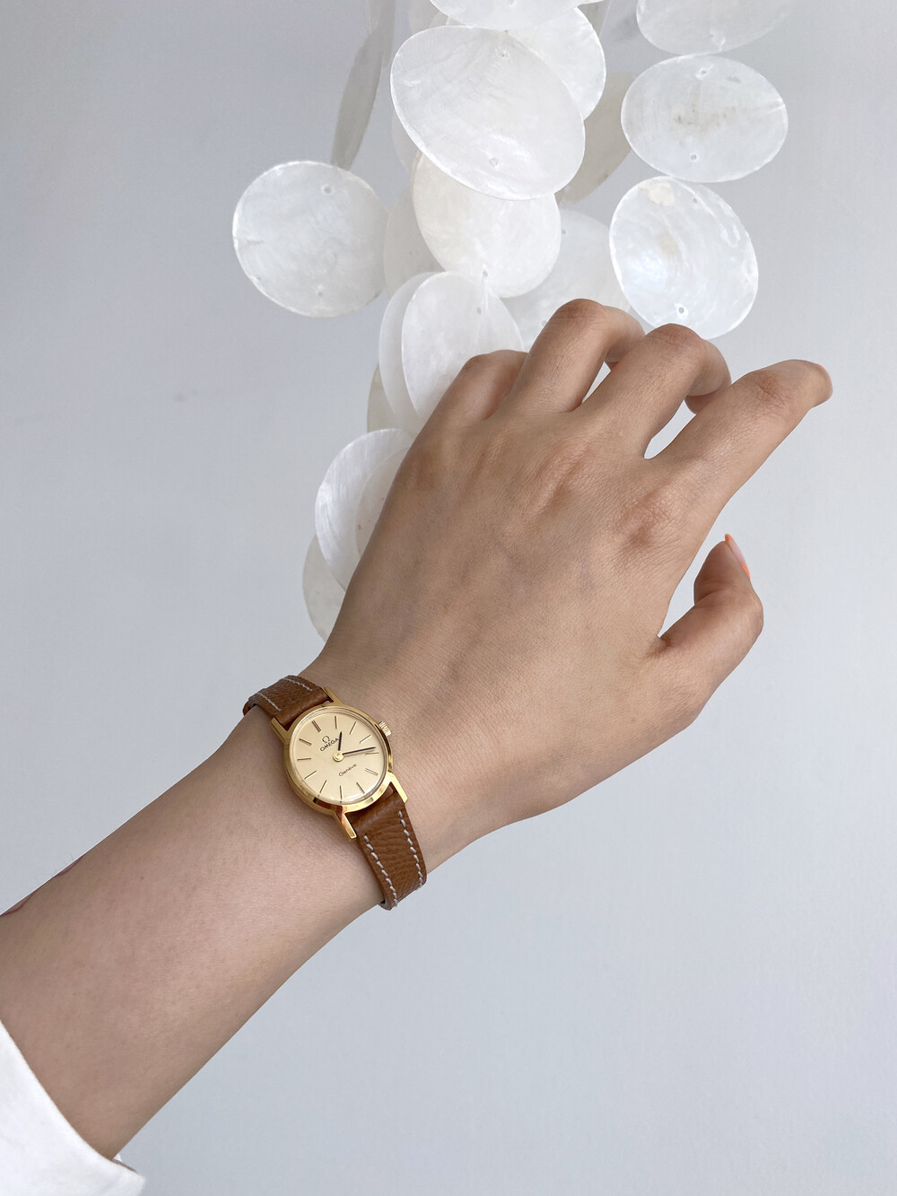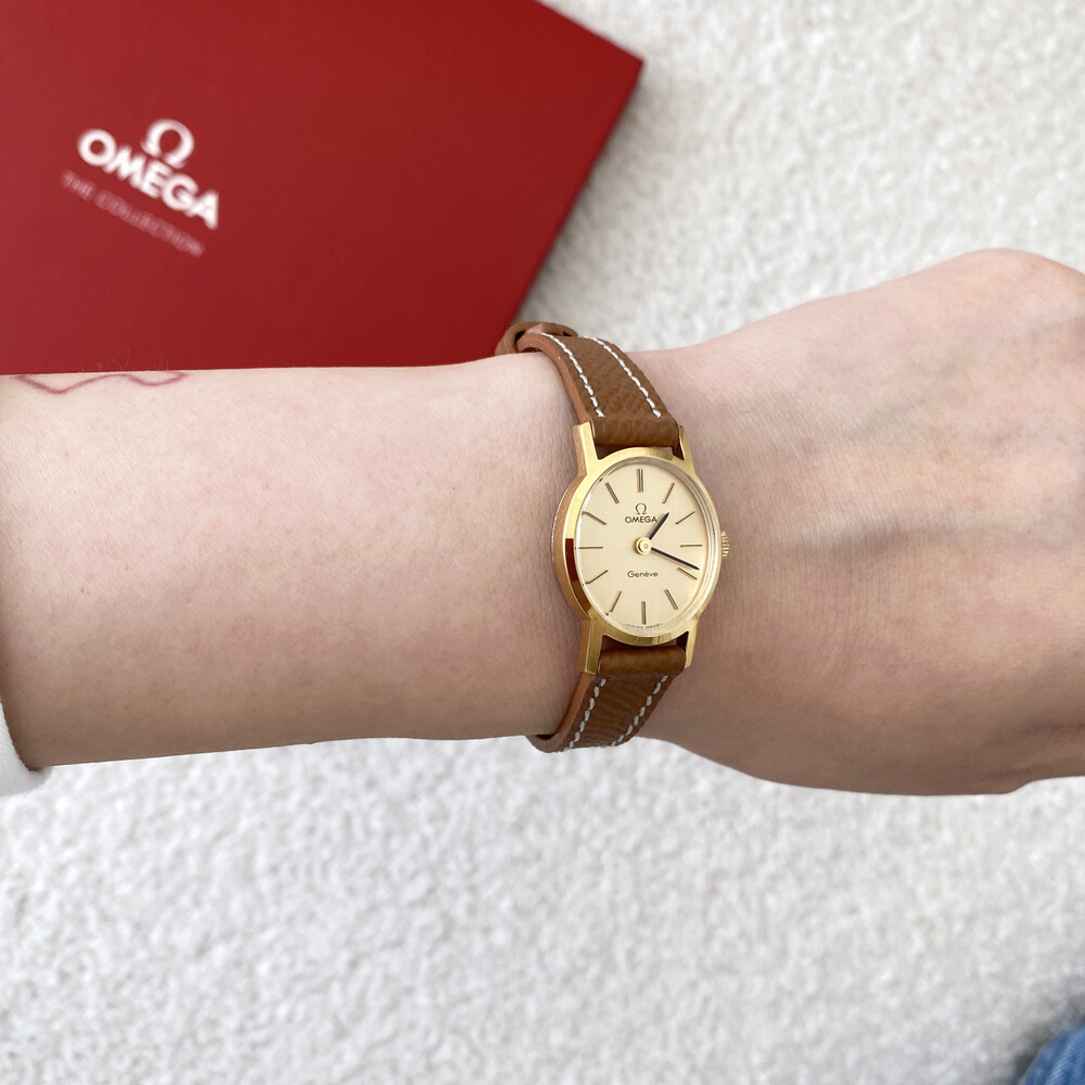 1973년도에 제작된 오메가 제네브 모델로 21mm의 오발 골드 케이스,