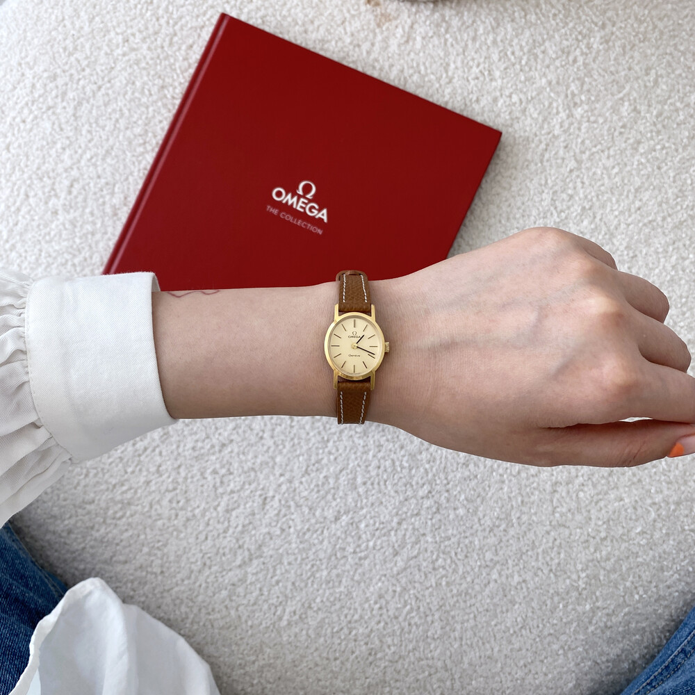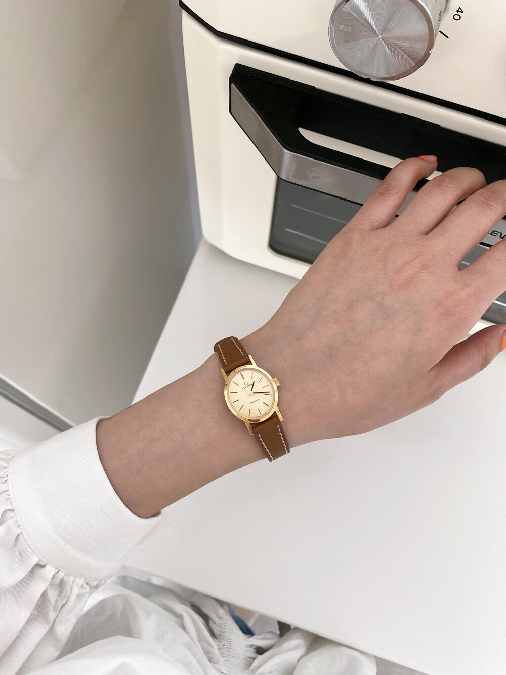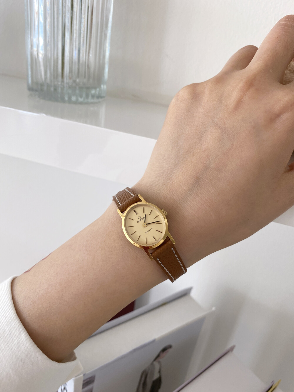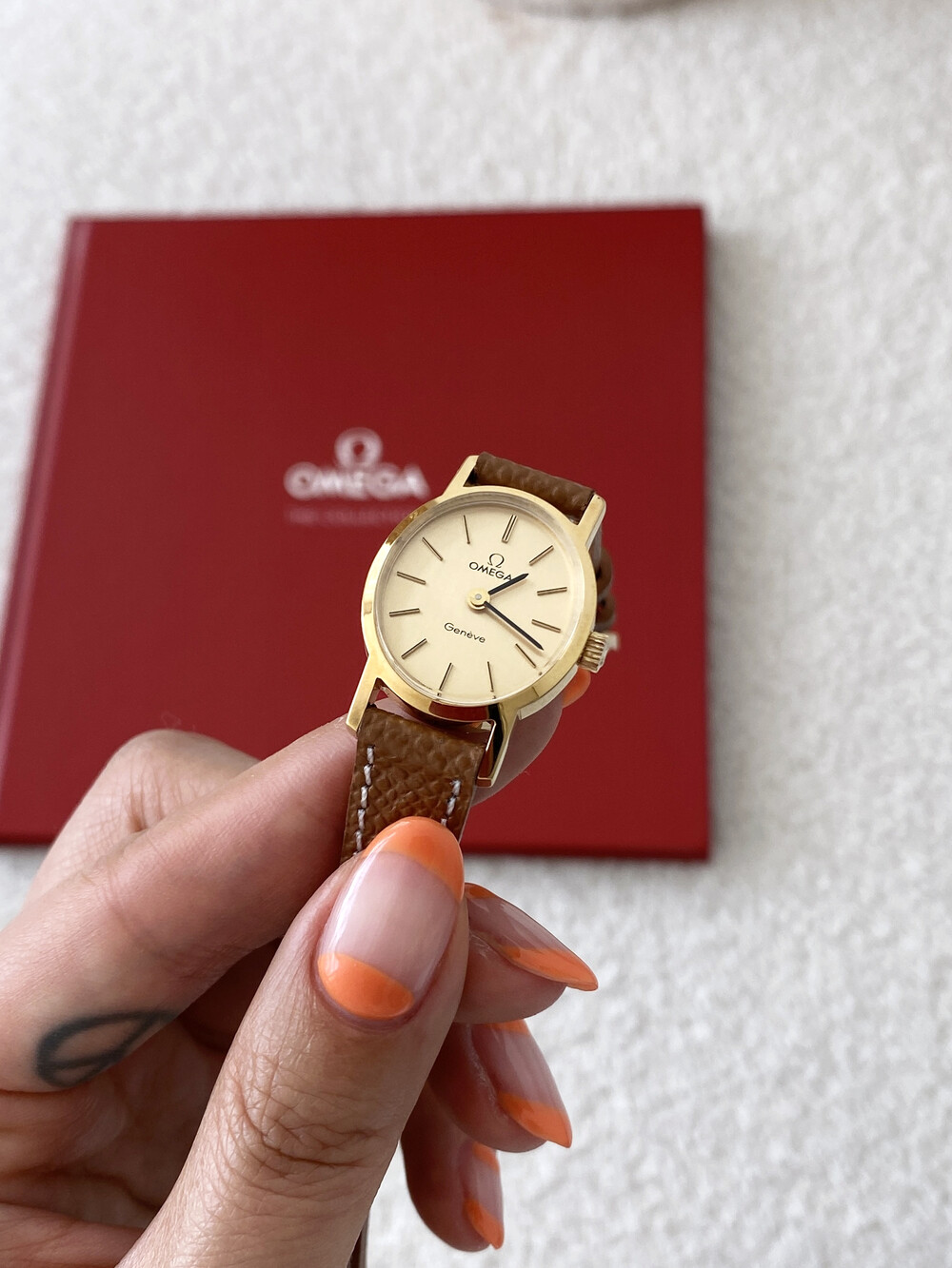 1973년도에 제작된 오메가 제네브 모델로 21mm의 오발 골드 케이스,