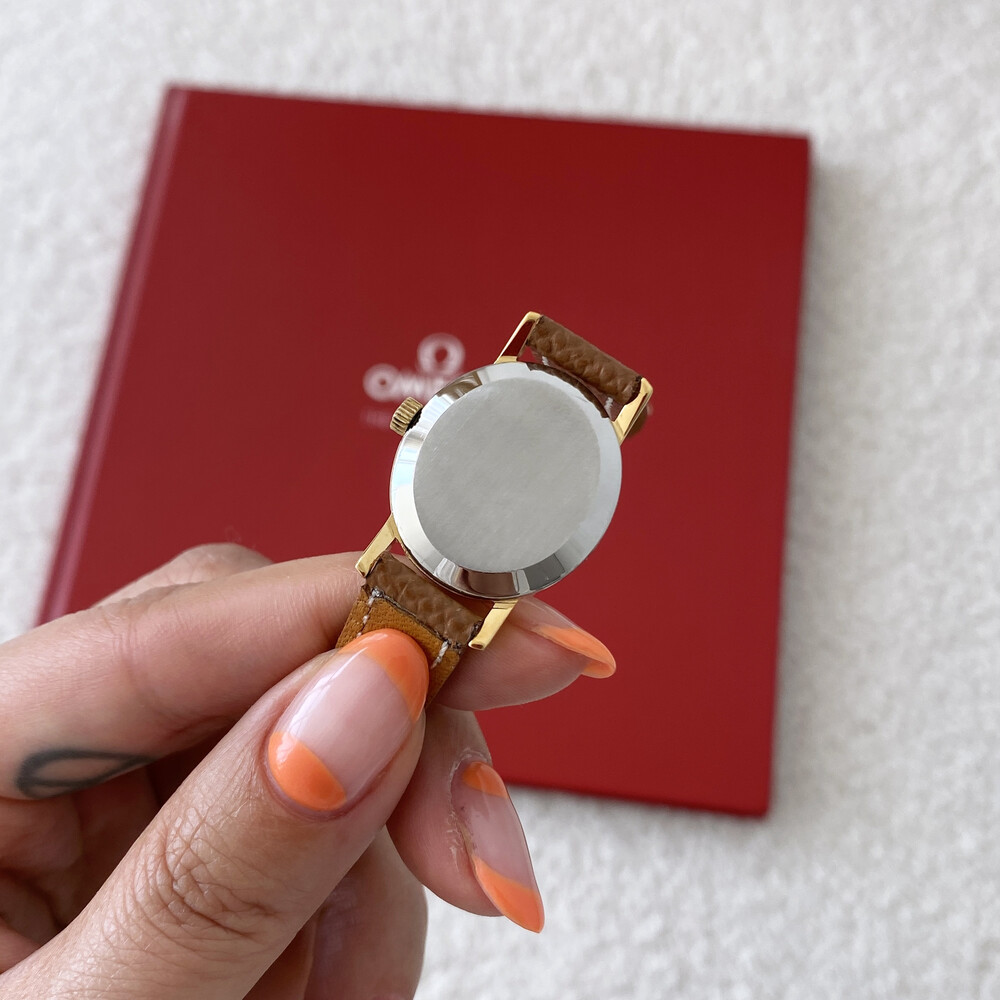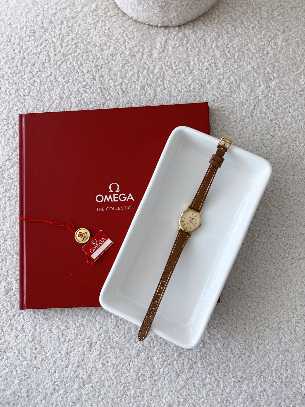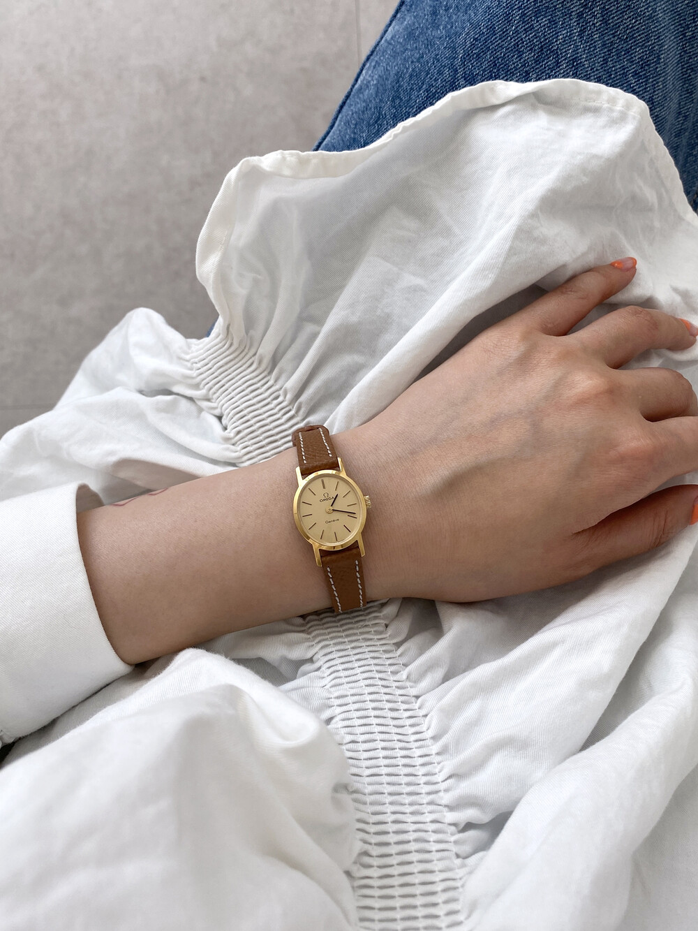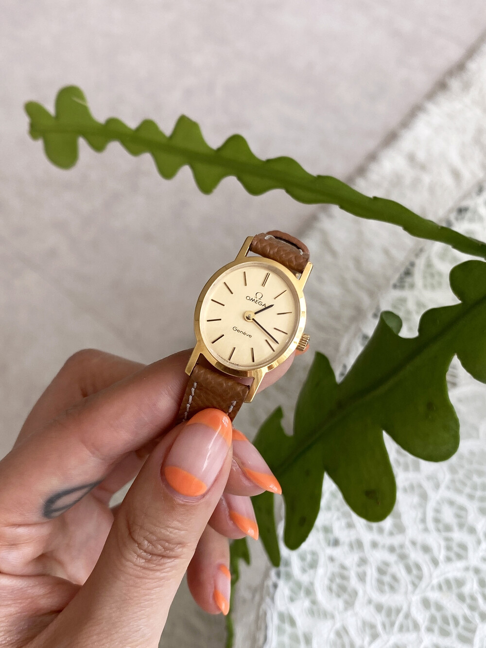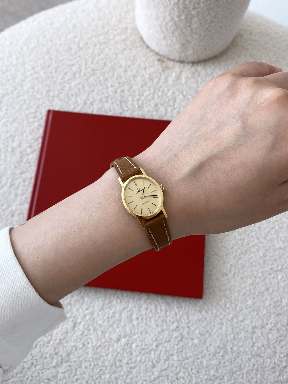 1973년도에 제작된 오메가 제네브 모델로 21mm의 오발 골드 케이스,