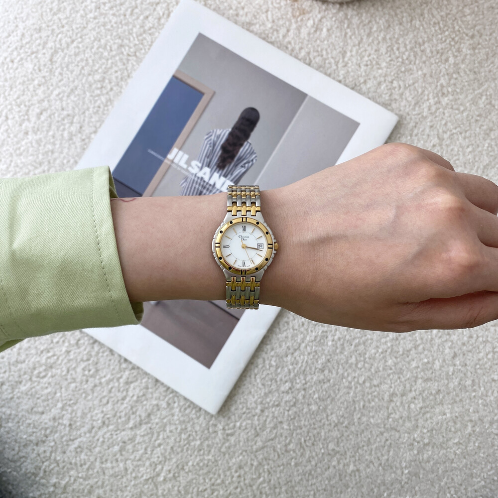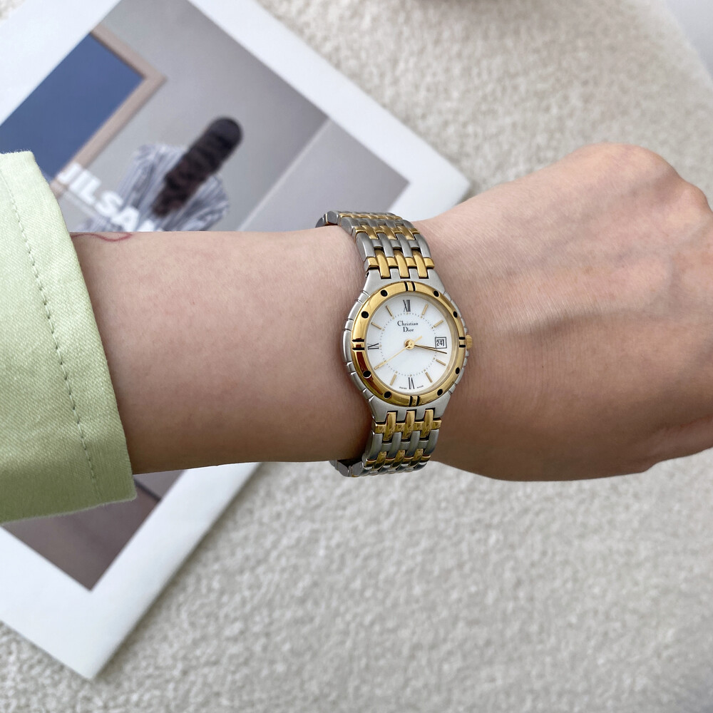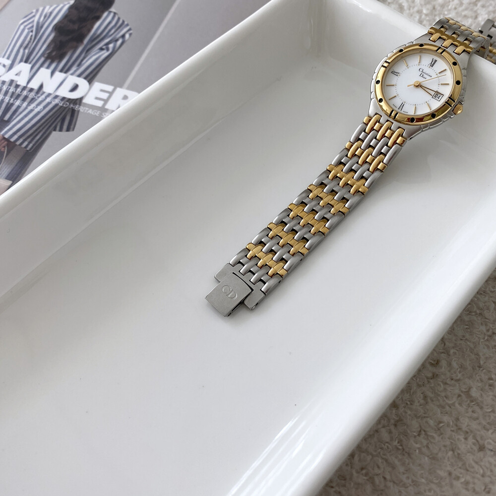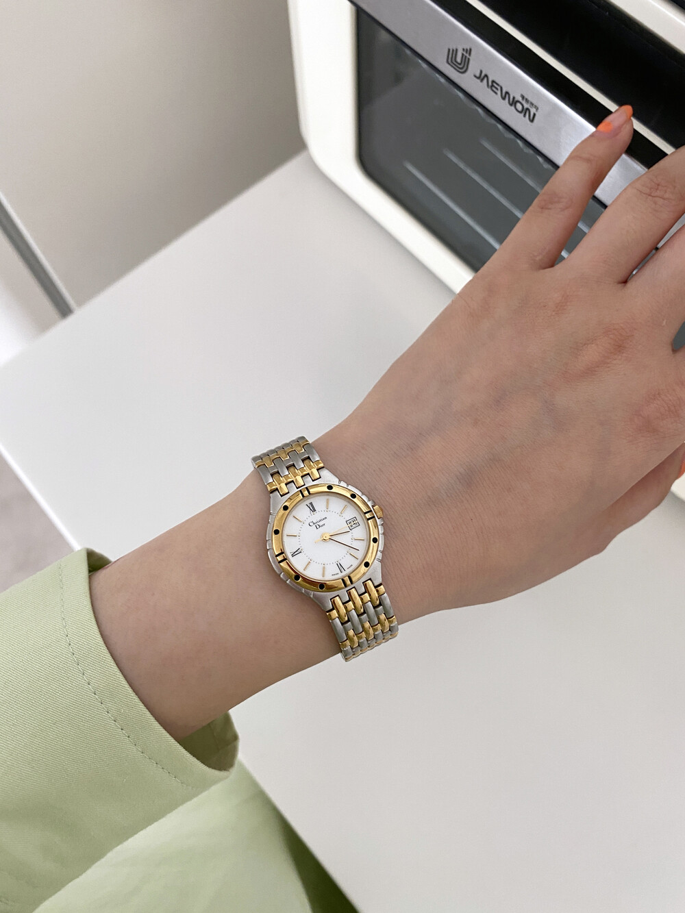 여성용으로 제작된 디올 시계이며 쿼츠 무브먼트로 제작되었습니다.