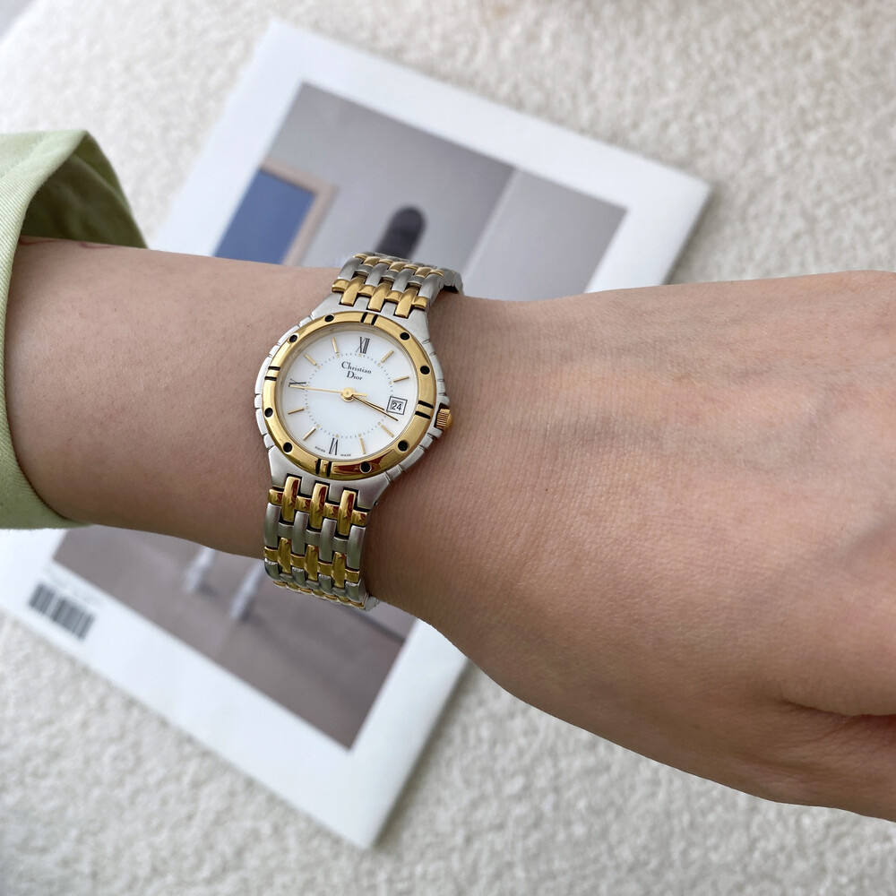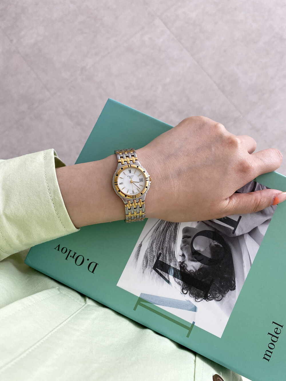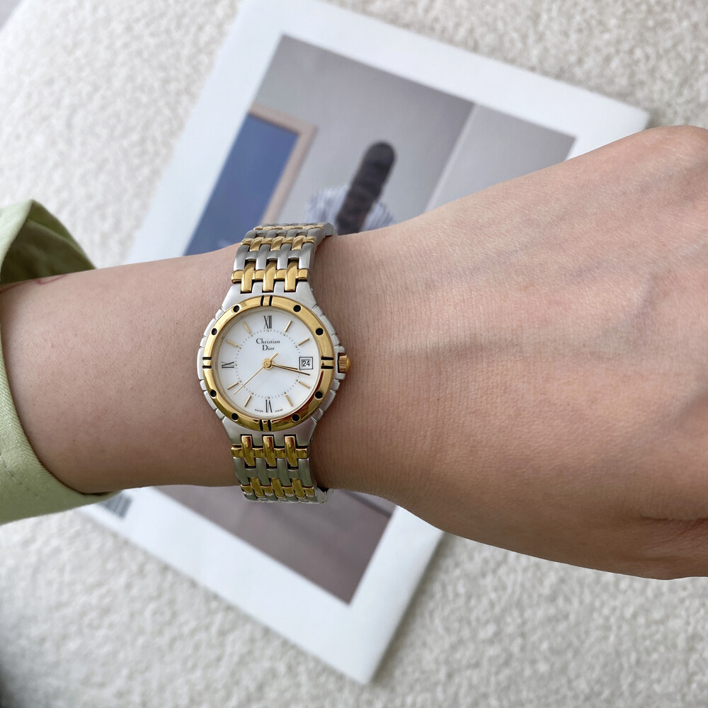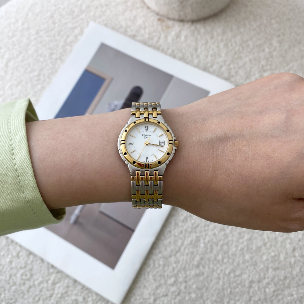여성용으로 제작된 디올 시계이며 쿼츠 무브먼트로 제작되었습니다.