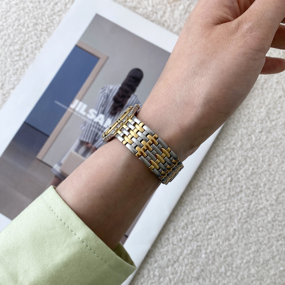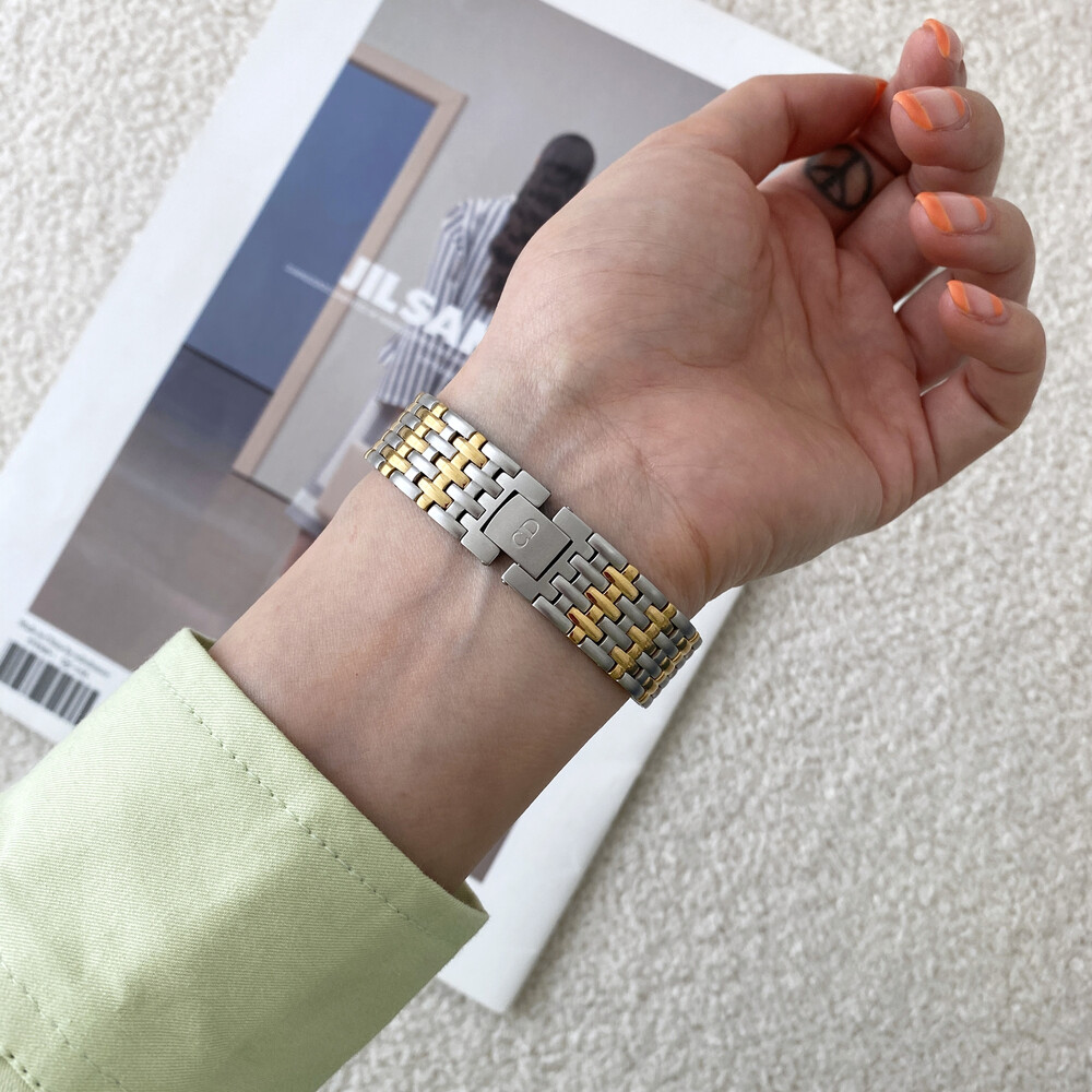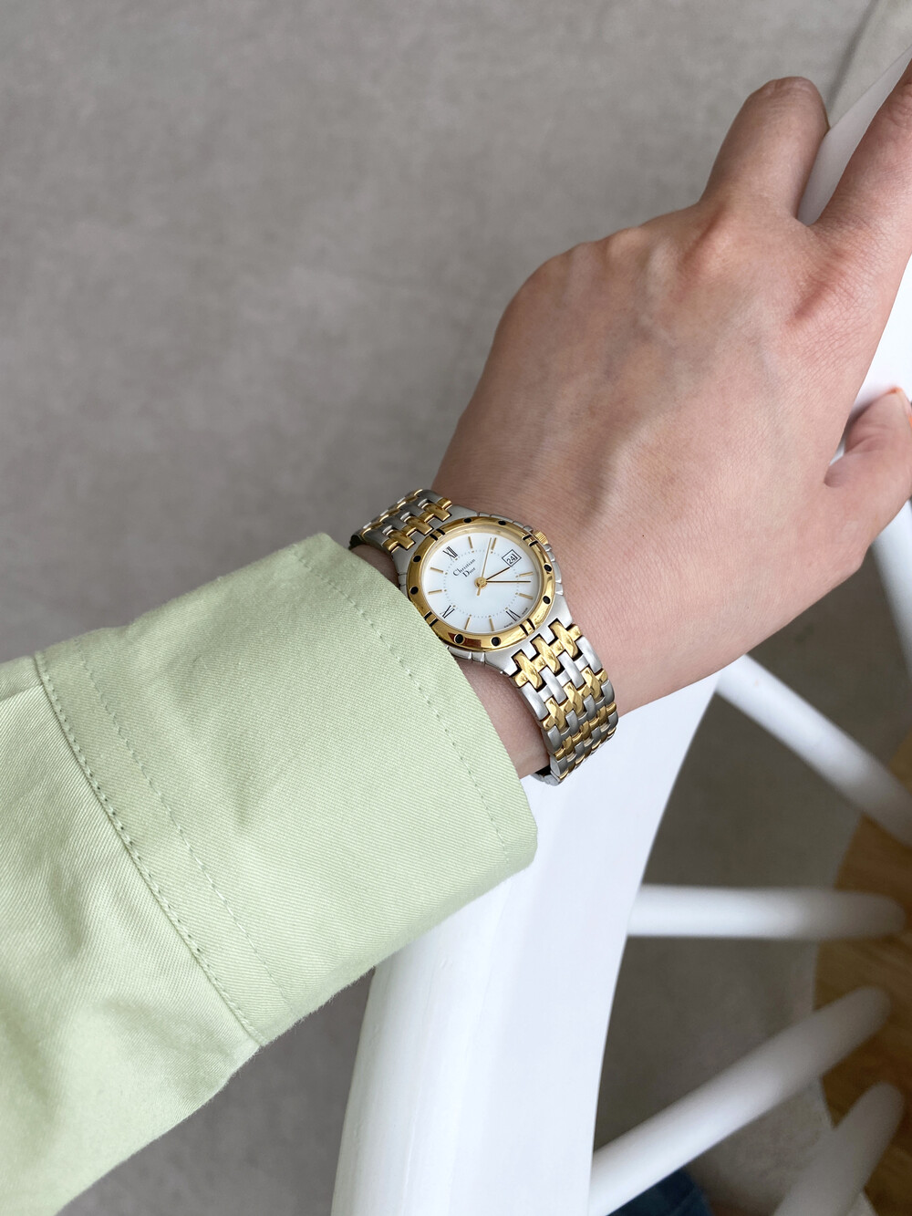 골드 & 실버 컬러의 무드와 화이트 다이얼 위를 장식하는