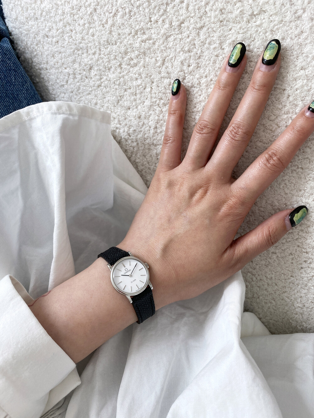 블랙 & 화이트의 톤 앤 무드로 데일리 시계로 제격인 모델입니다.