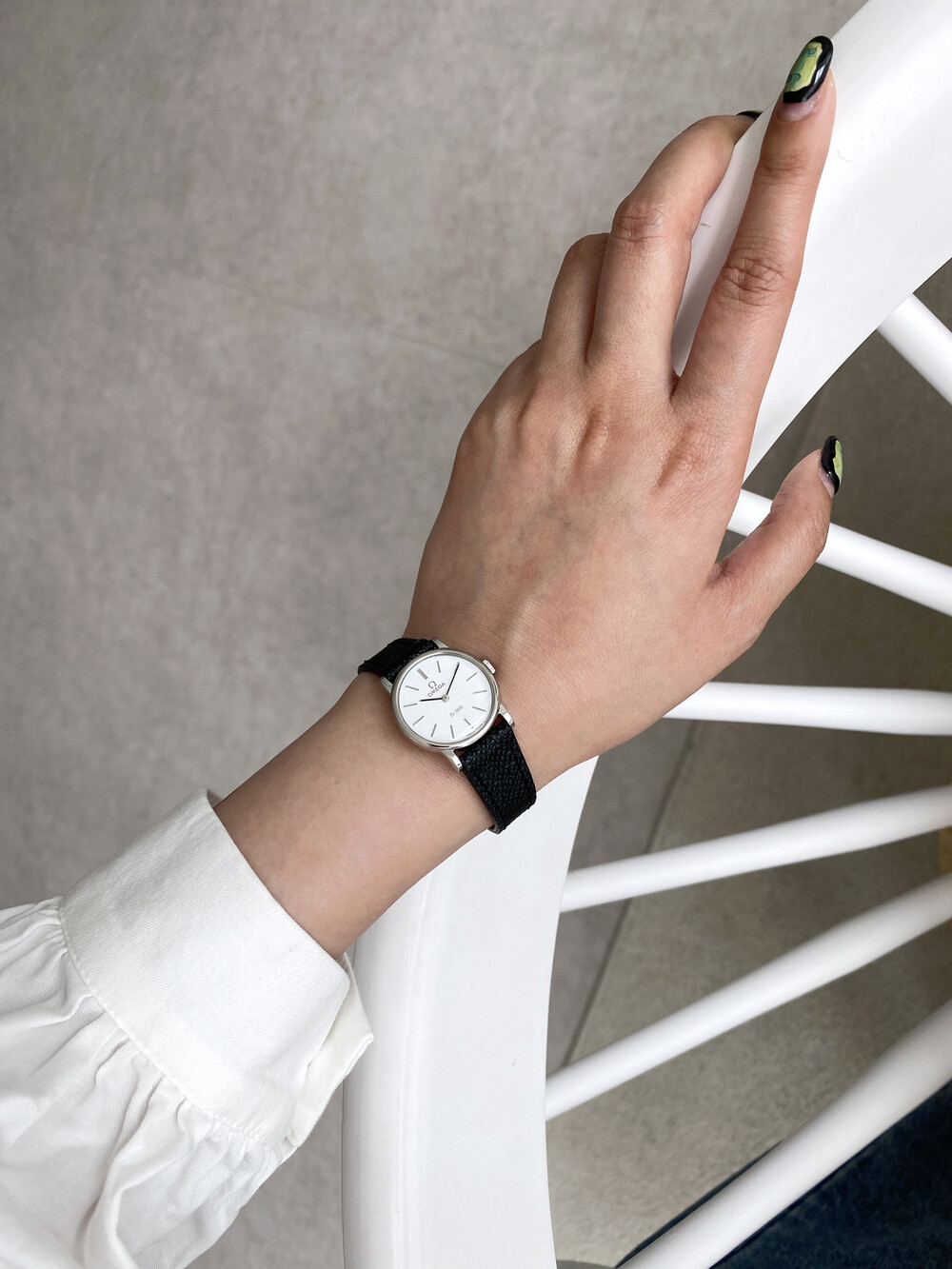 돔 형태의 아크릴 글래스가 오메가만의 클래식한 매력을 선사하는 시계입니다.