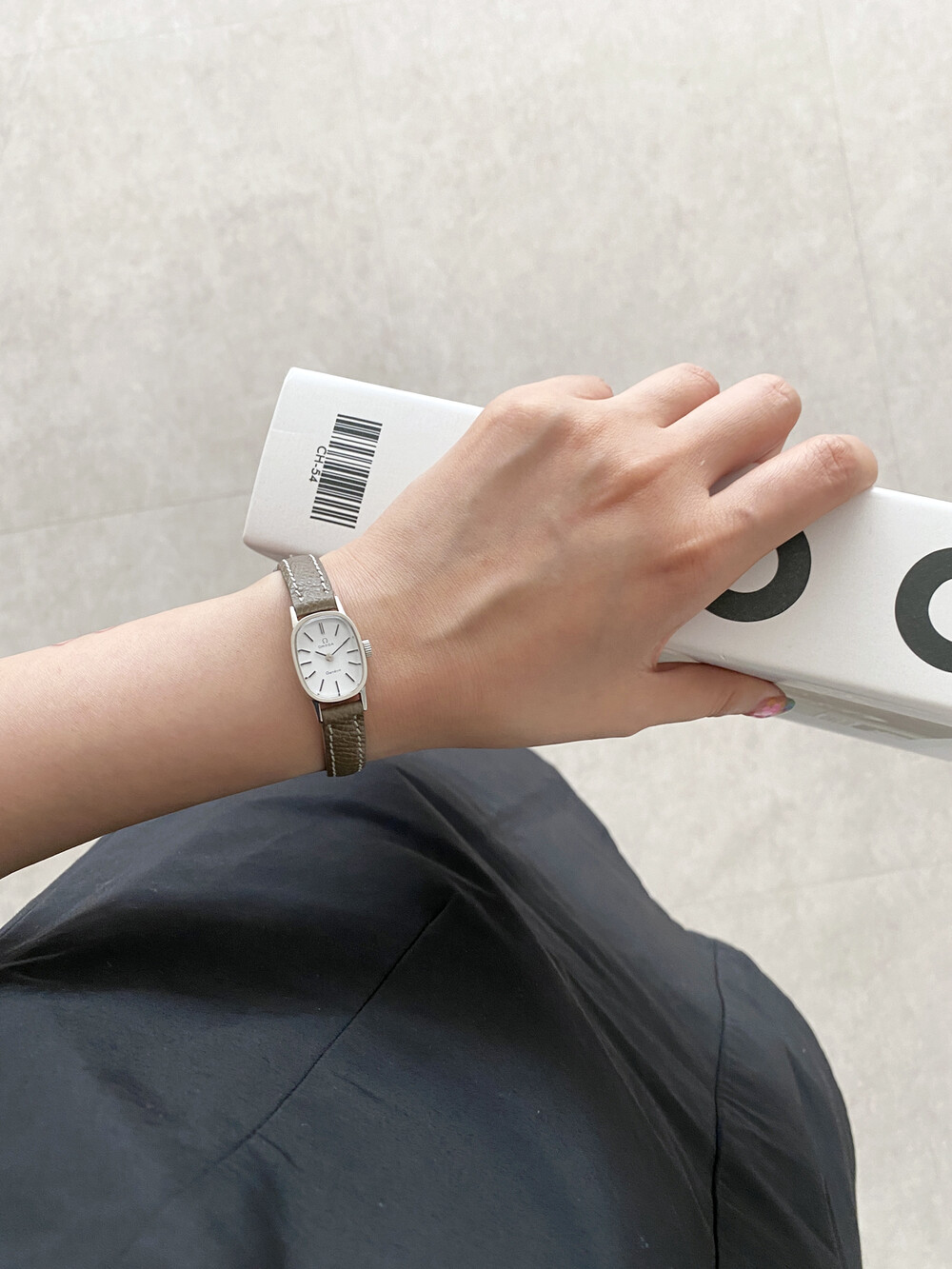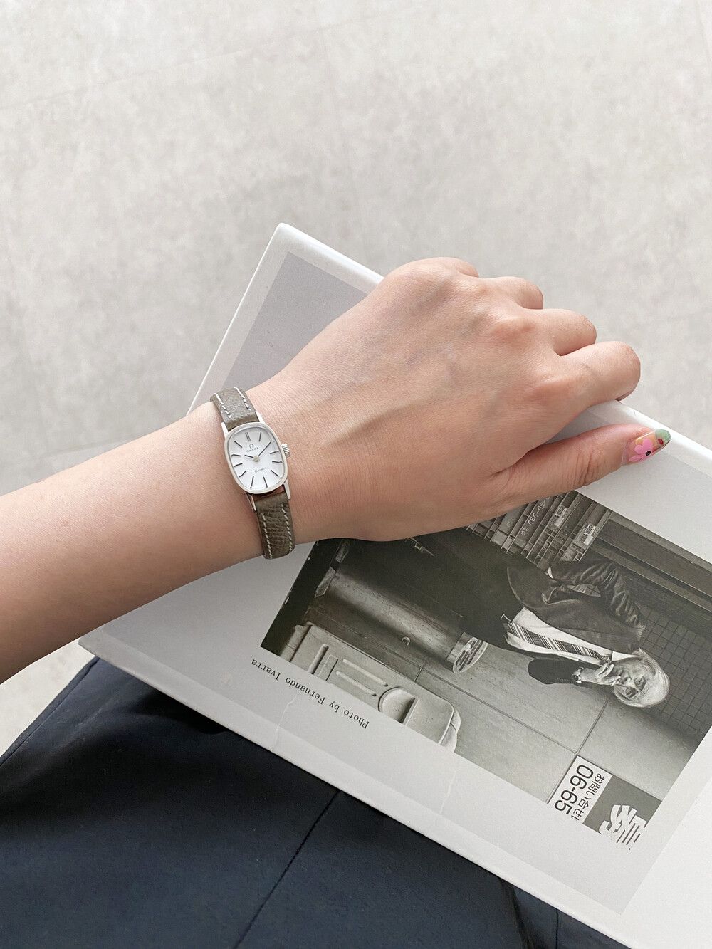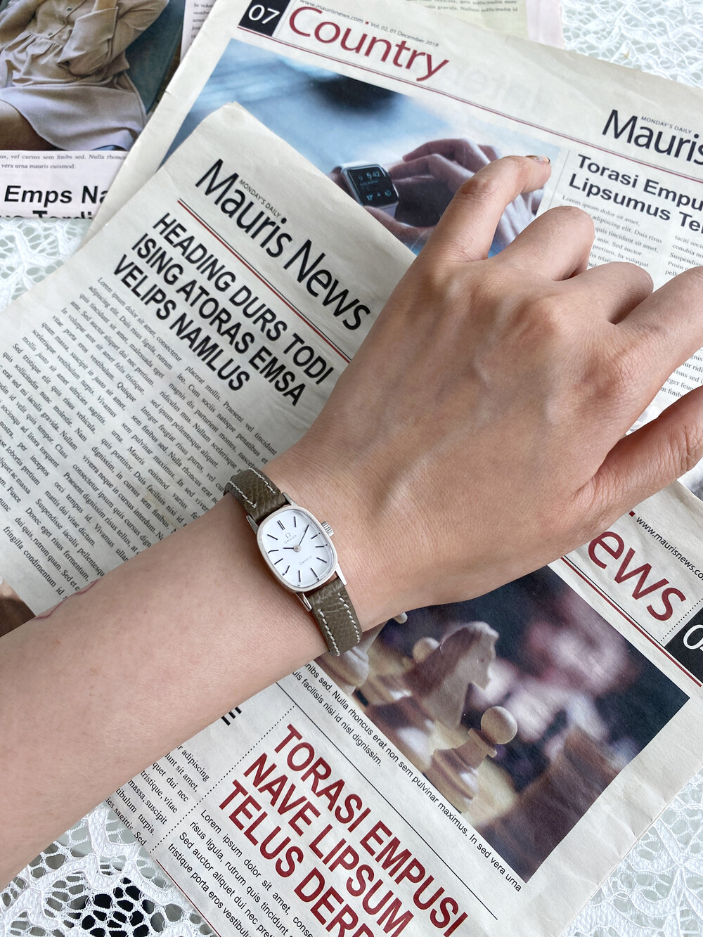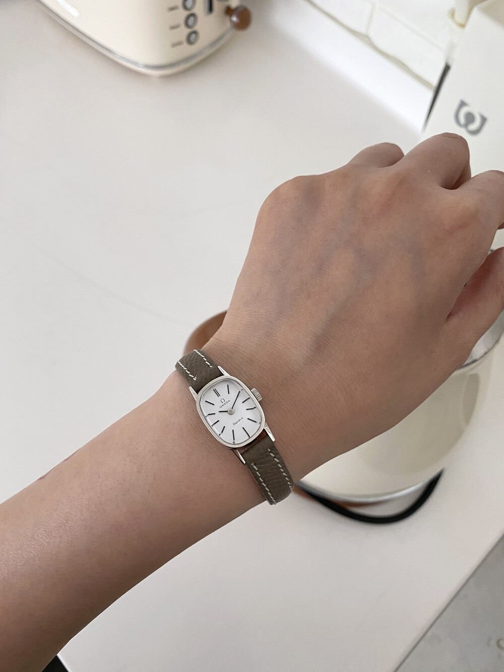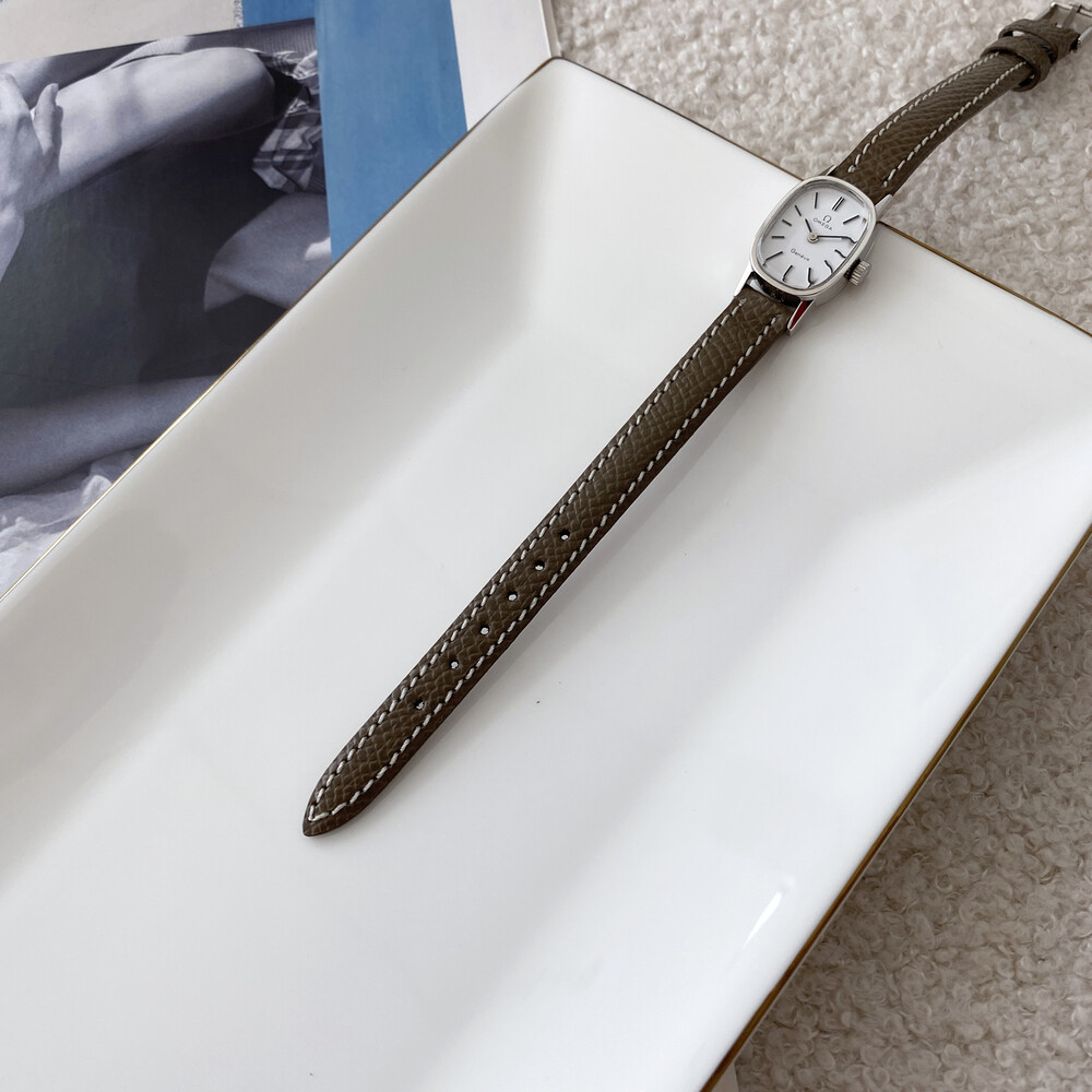 1973년도에 제작된 오메가 제네브 모델로 부드러운 곡선의 오발 실버 케이스,