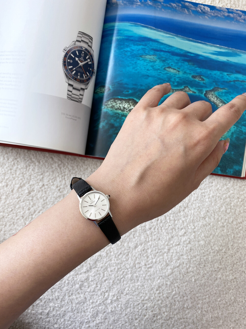 1979년도에 제작된 오메가 드빌 모델로 깔끔한 실버톤 다이얼,