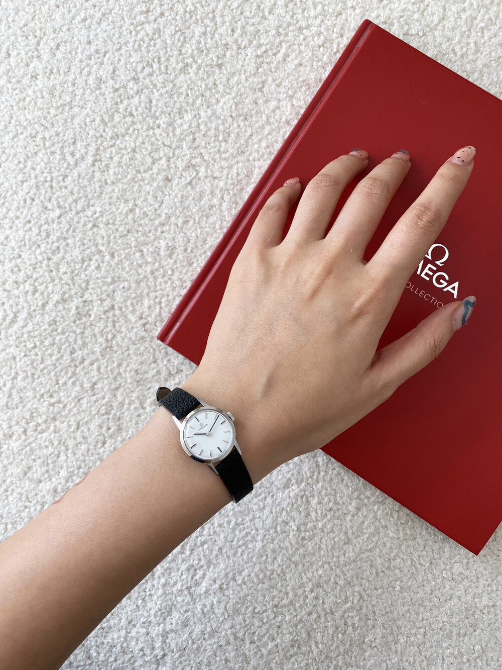 1964년도에 제작된 오메가 모델로 깔끔한 화이트 다이얼 위를 장식하는
