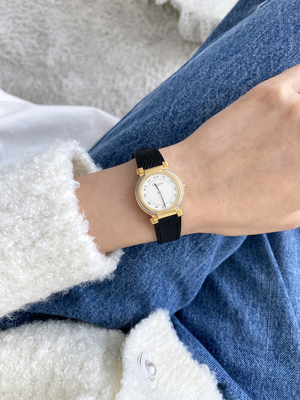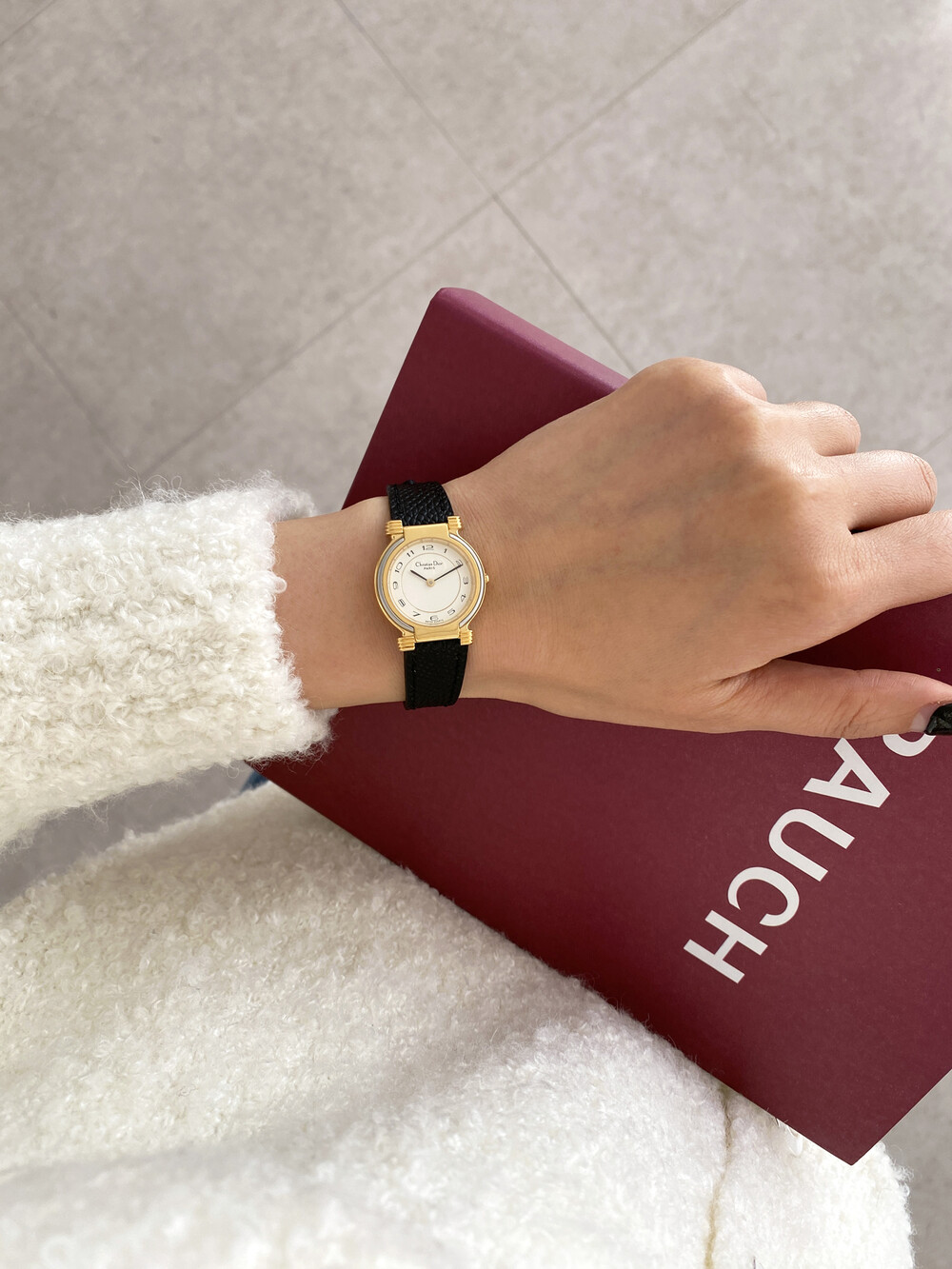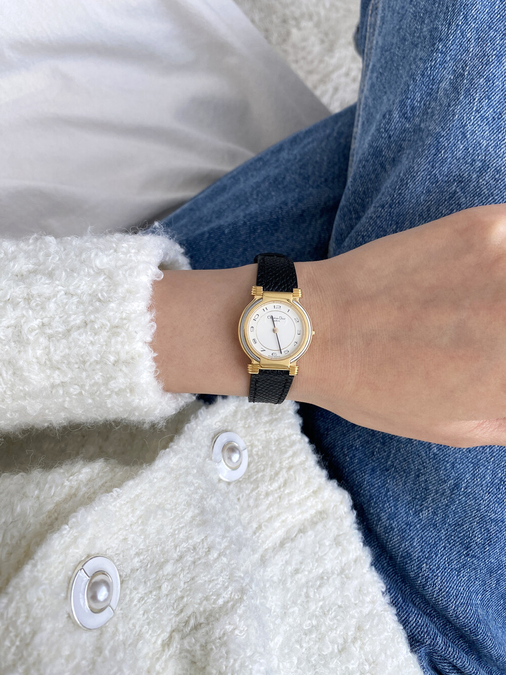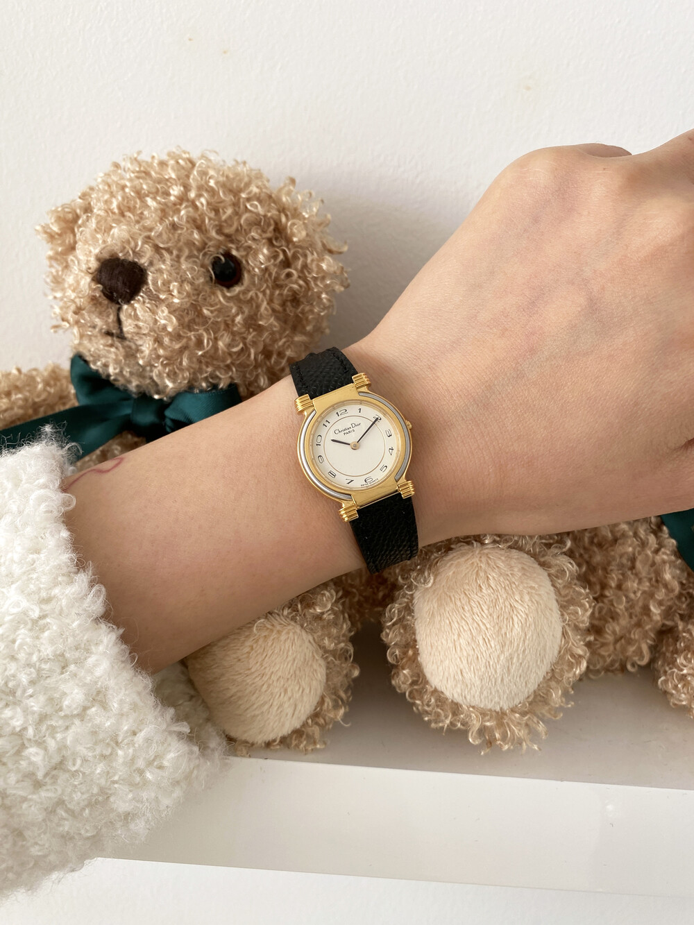 부드러운 곡선의 라운드 바디와 화이트 다이얼 위를 장식하는 디올 로고가 매력적인 모델입니다.