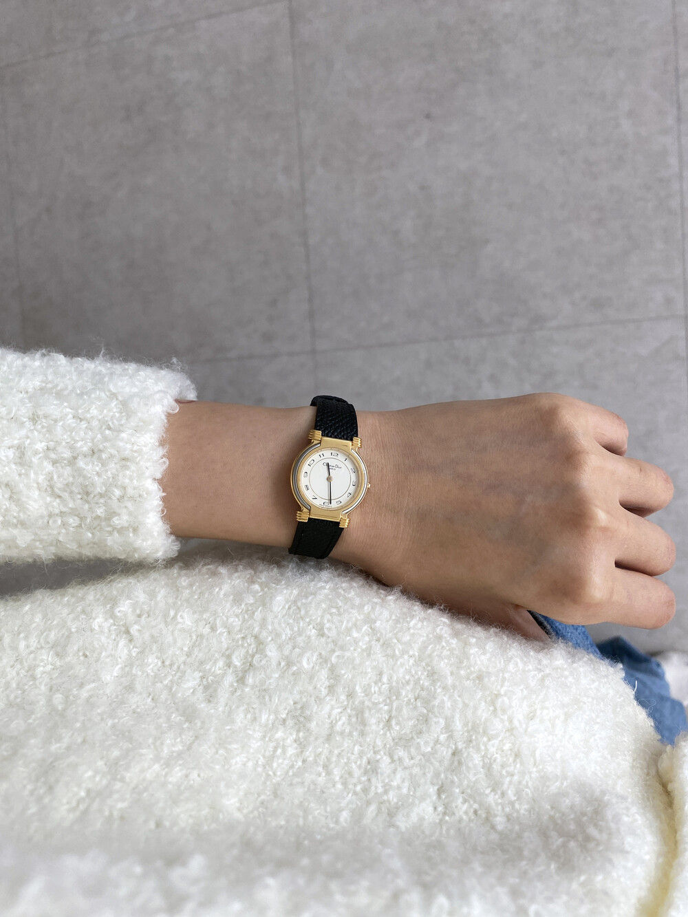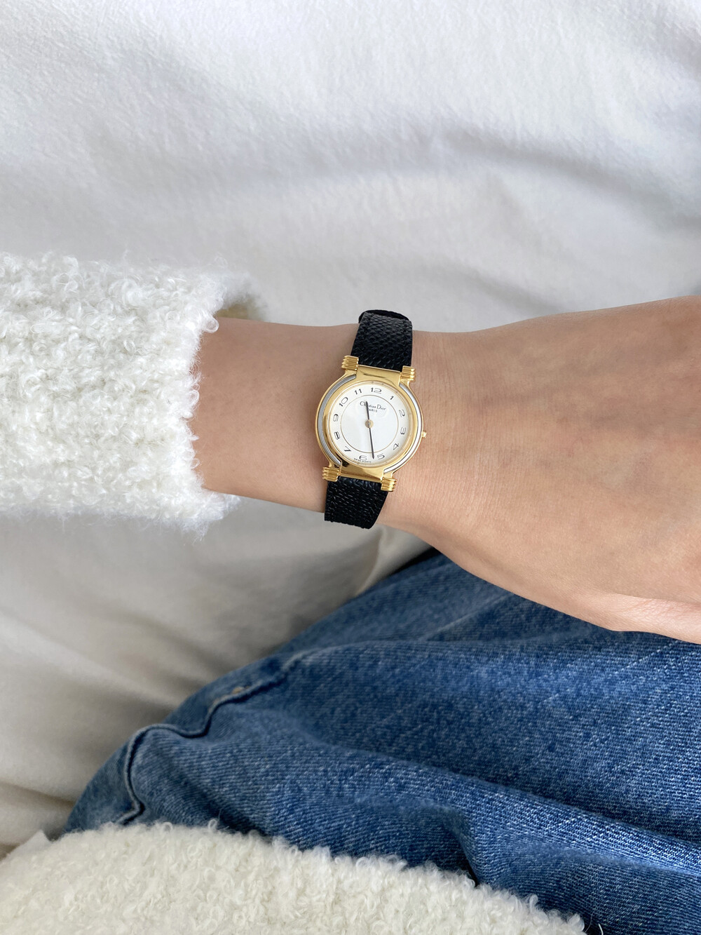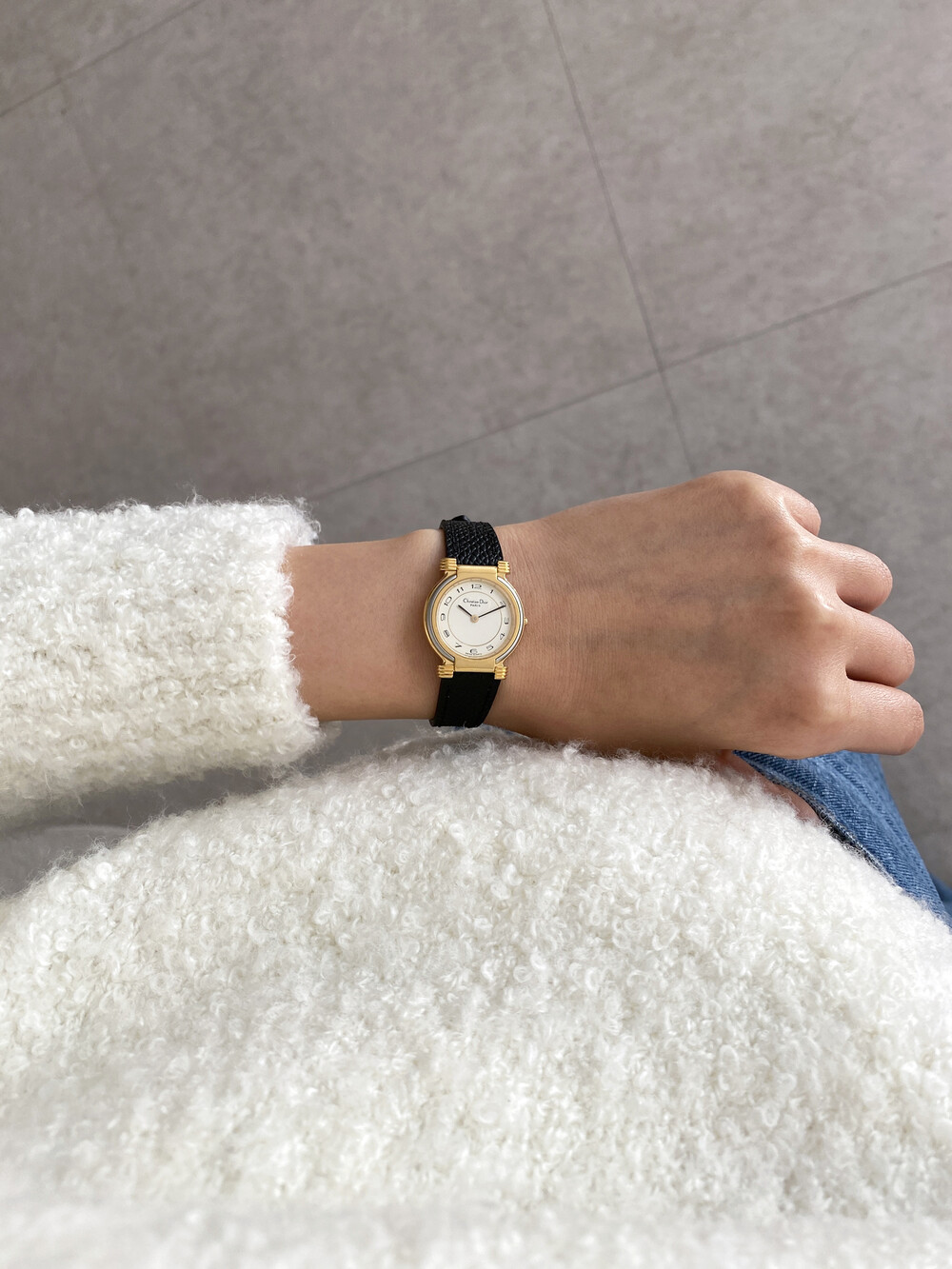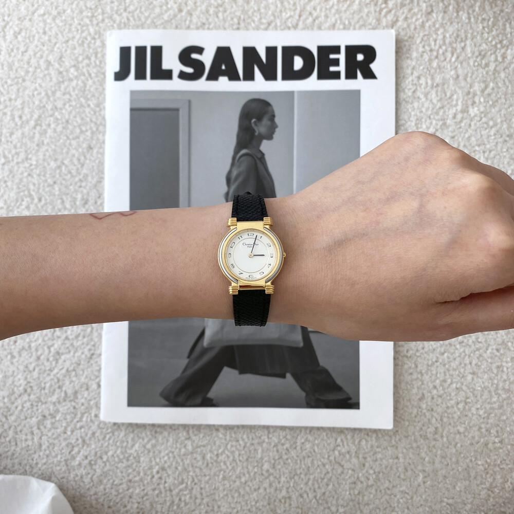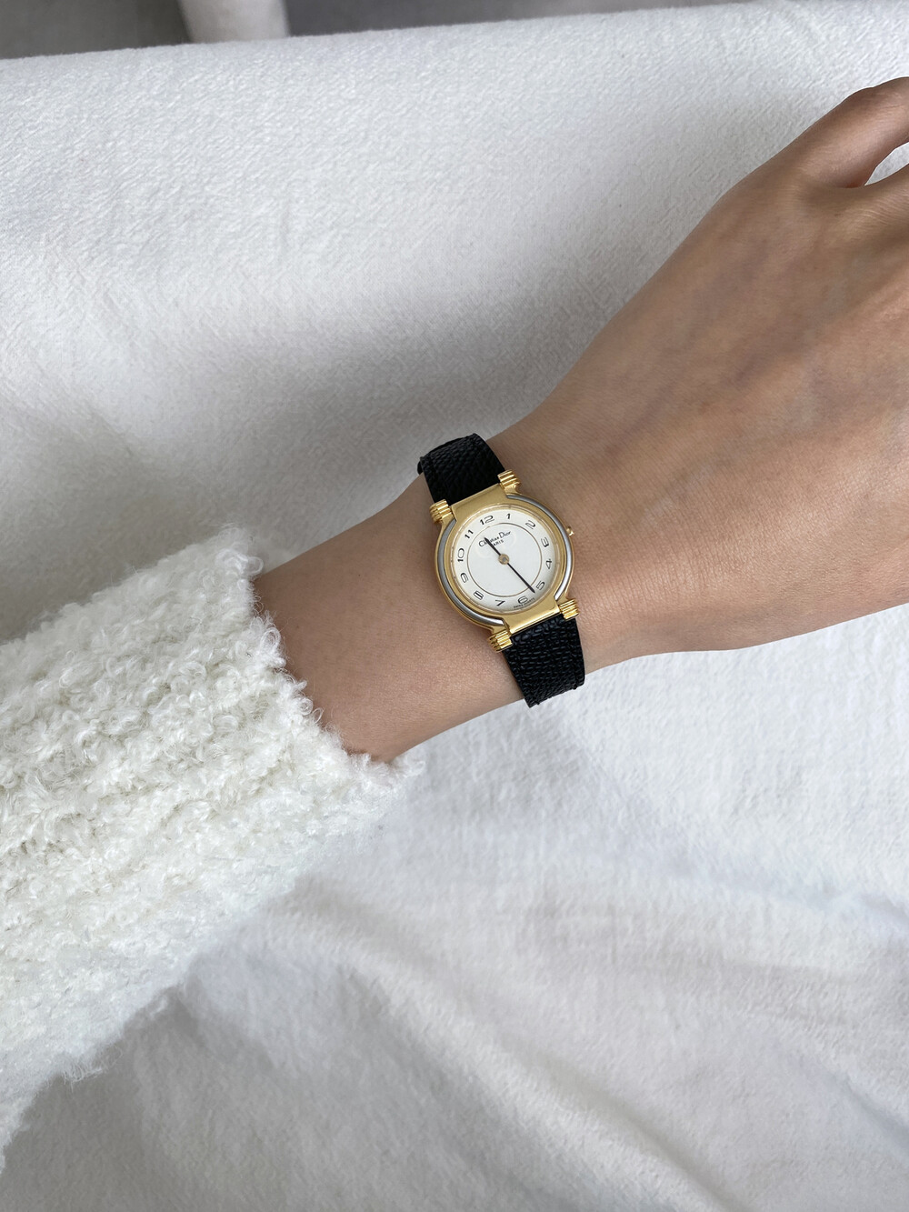 부드러운 곡선의 라운드 바디와 화이트 다이얼 위를 장식하는 디올 로고가 매력적인 모델입니다.