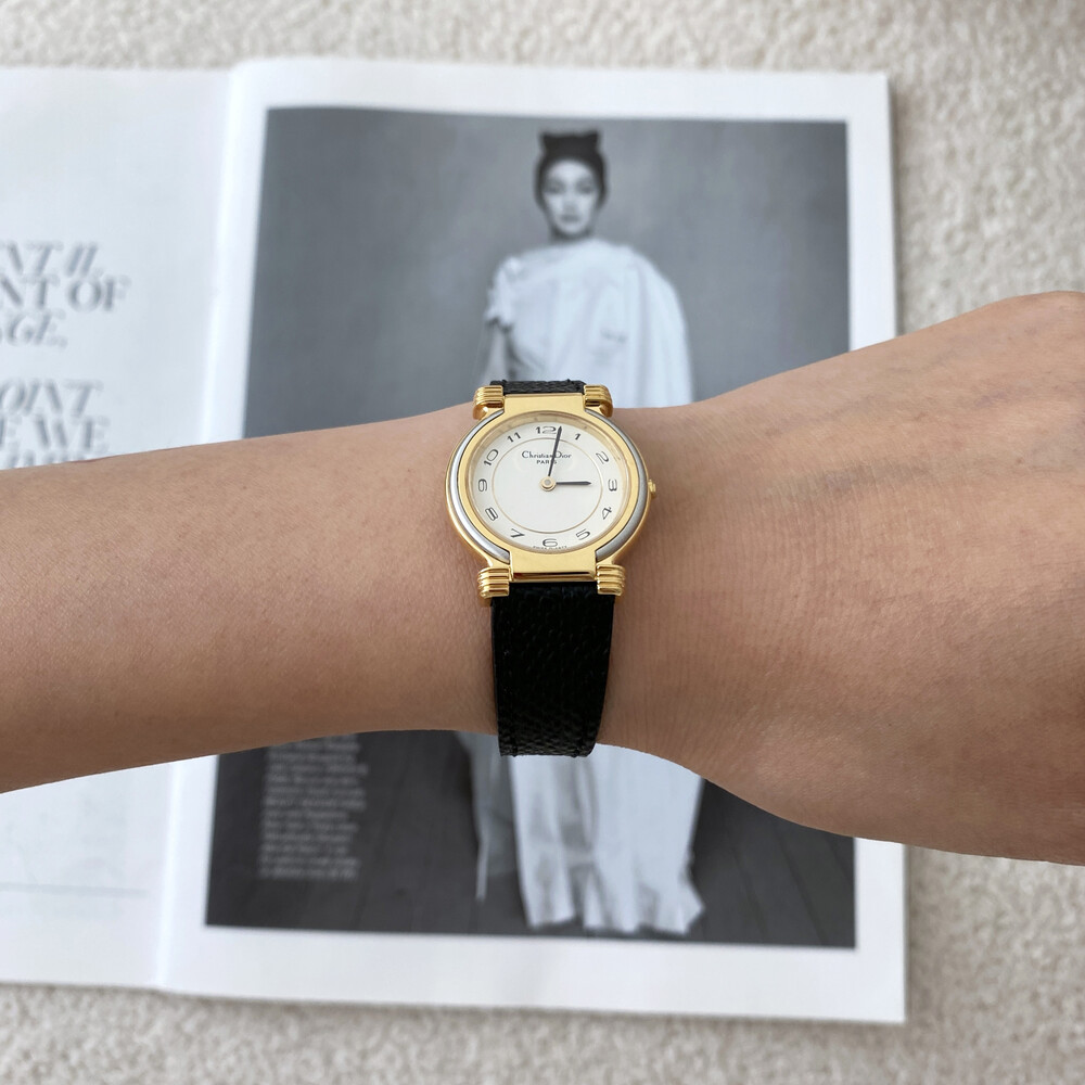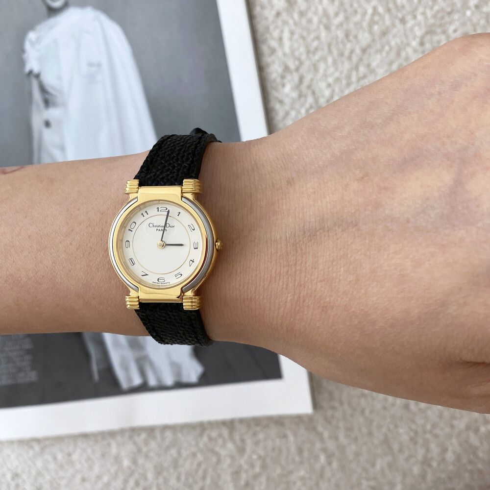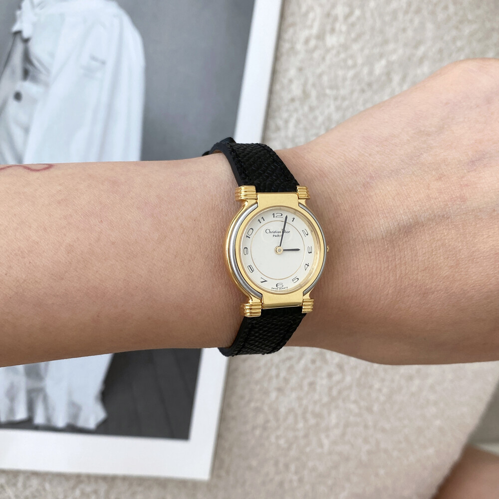 여성용으로 제작된 디올 시계이며 스위스 쿼츠 무브먼트로 제작되었습니다.