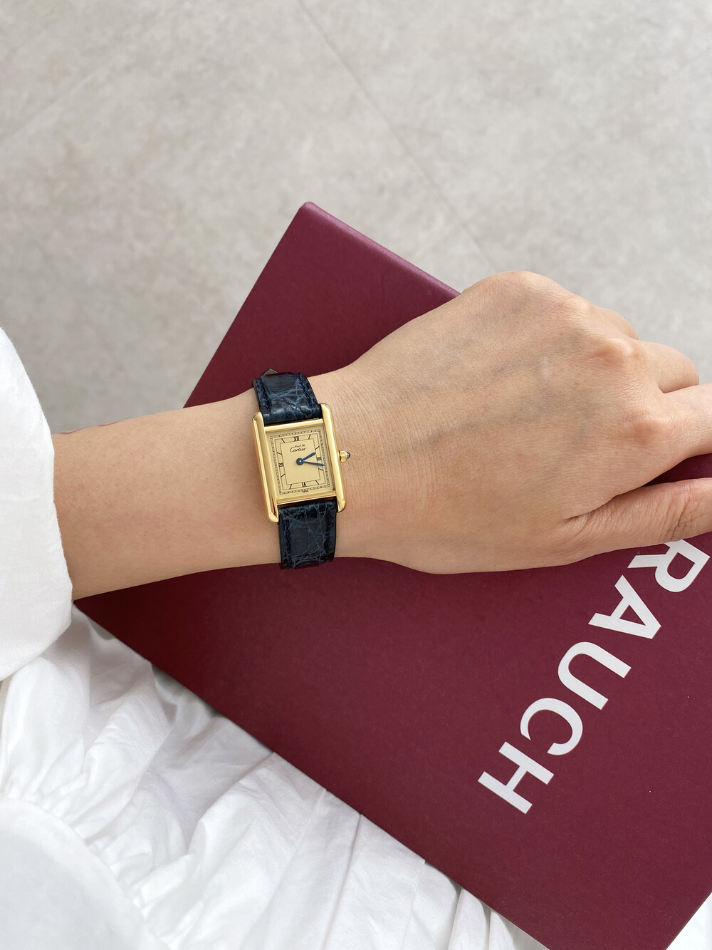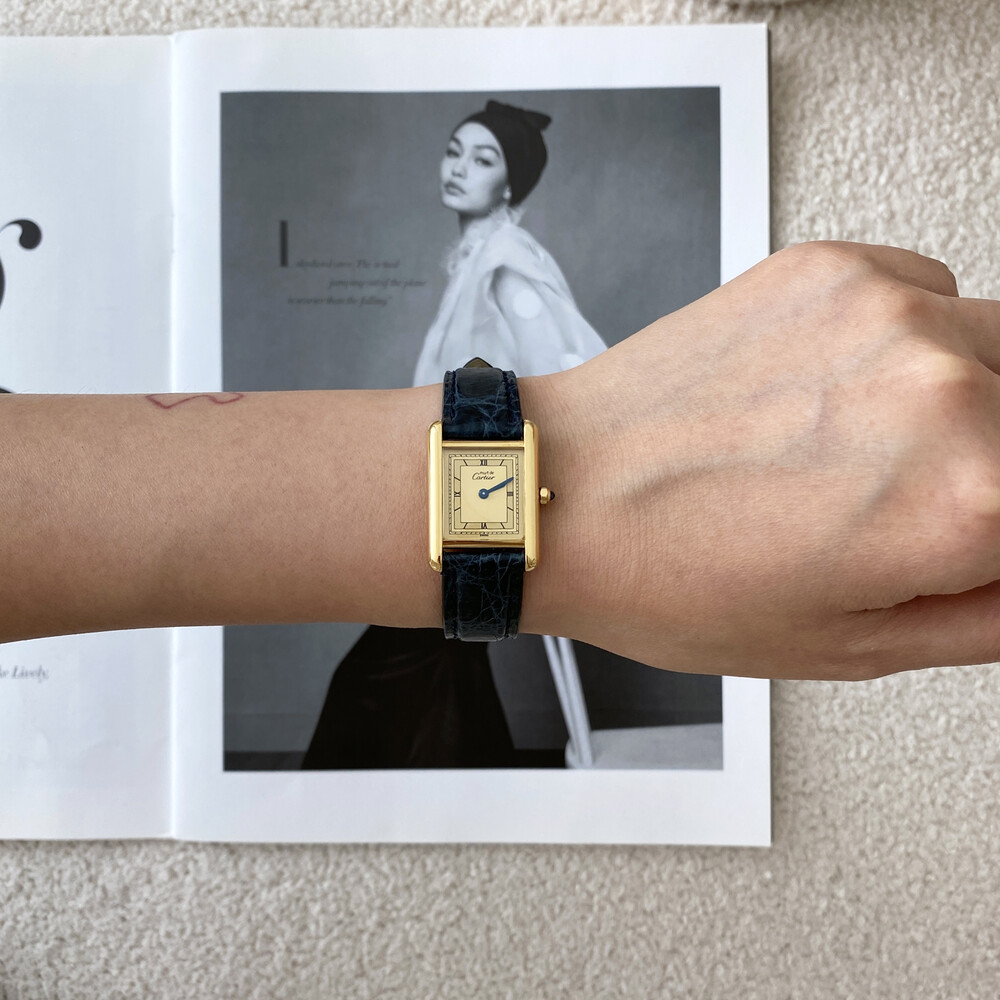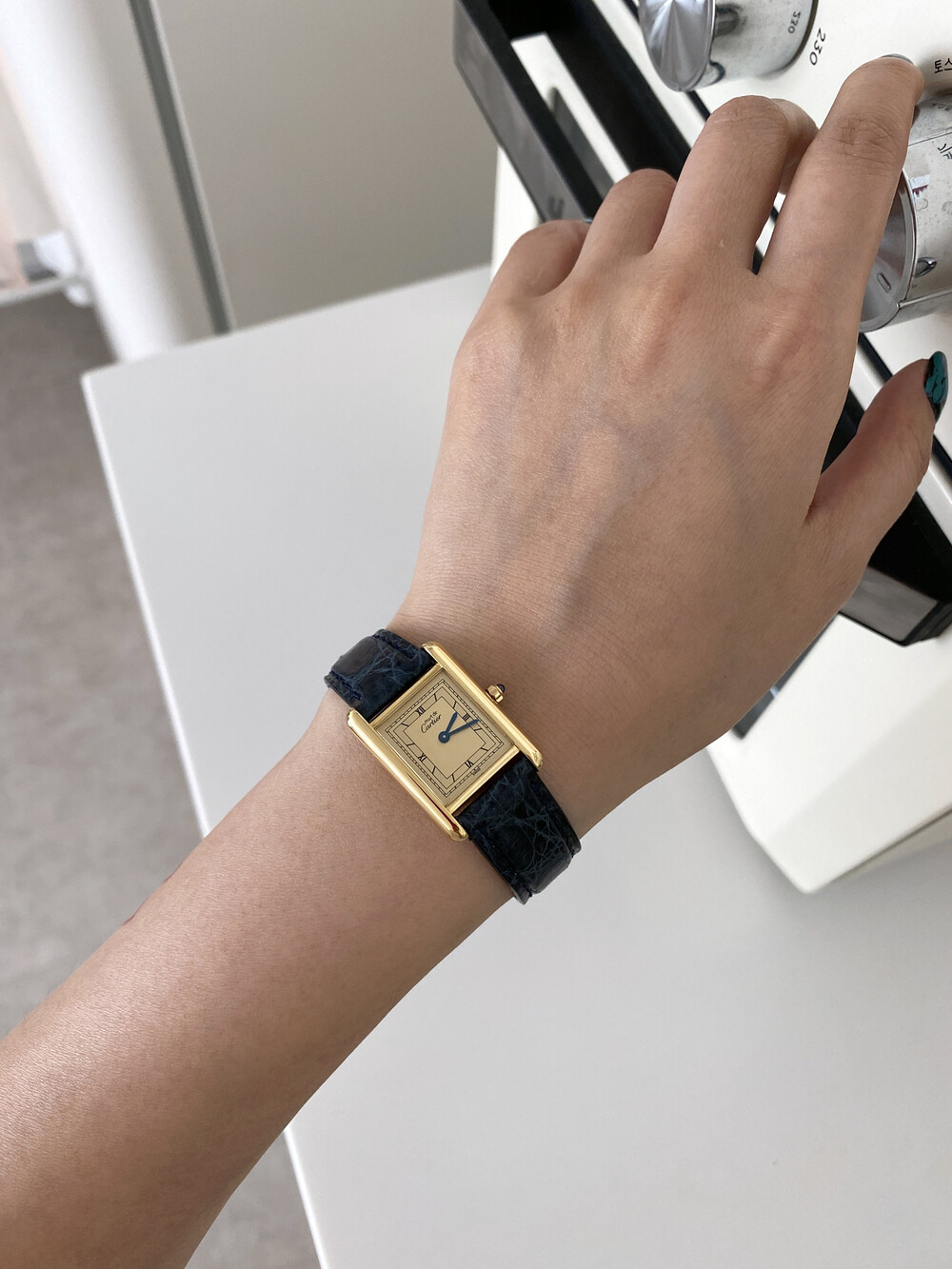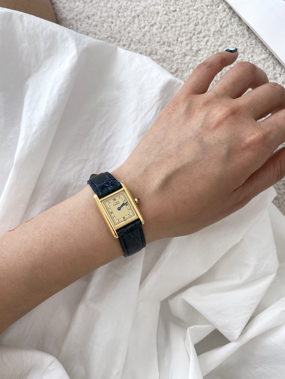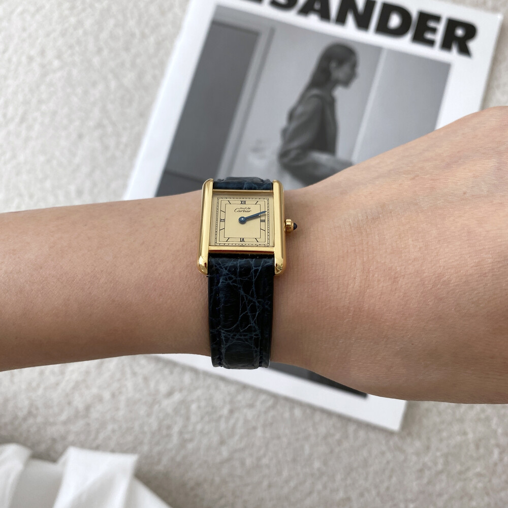 이 모델은 1990년대에 제작된 까르띠에 머스트 탱크 여성용 쿼츠 시계입니다.