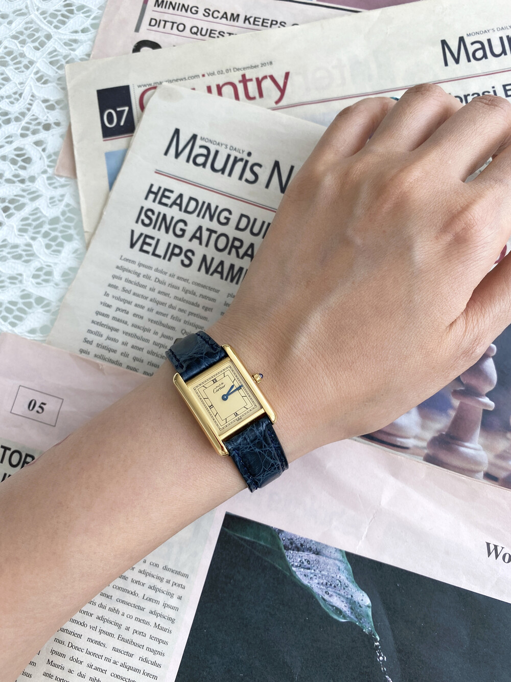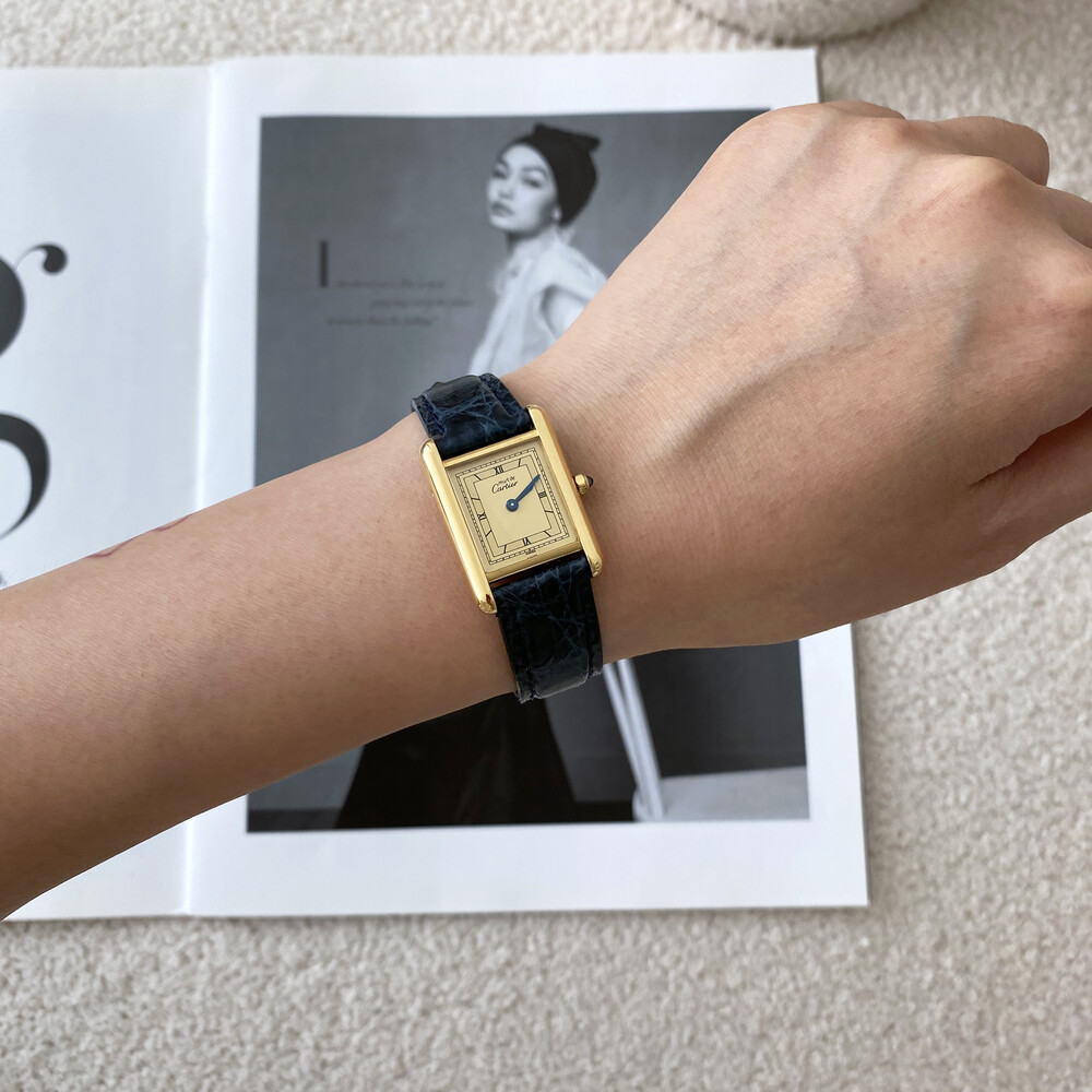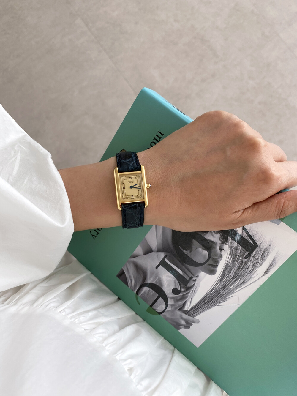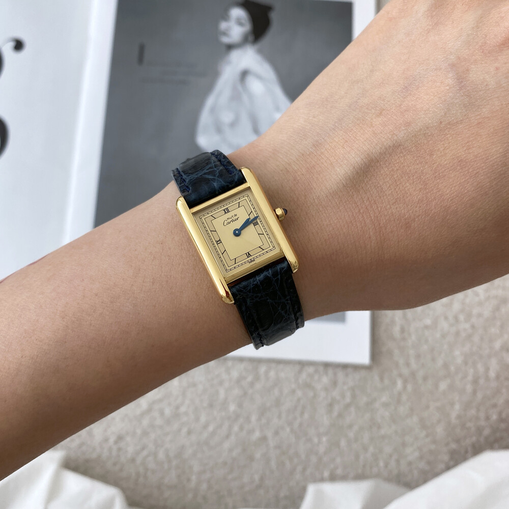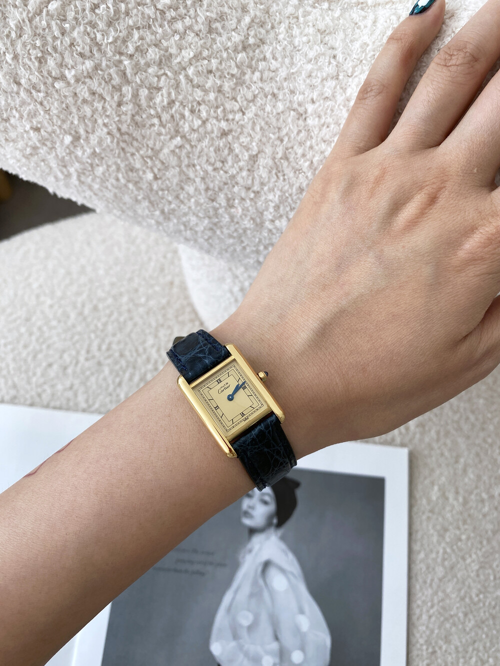 이 모델은 1990년대에 제작된 까르띠에 머스트 탱크 여성용 쿼츠 시계입니다.