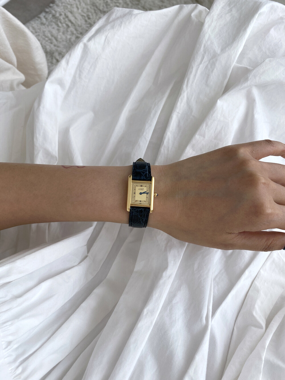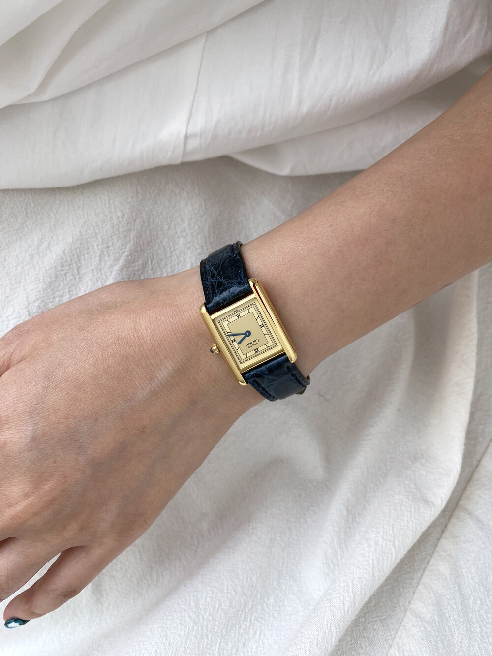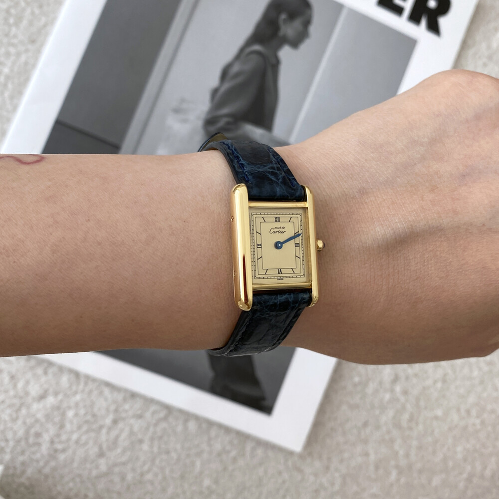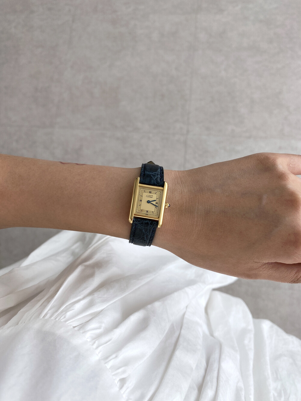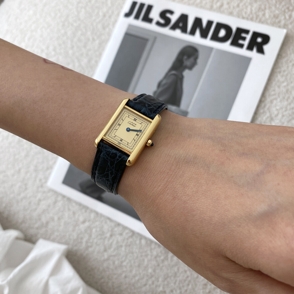 이 모델은 1990년대에 제작된 까르띠에 머스트 탱크 여성용 쿼츠 시계입니다.