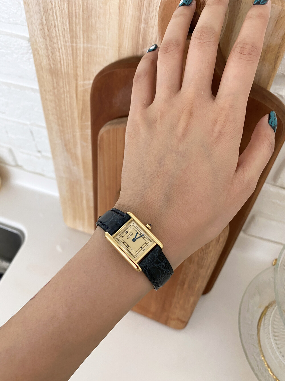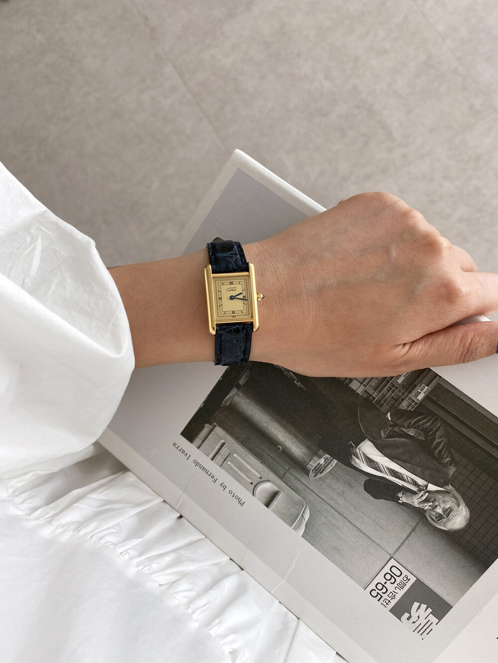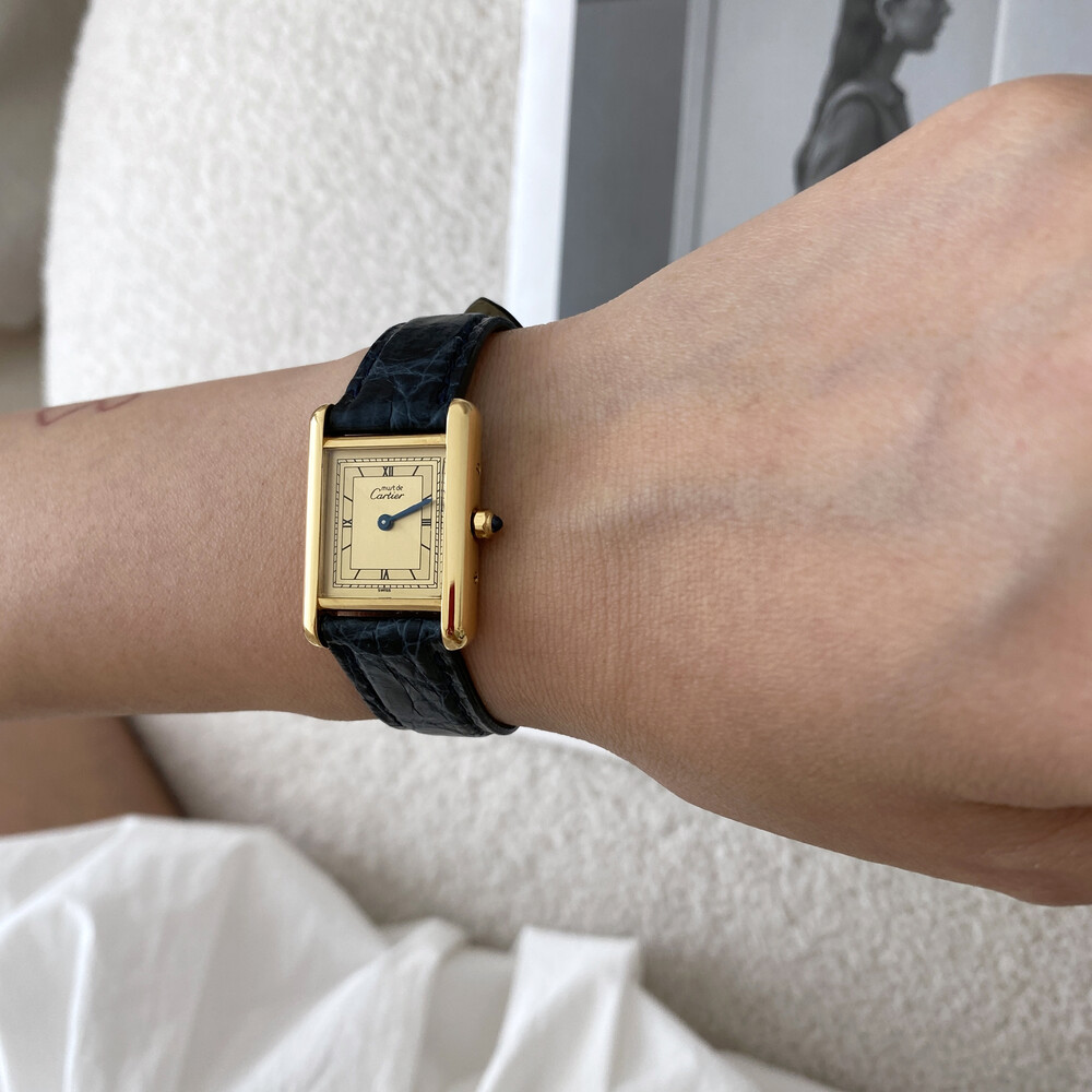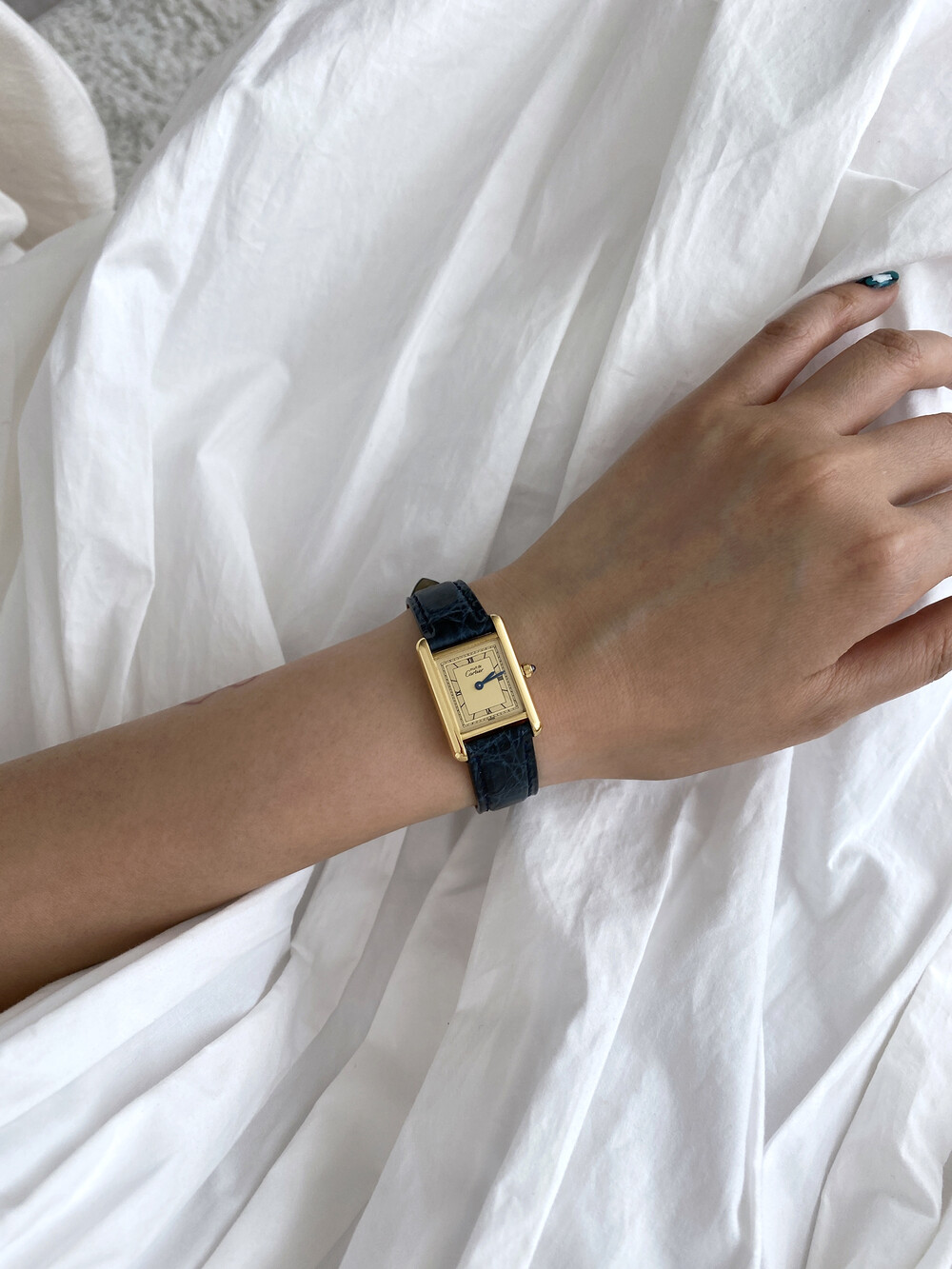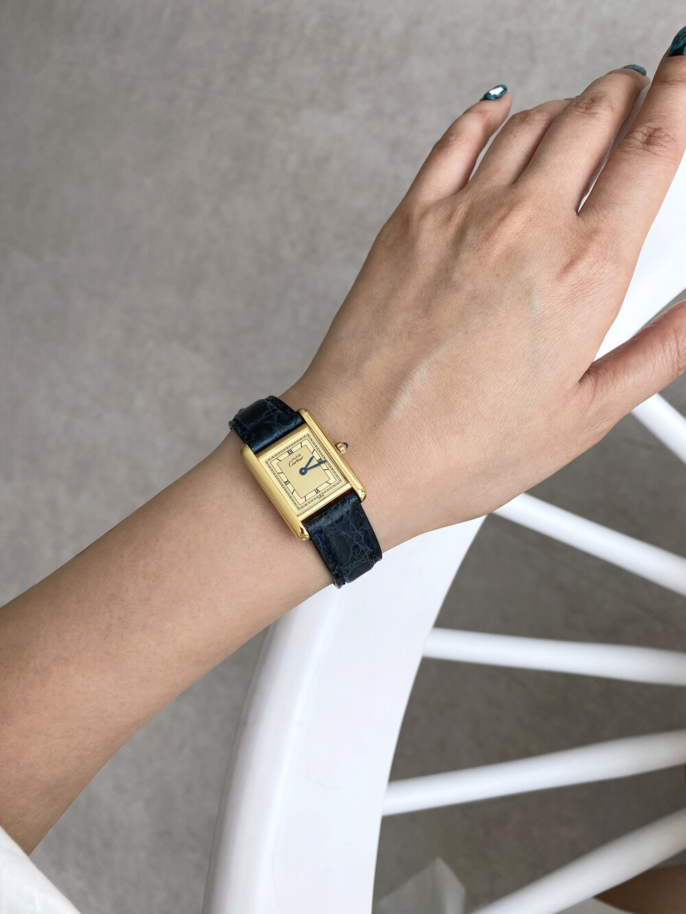 이 모델은 1990년대에 제작된 까르띠에 머스트 탱크 여성용 쿼츠 시계입니다.
