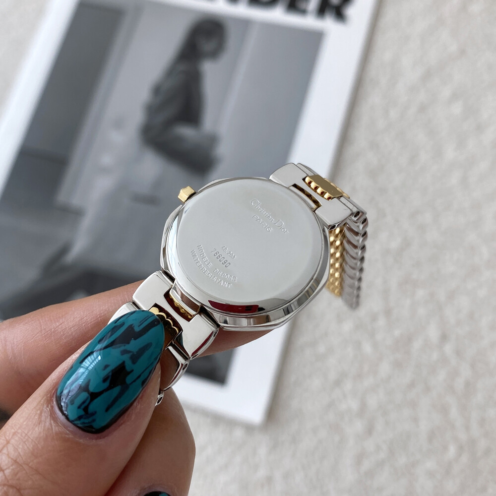 여성용으로 제작된 빈티지 디올 시계이며 스위스에서 생산된 쿼츠 무브먼트로 제작되었습니다.