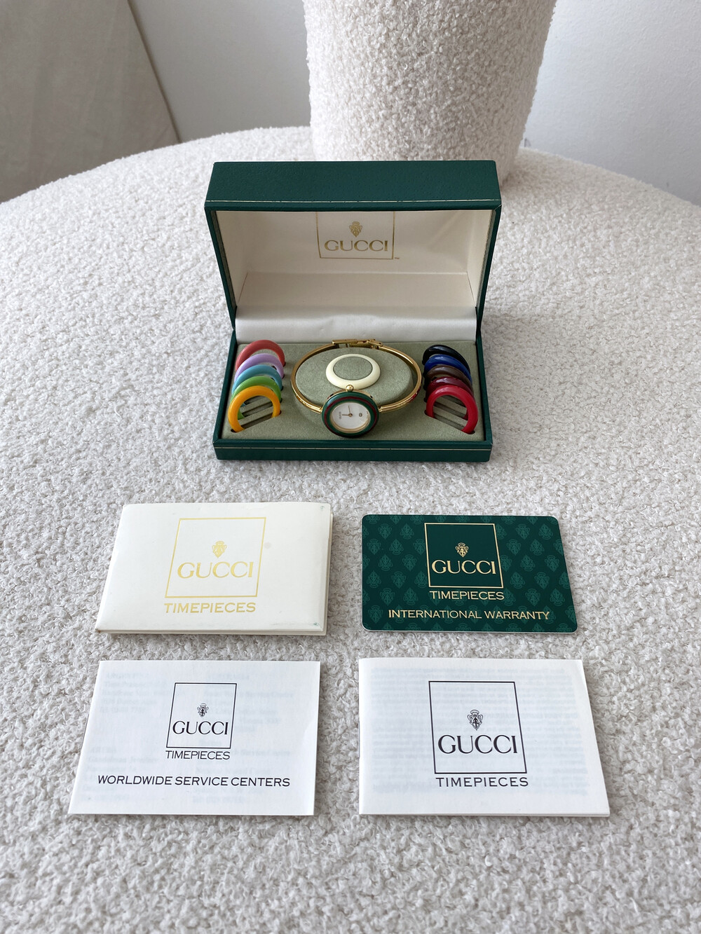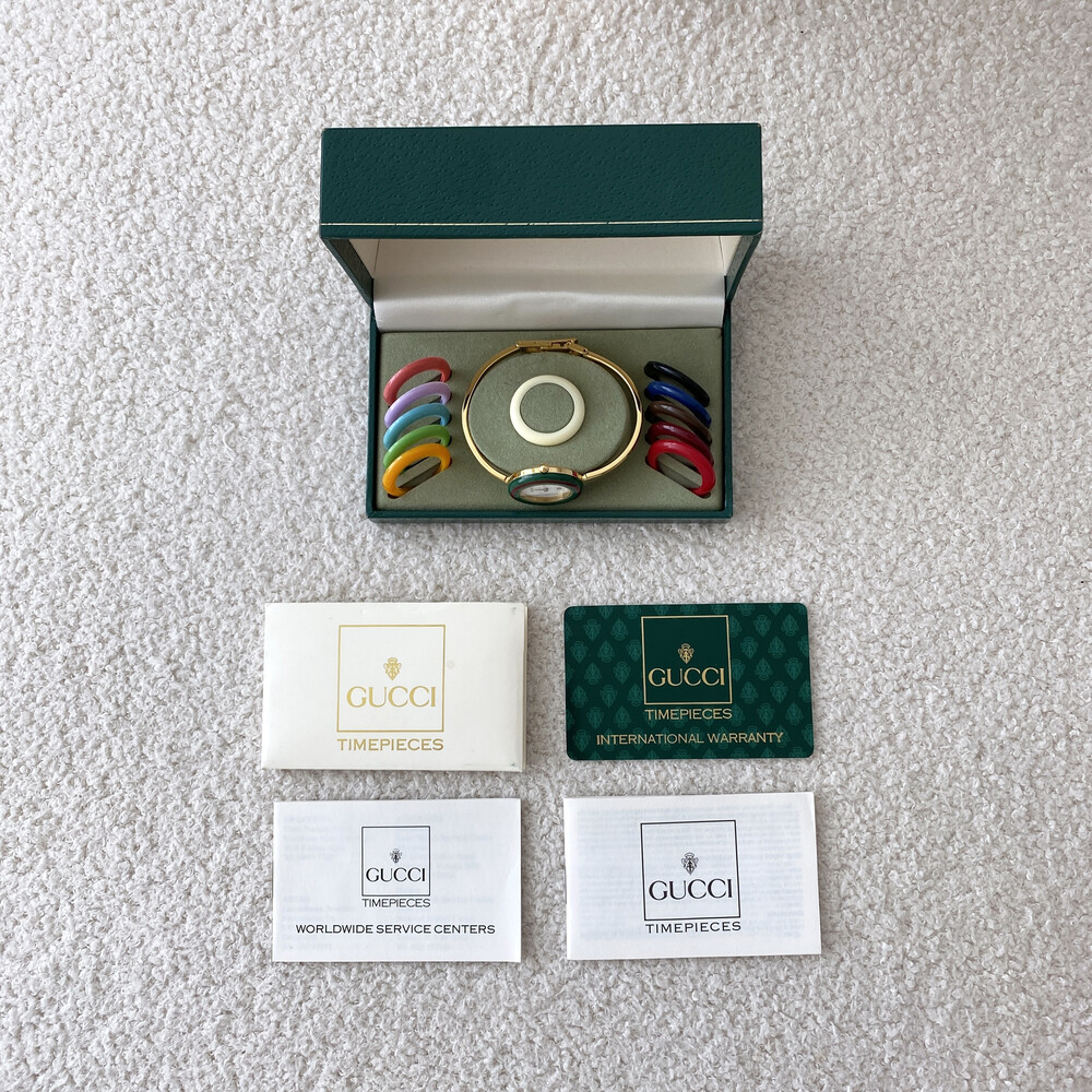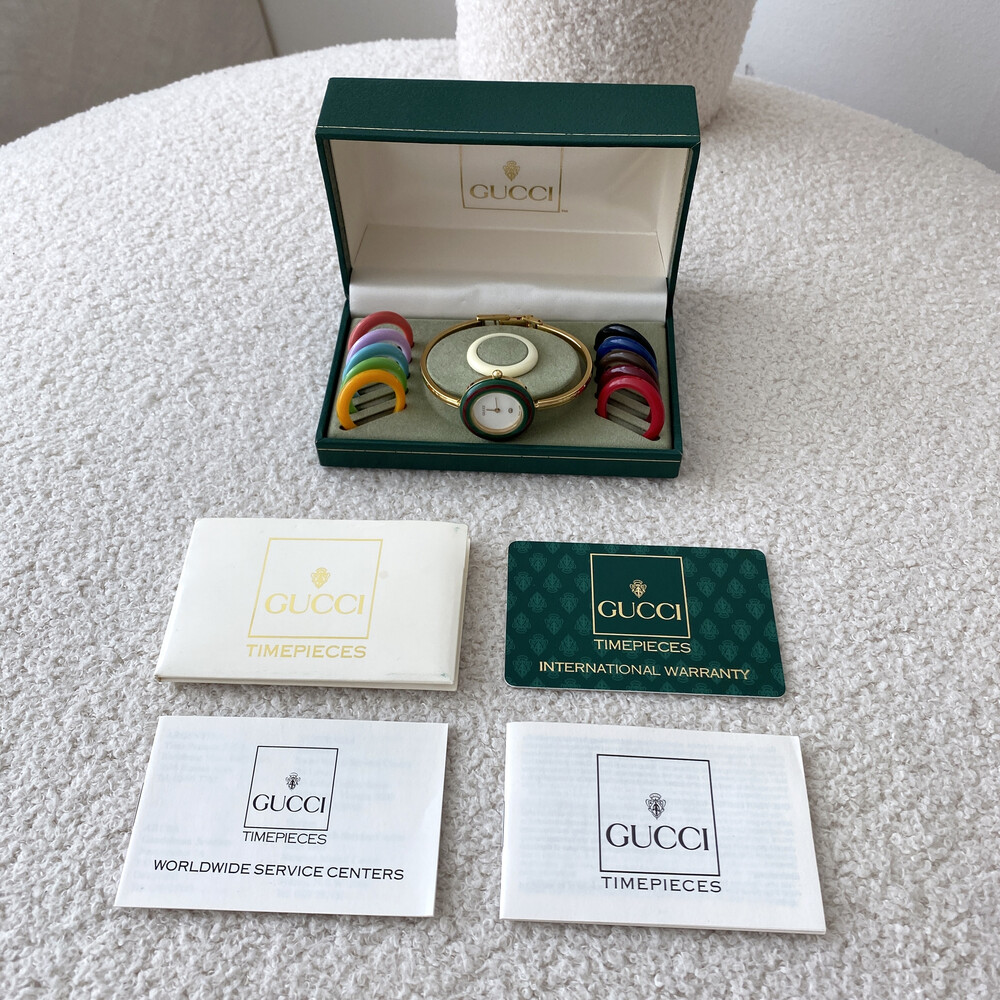 구찌 시계 케이스, 서비스센터 책자, 사용설명서, 개런티 카드가 포함된 제품입니다.