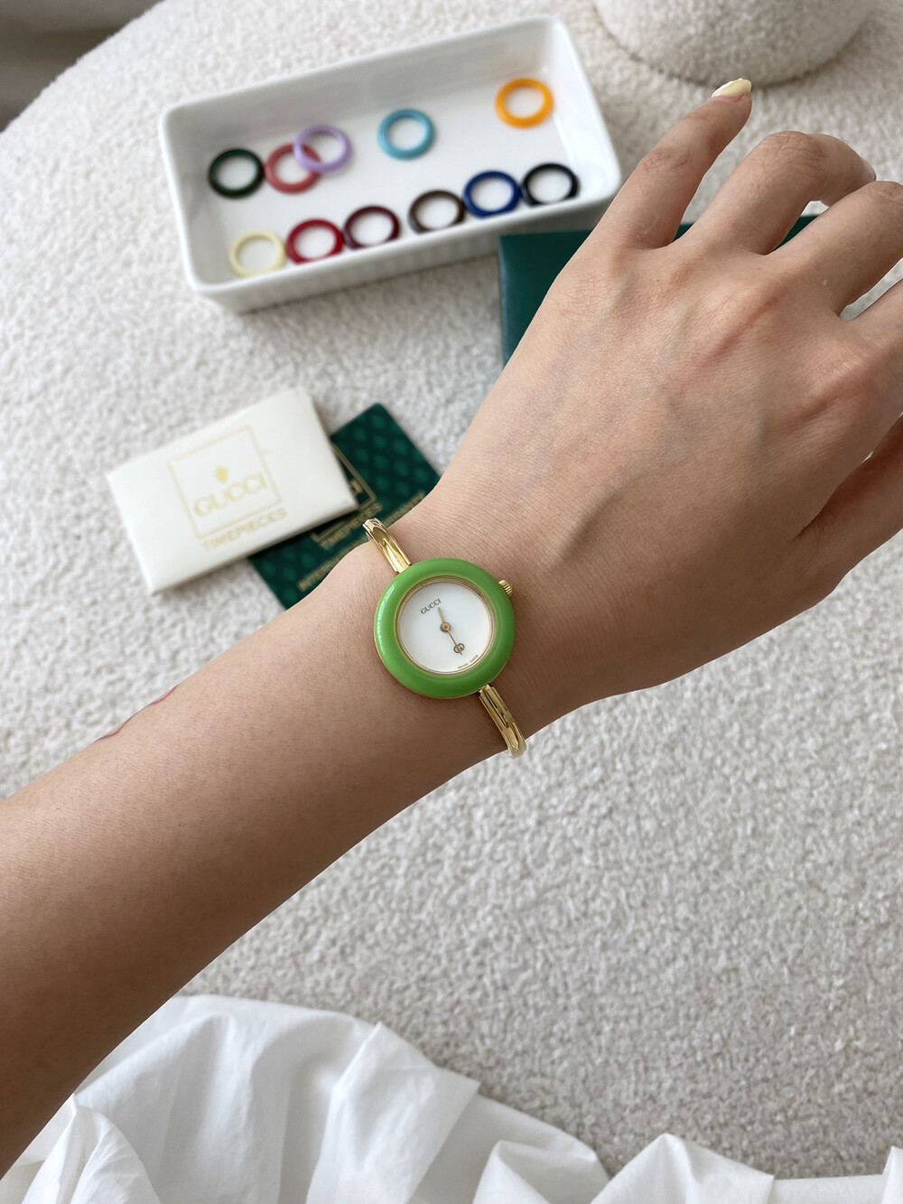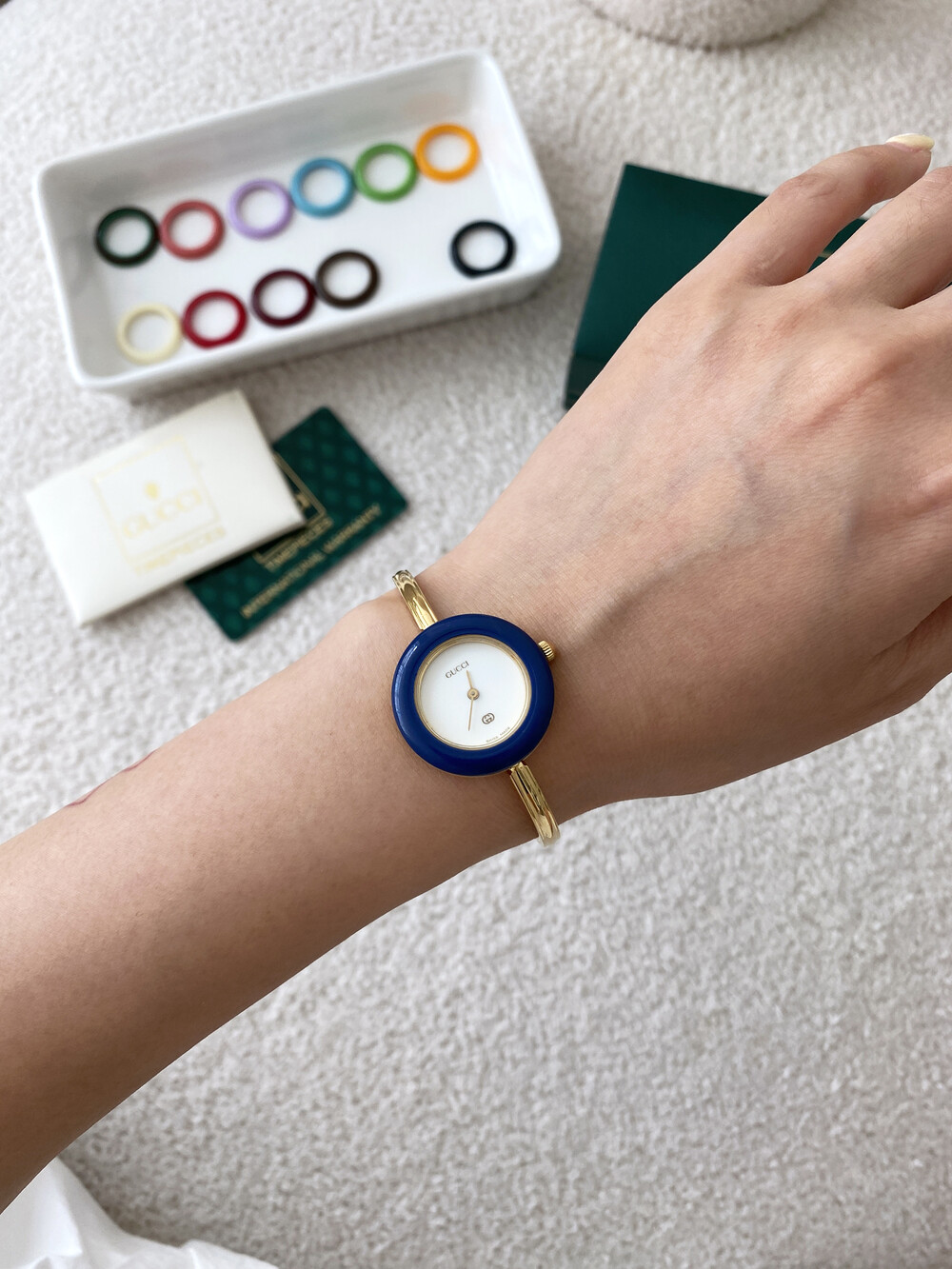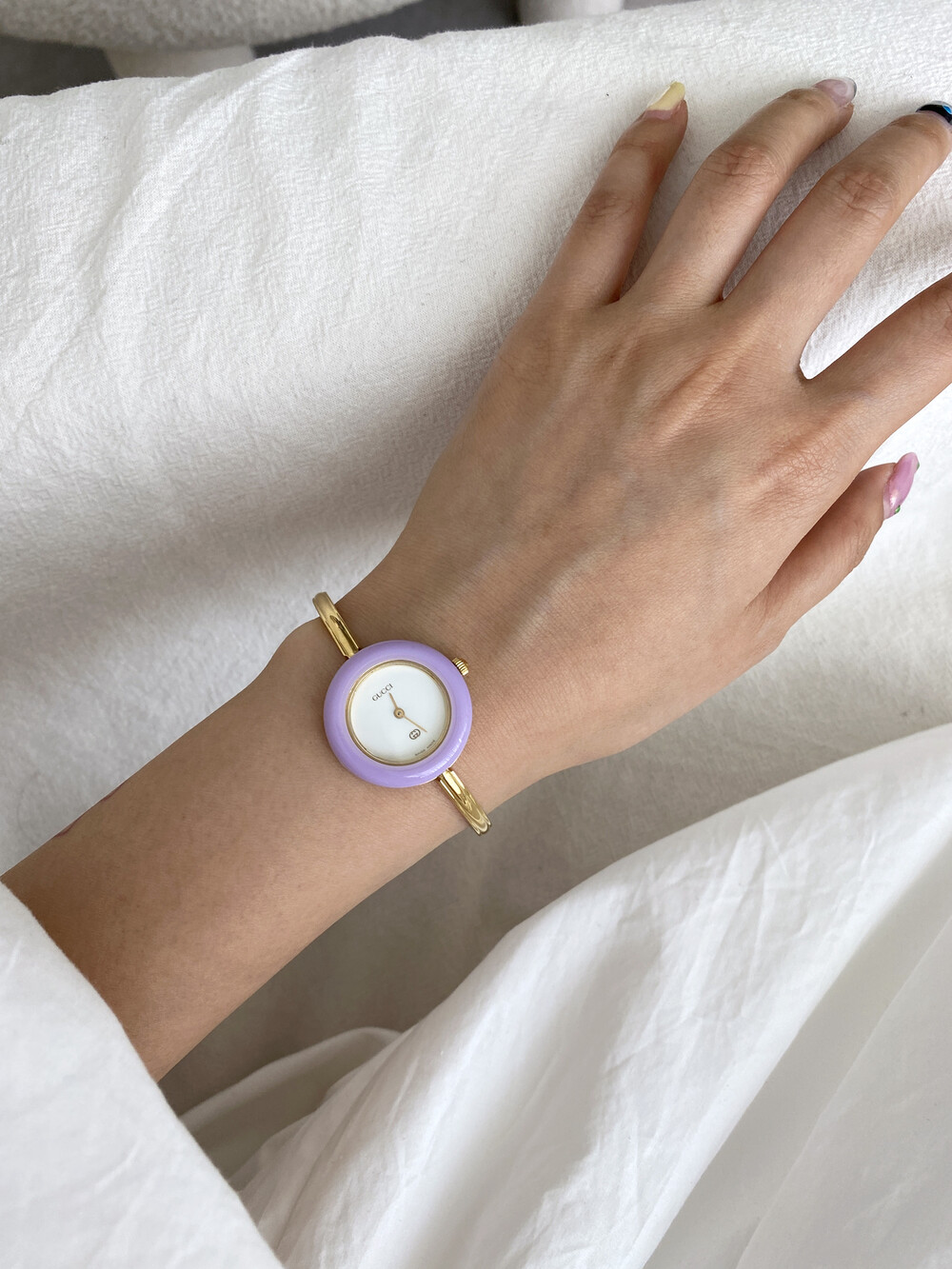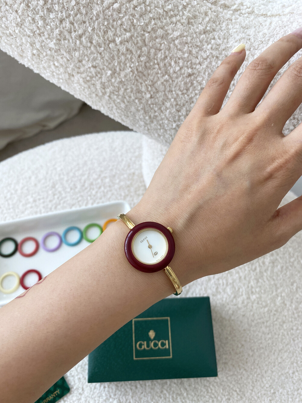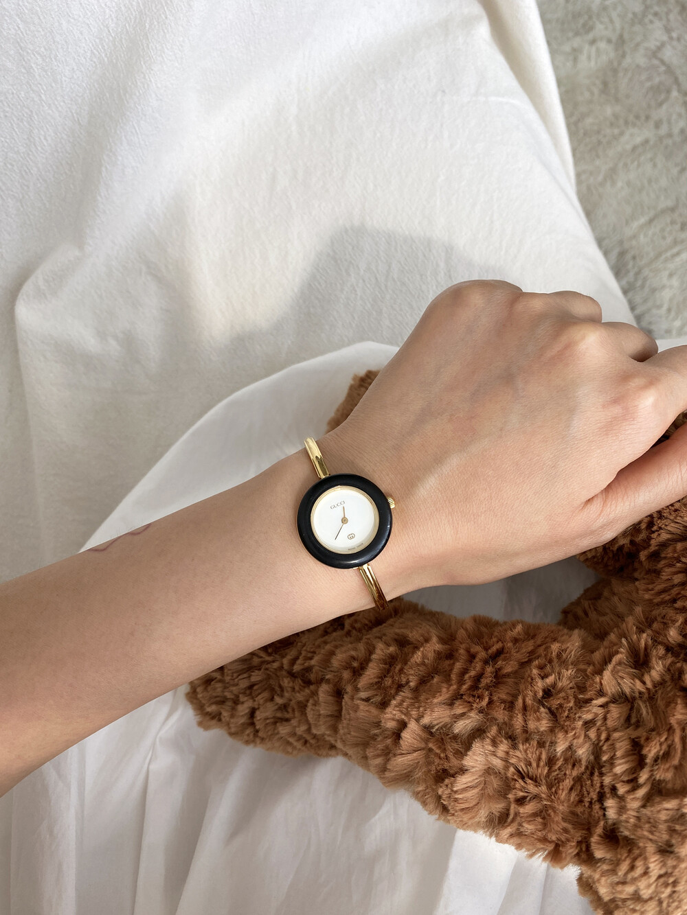 다양한 스타일을 연출할 수 있는 구찌 베젤 시계입니다.