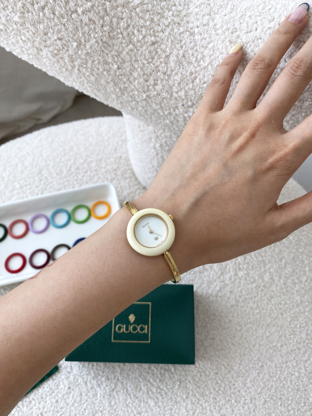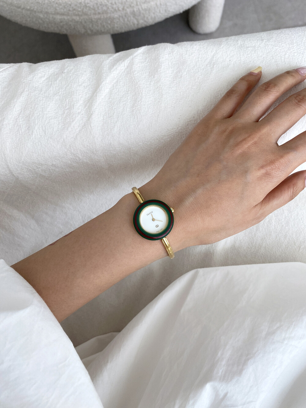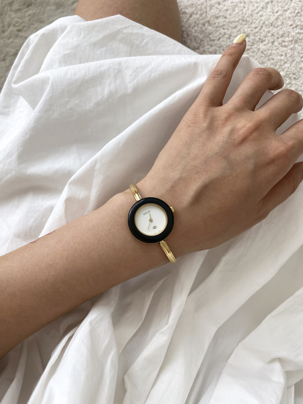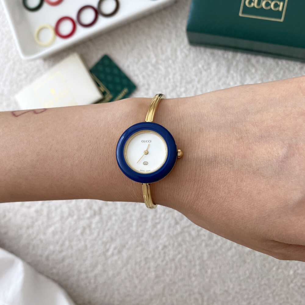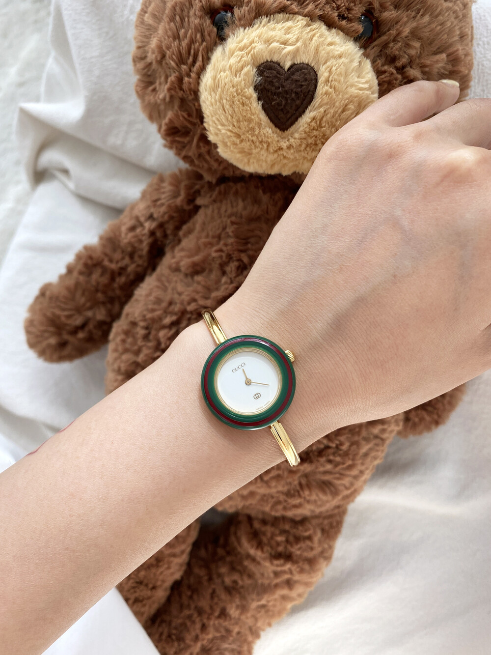 다양한 스타일을 연출할 수 있는 구찌 베젤 시계입니다.