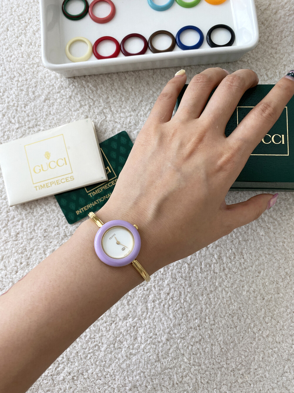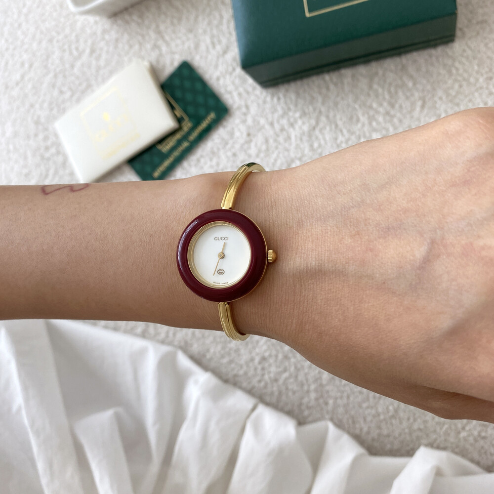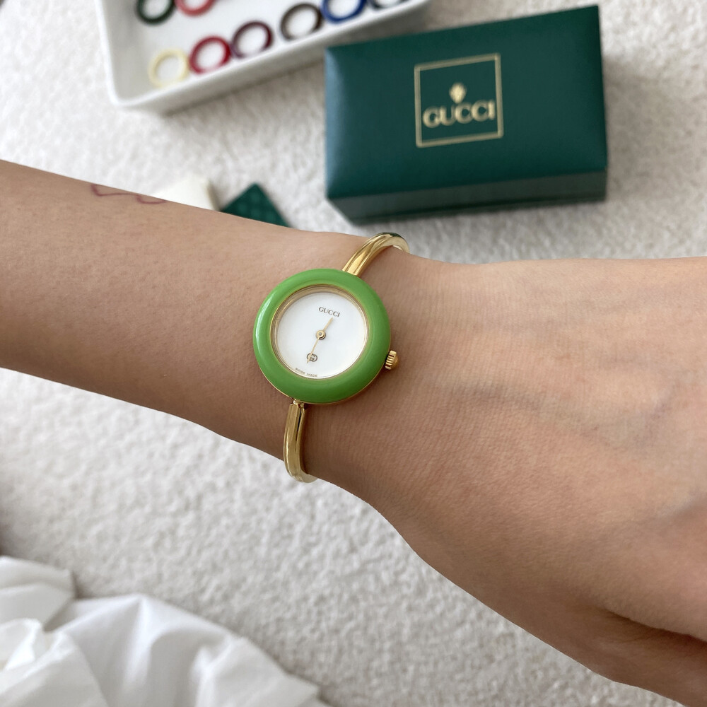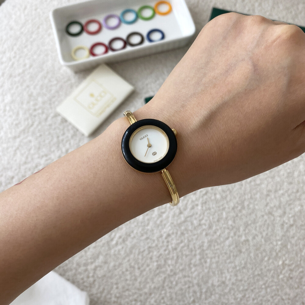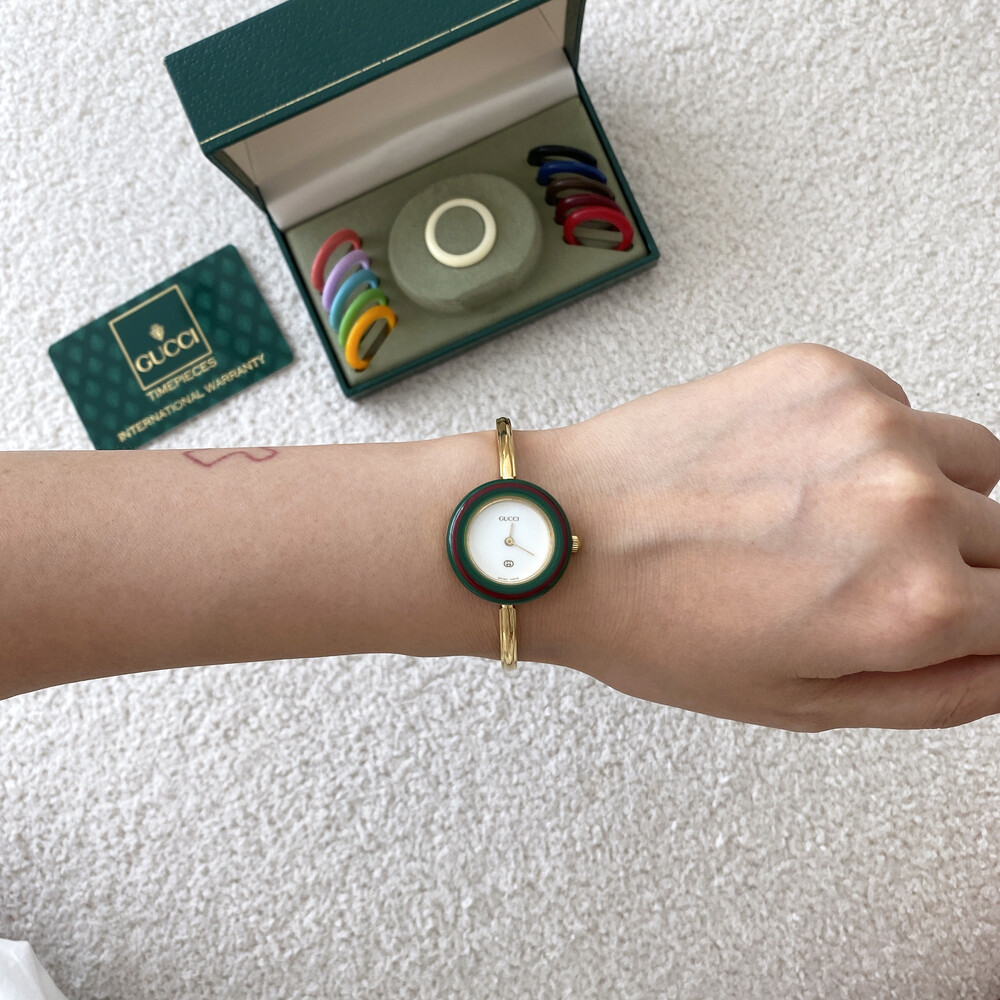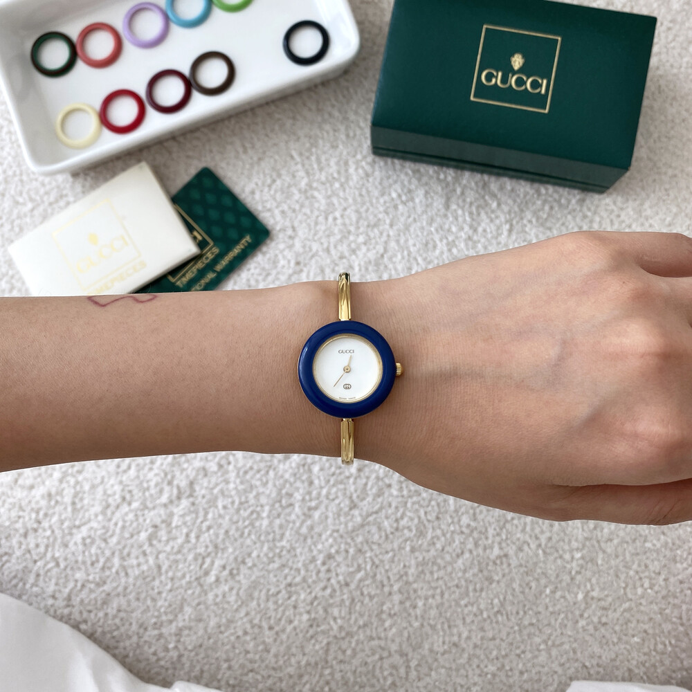다양한 스타일을 연출할 수 있는 구찌 베젤 시계입니다.