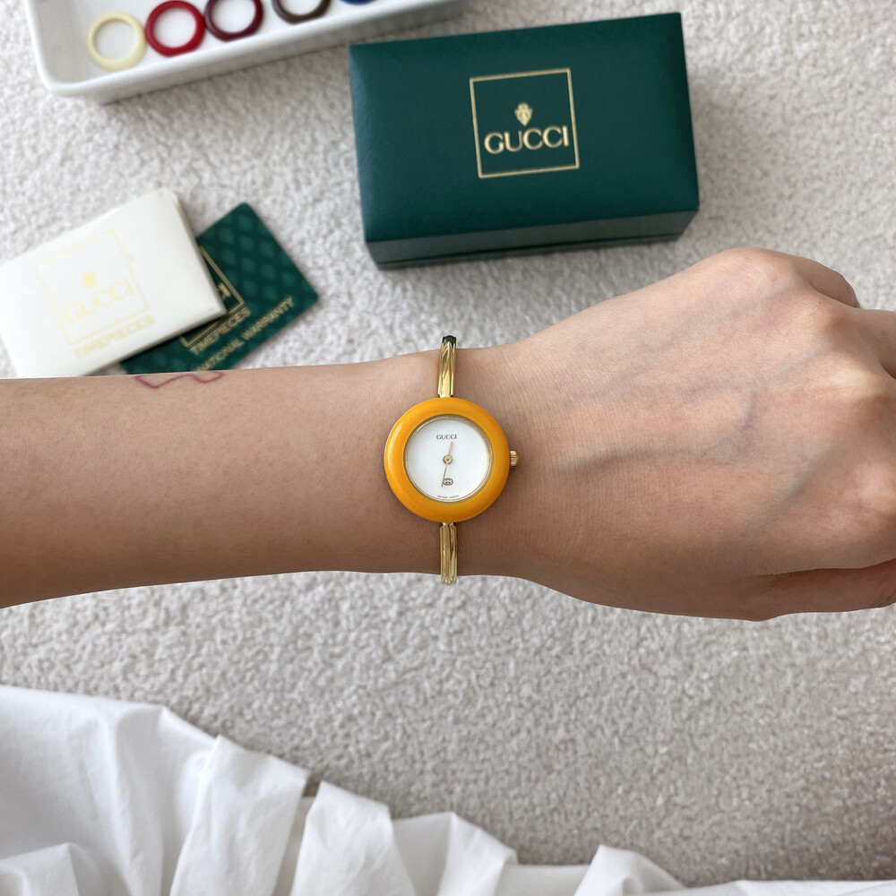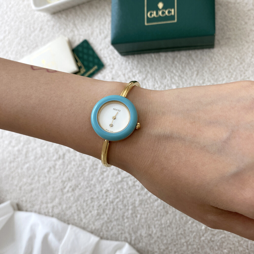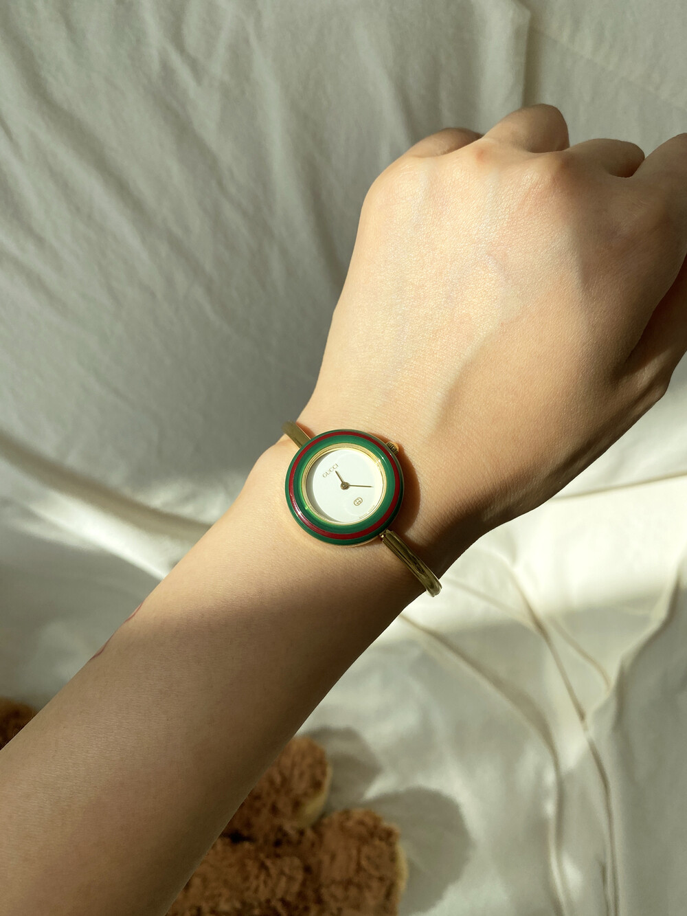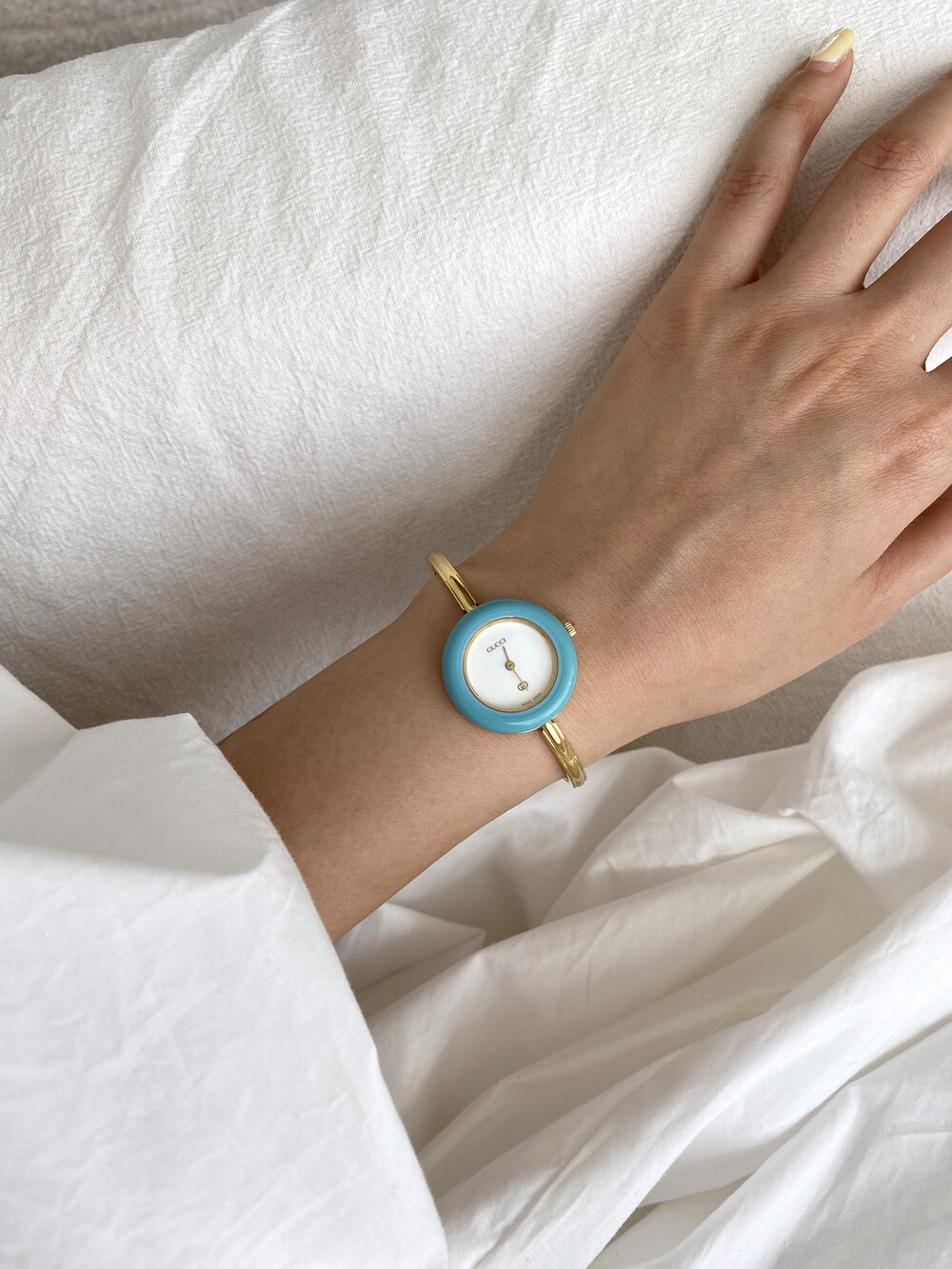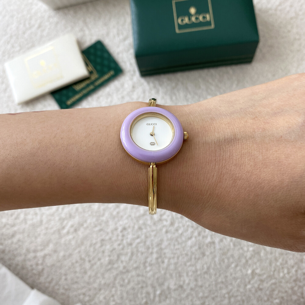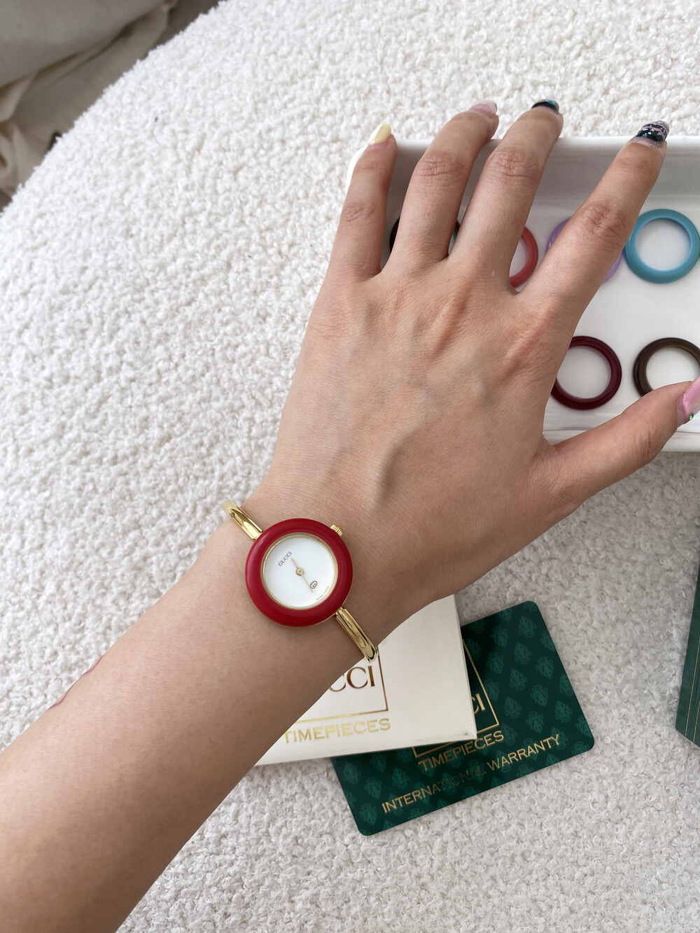 다양한 스타일을 연출할 수 있는 구찌 베젤 시계입니다.