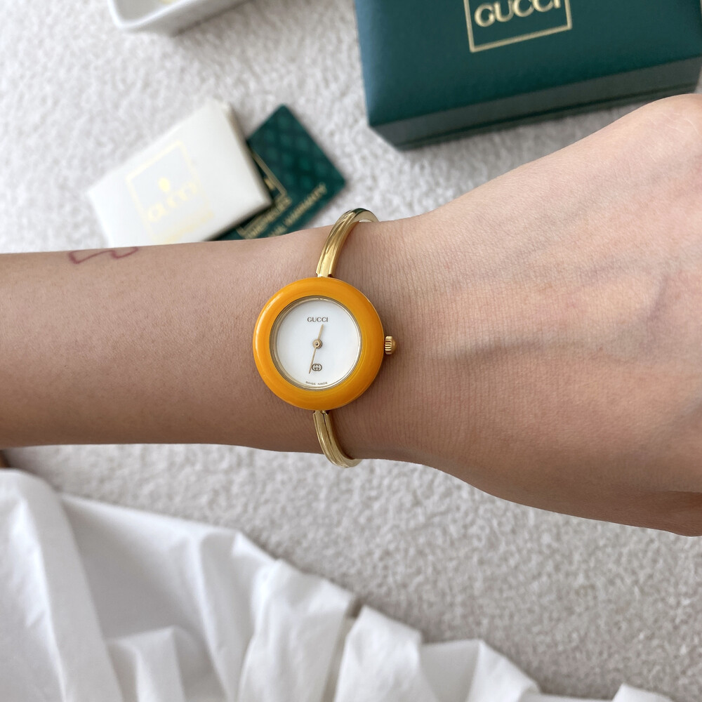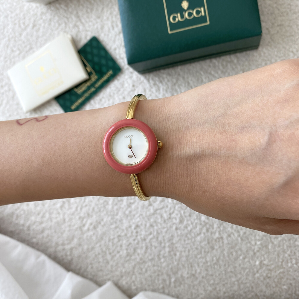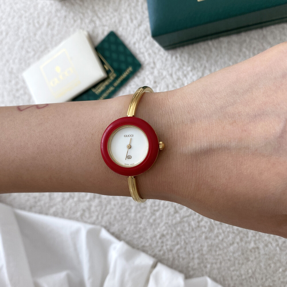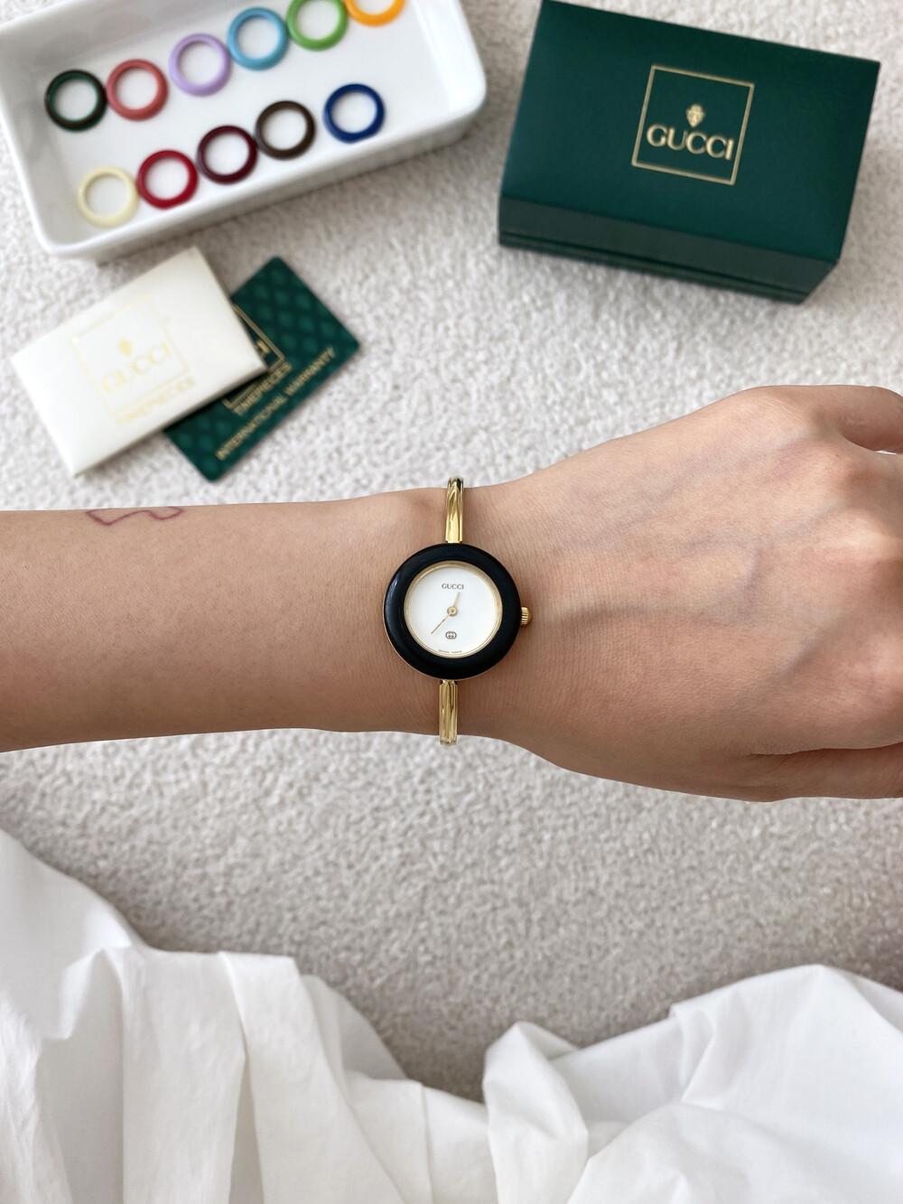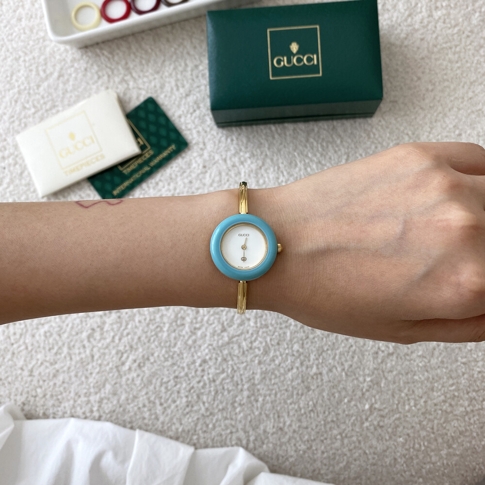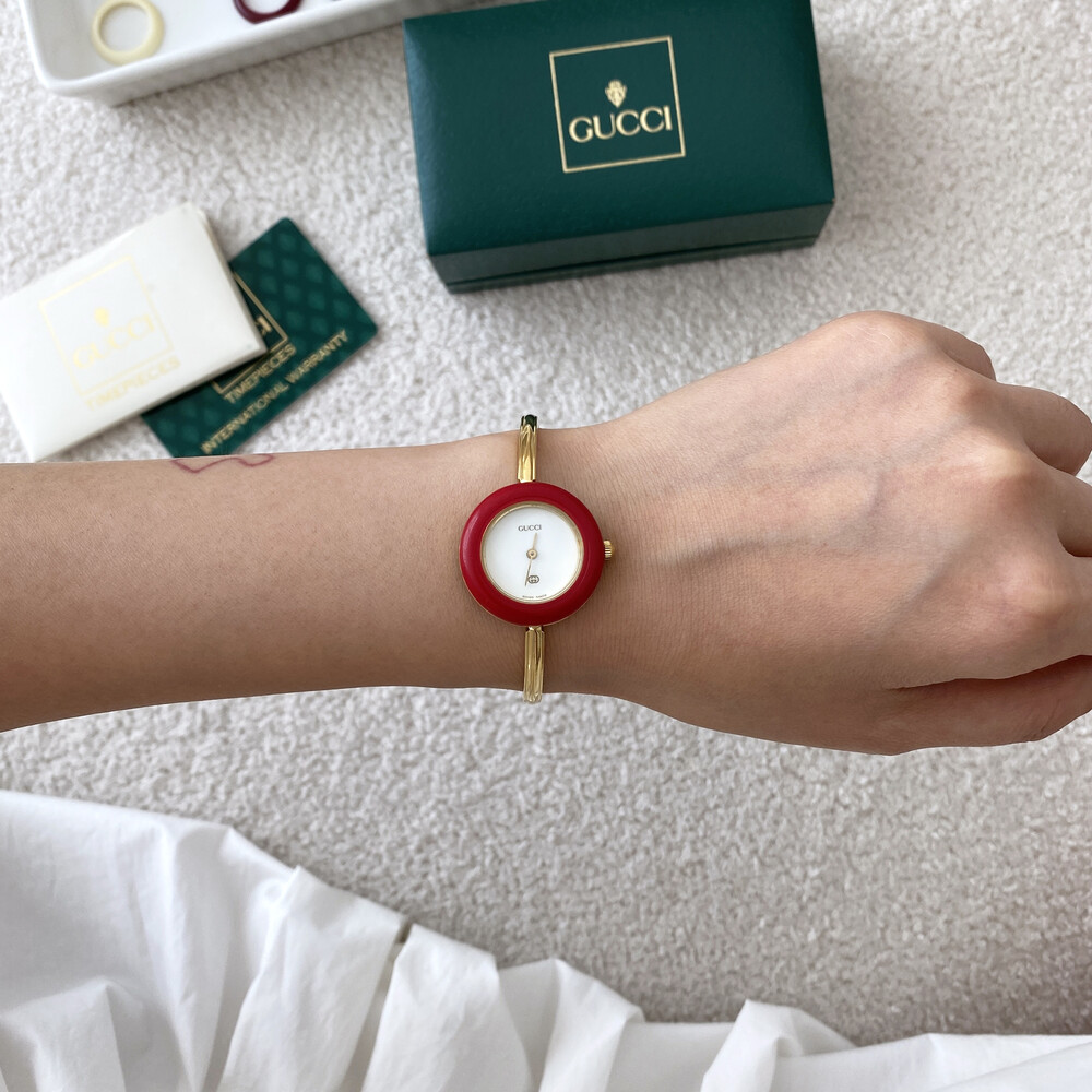 다양한 스타일을 연출할 수 있는 구찌 베젤 시계입니다.