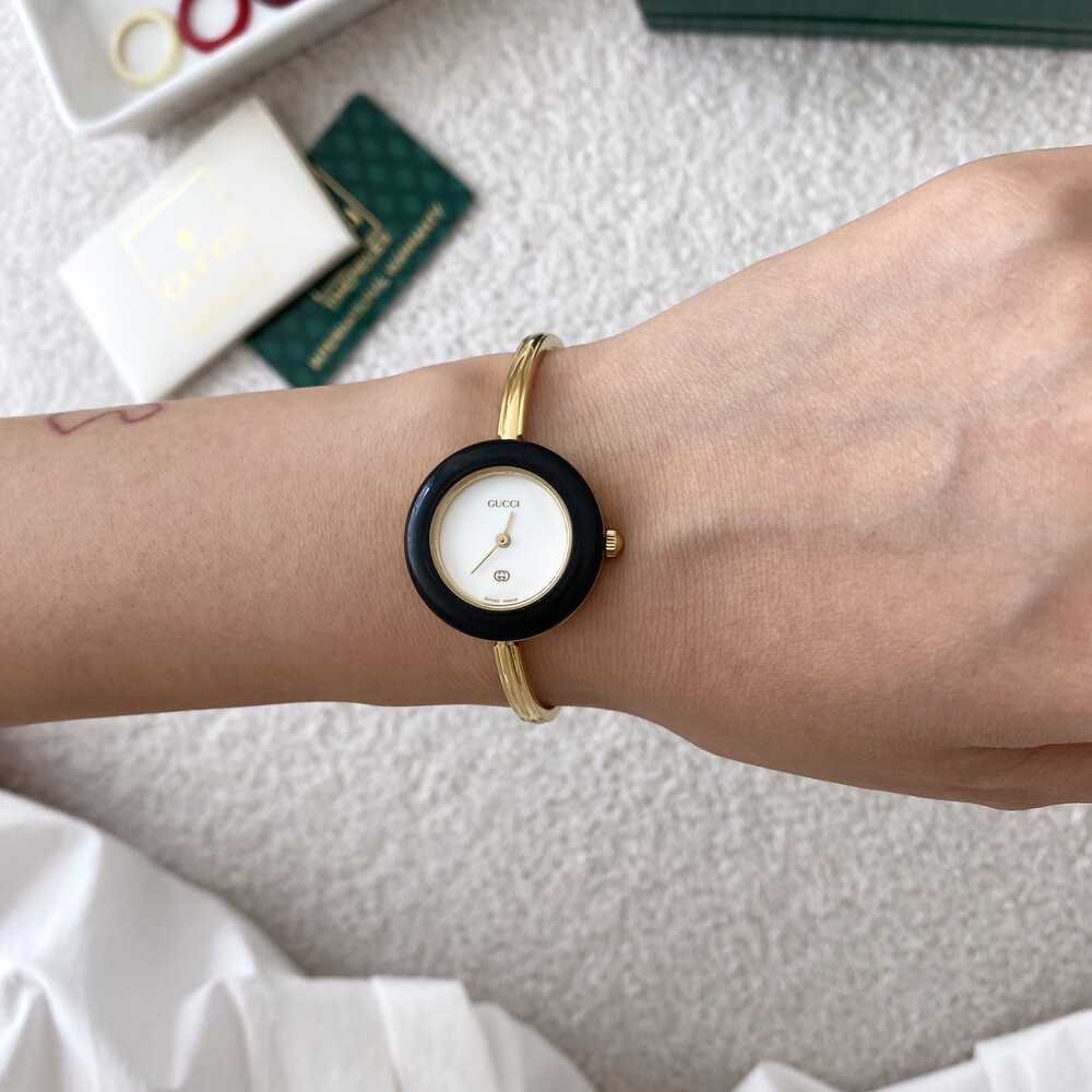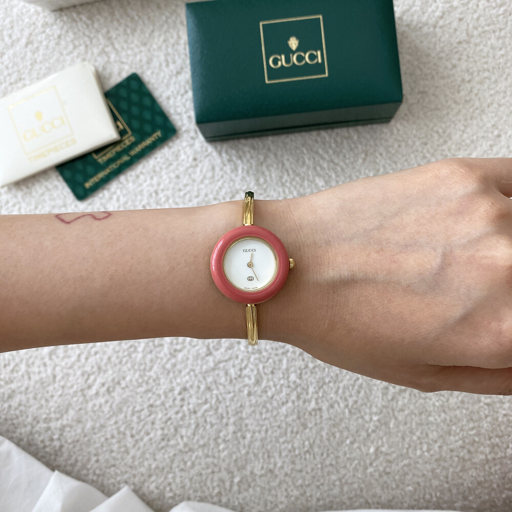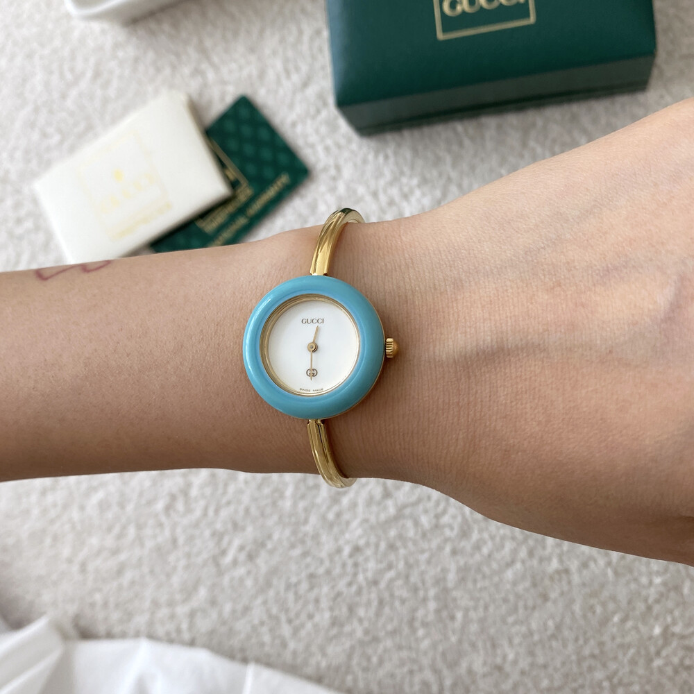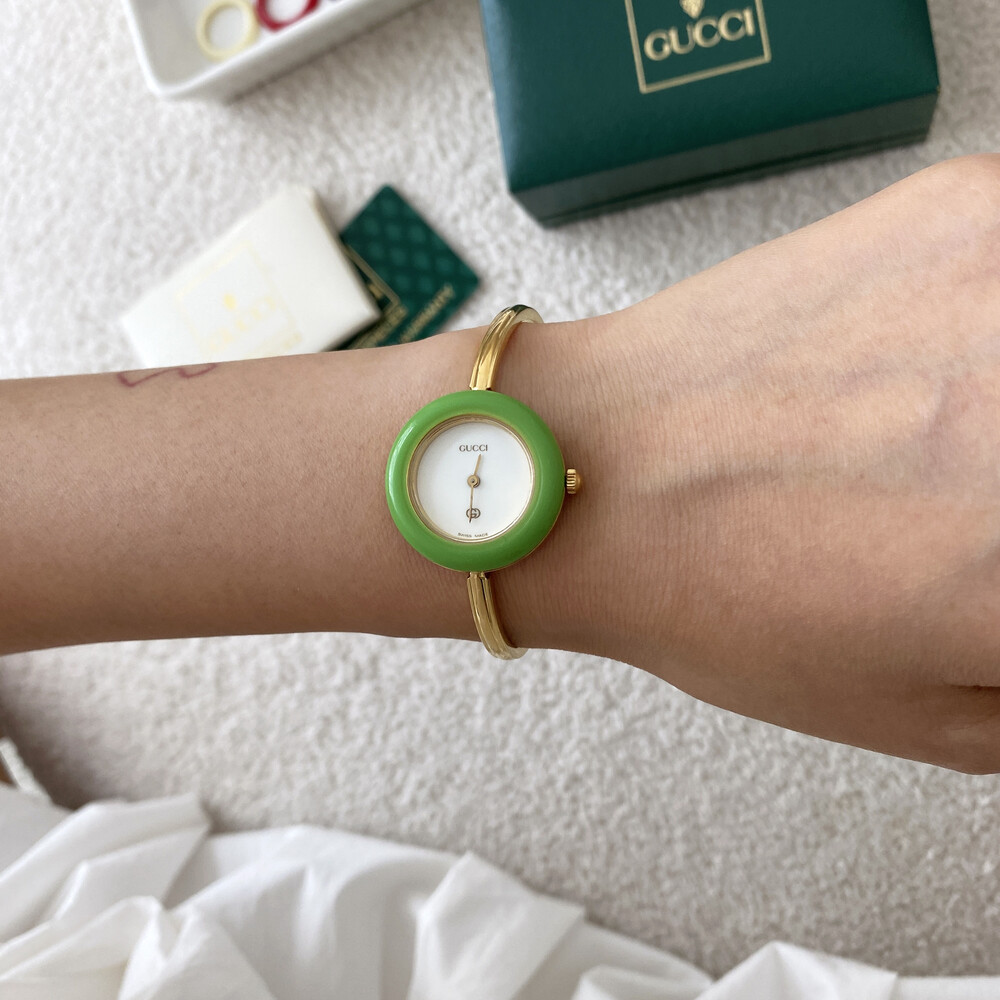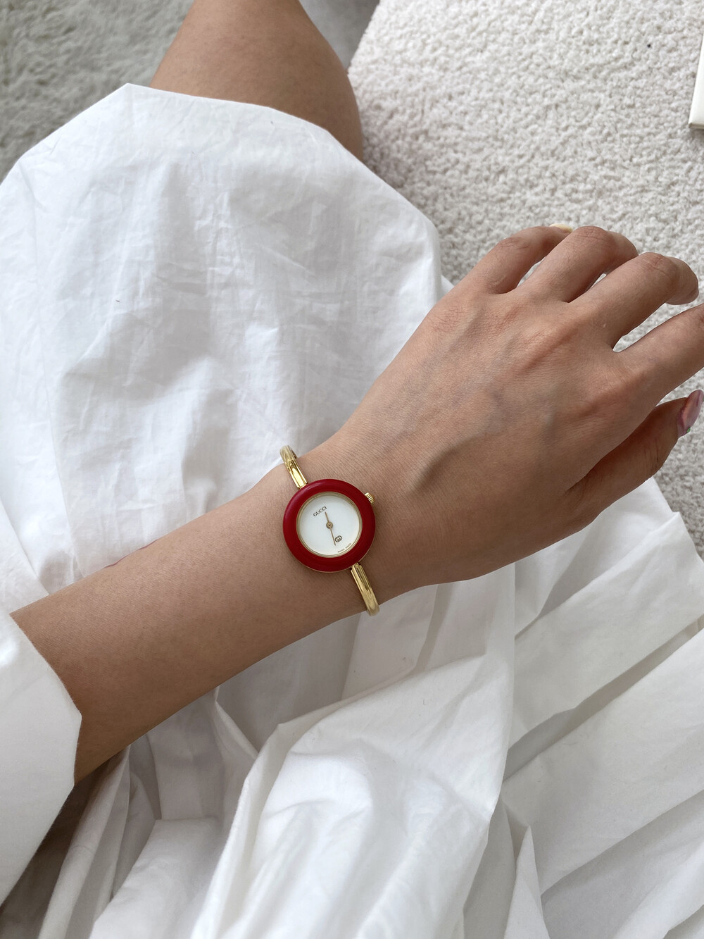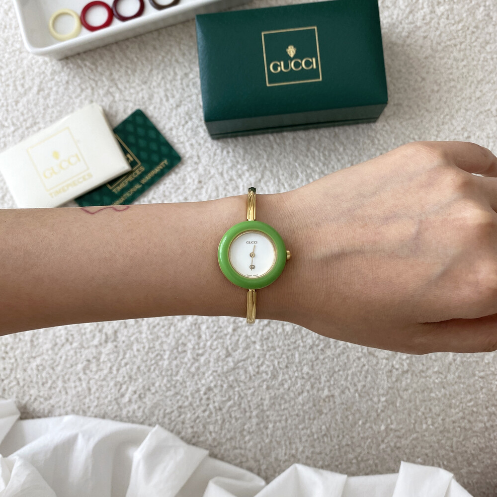 다양한 스타일을 연출할 수 있는 구찌 베젤 시계입니다.