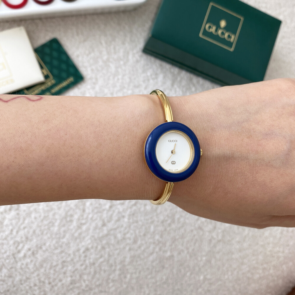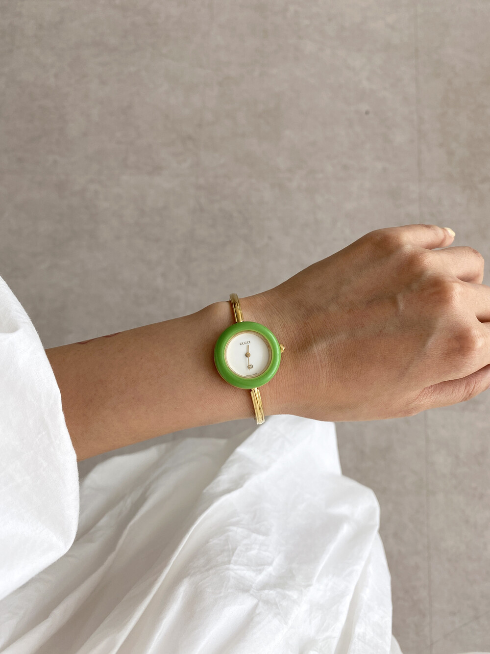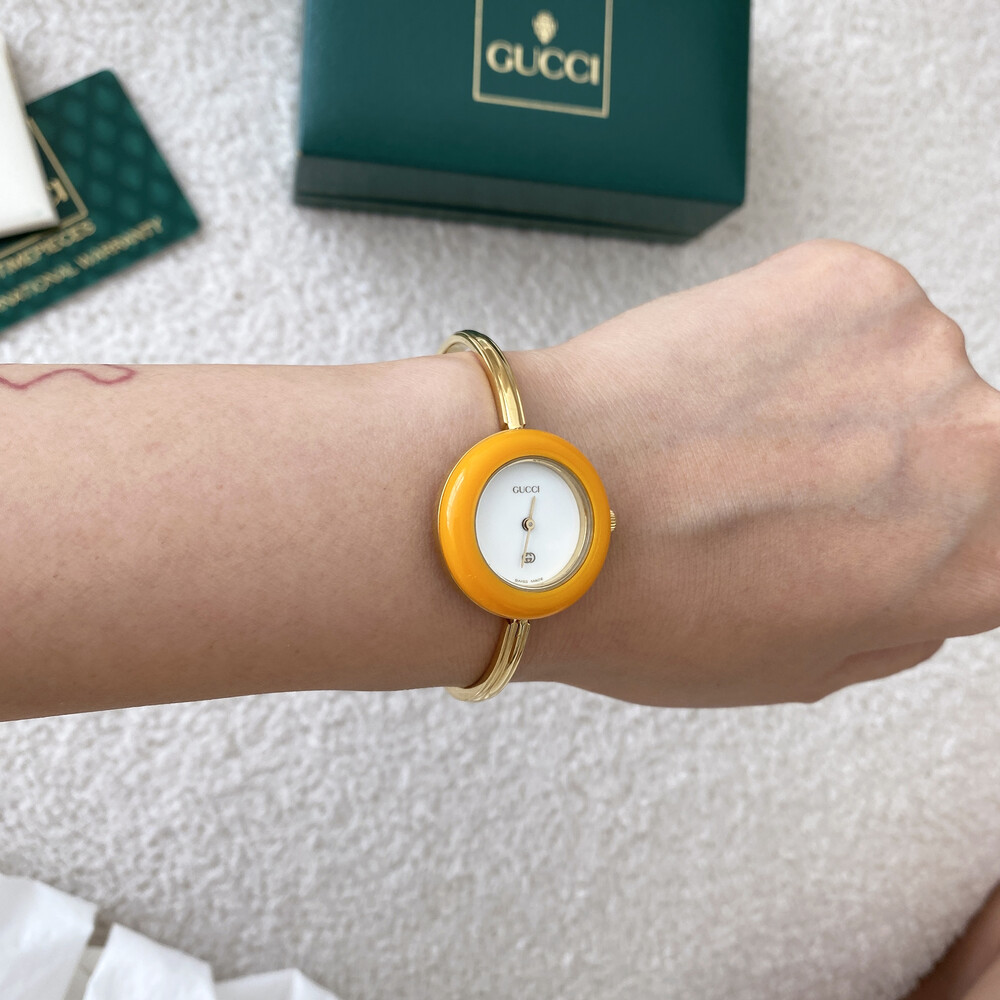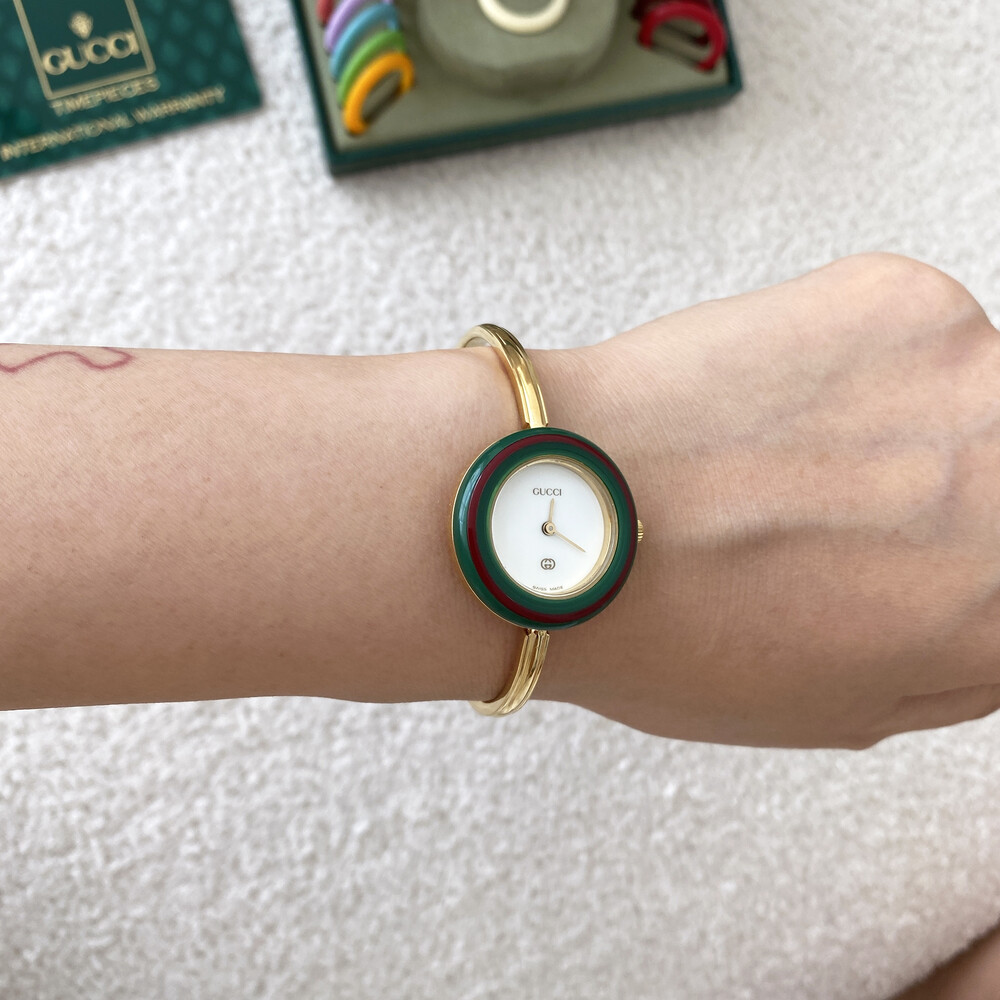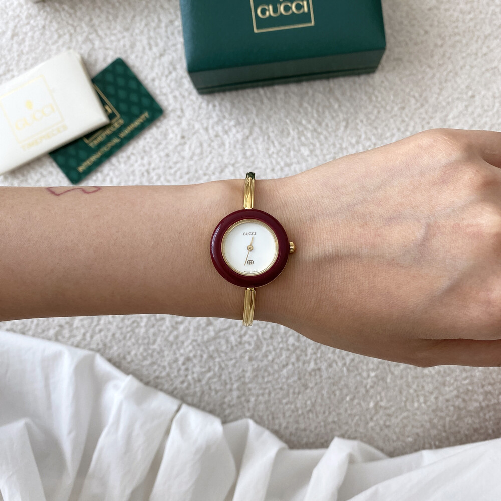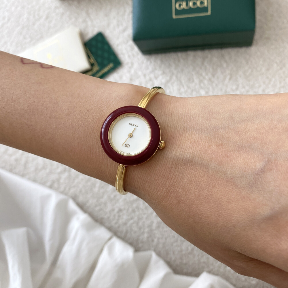 다양한 스타일을 연출할 수 있는 구찌 베젤 시계입니다.
