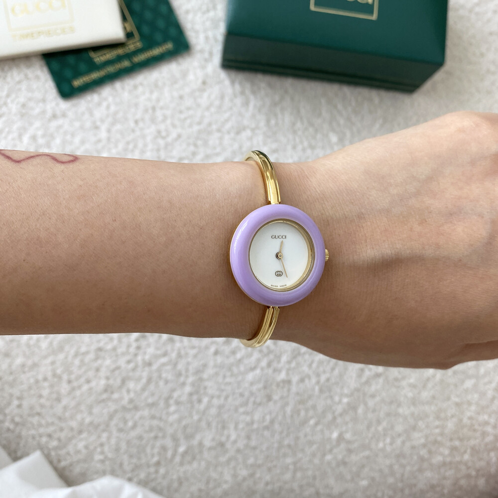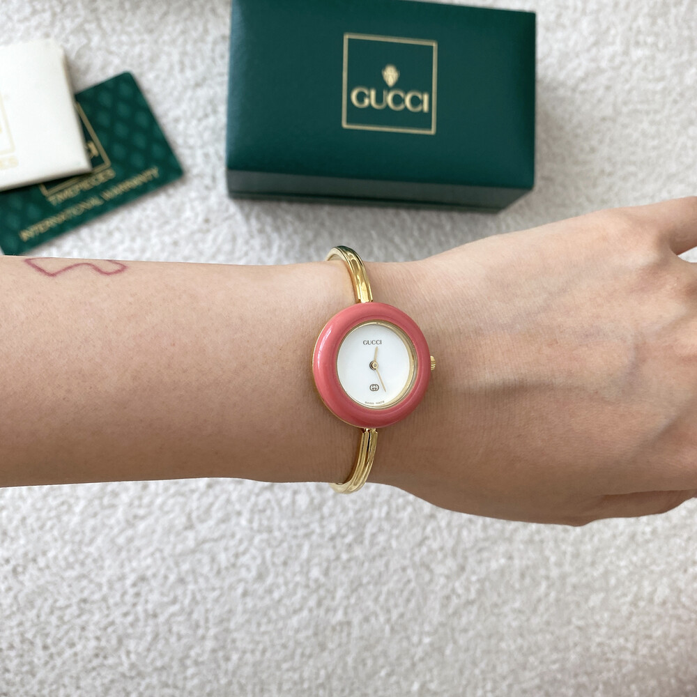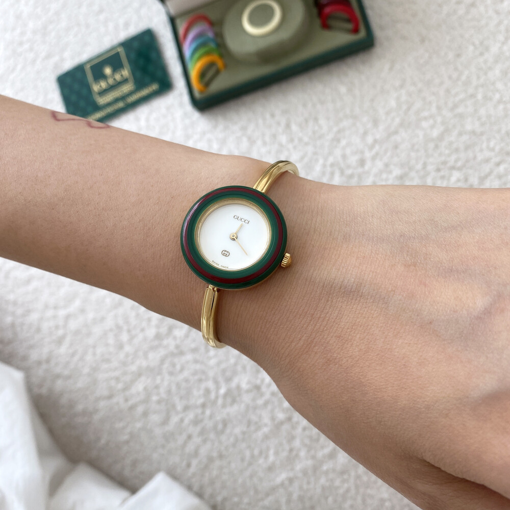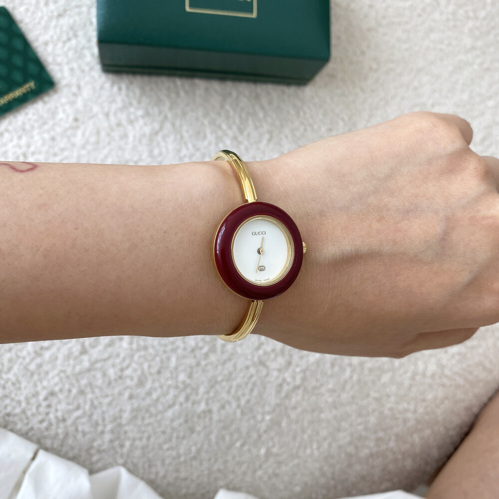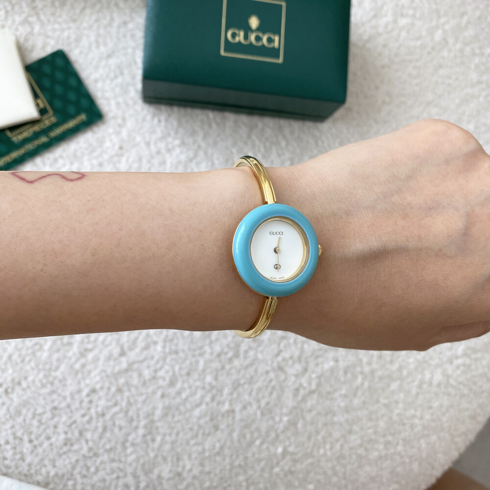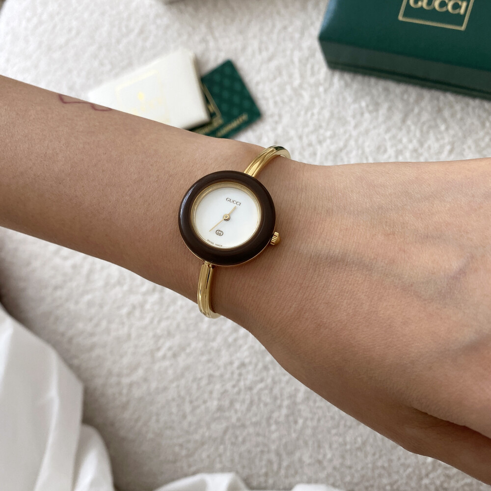 다양한 스타일을 연출할 수 있는 구찌 베젤 시계입니다.