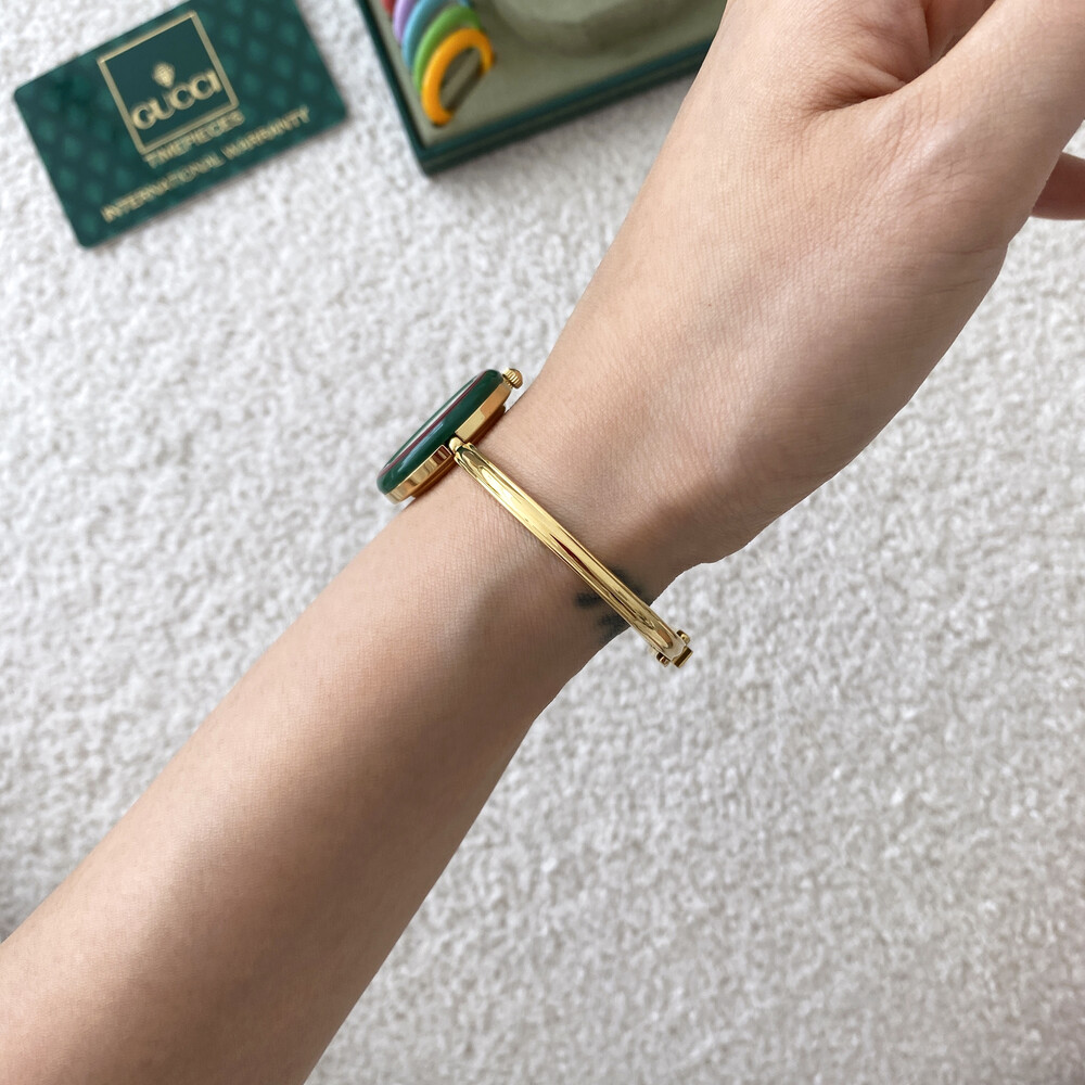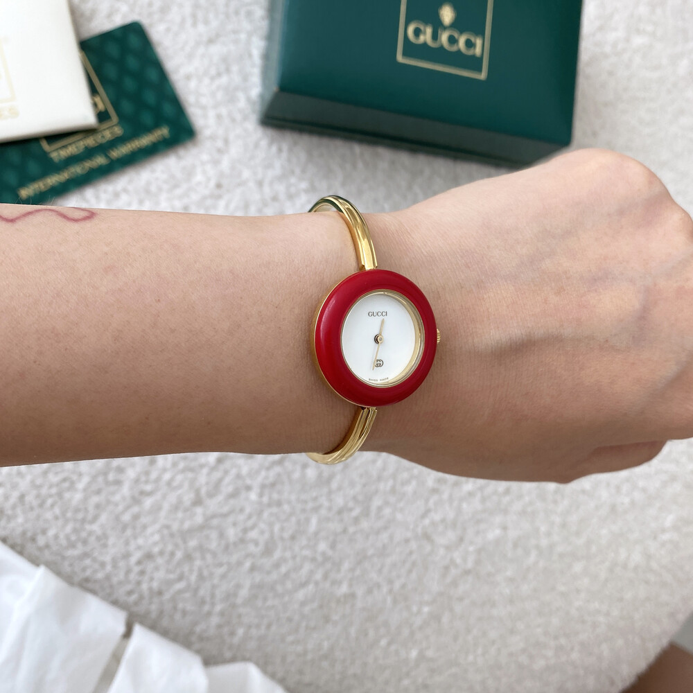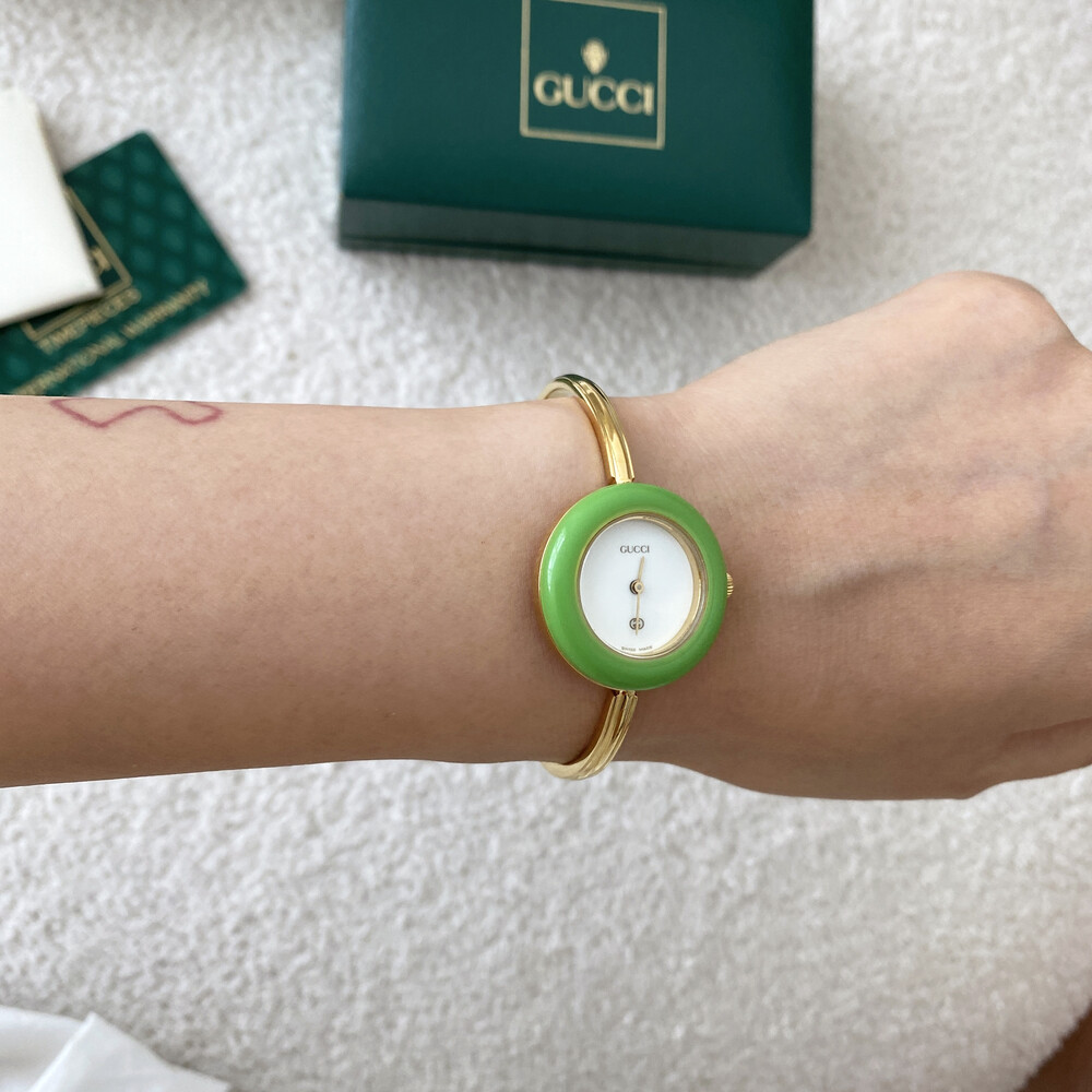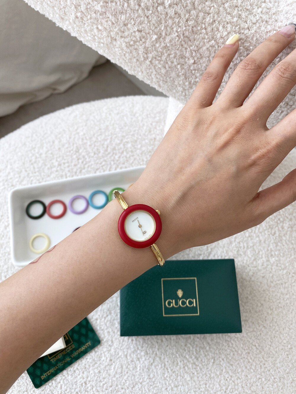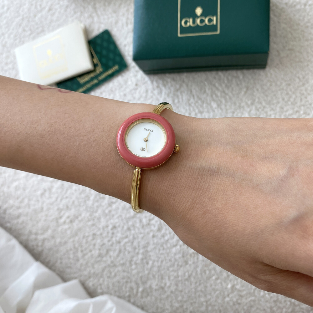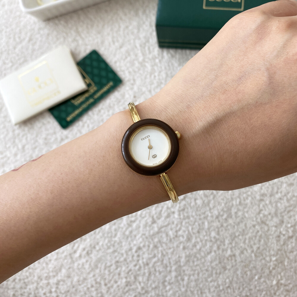 다양한 스타일을 연출할 수 있는 구찌 베젤 시계입니다.