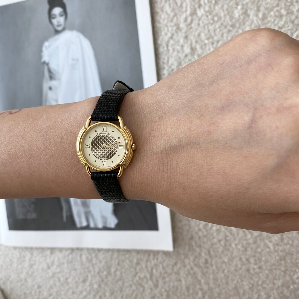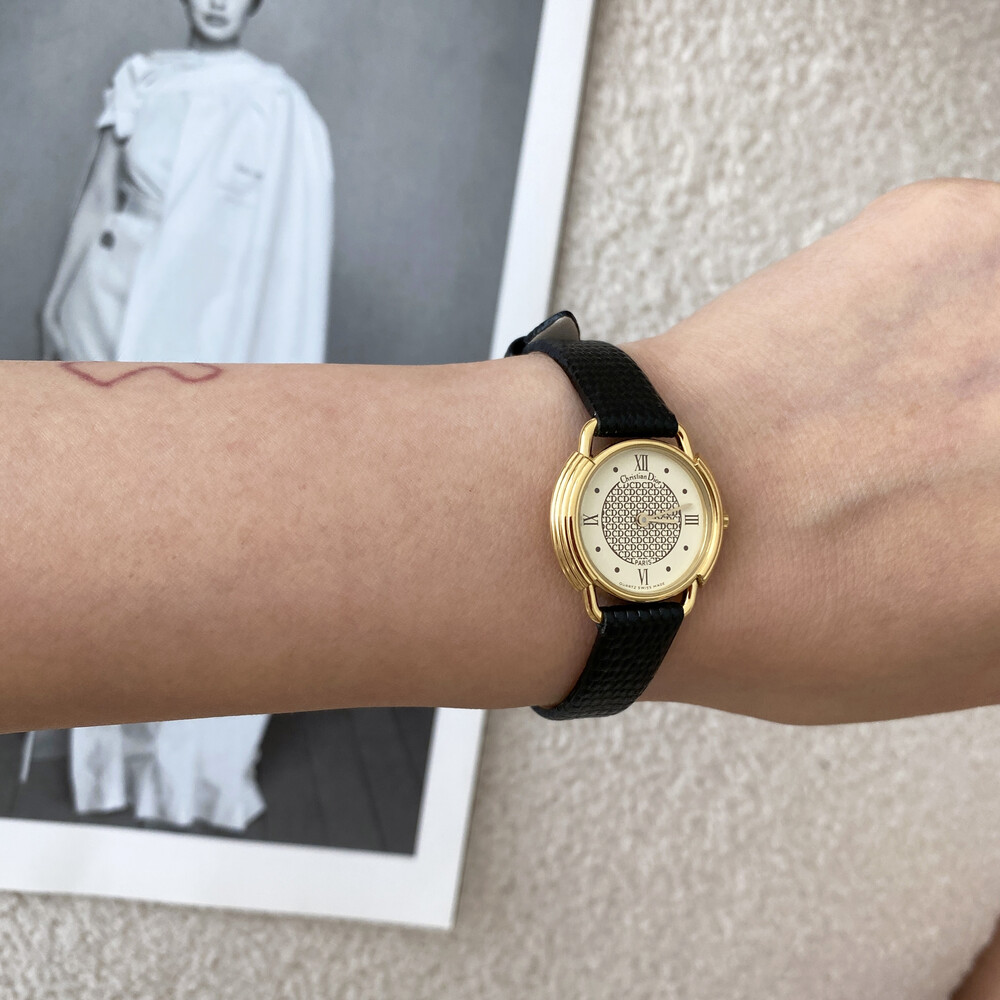 여성용으로 제작된 디올 시계이며 스위스 쿼츠 무브먼트로 제작되었습니다.