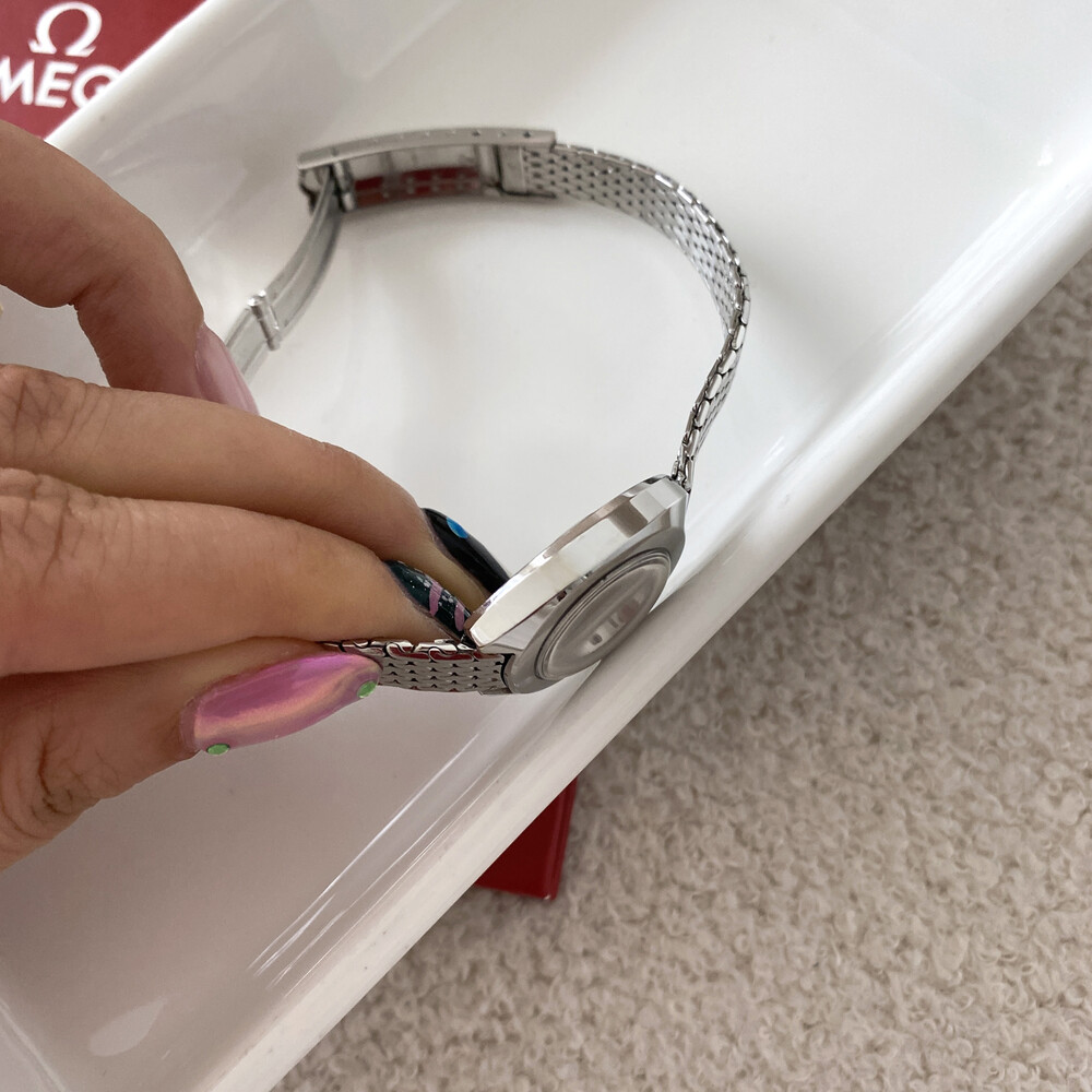돔 형태의 아크릴 글래스가 다이얼 위의 오메가 심볼을 더욱더 아름답게 해주는 모델입니다.