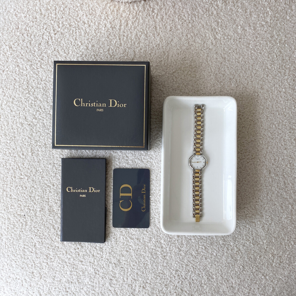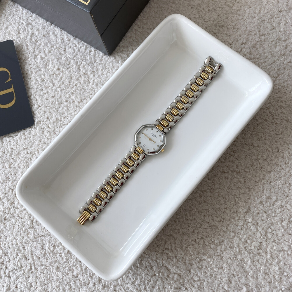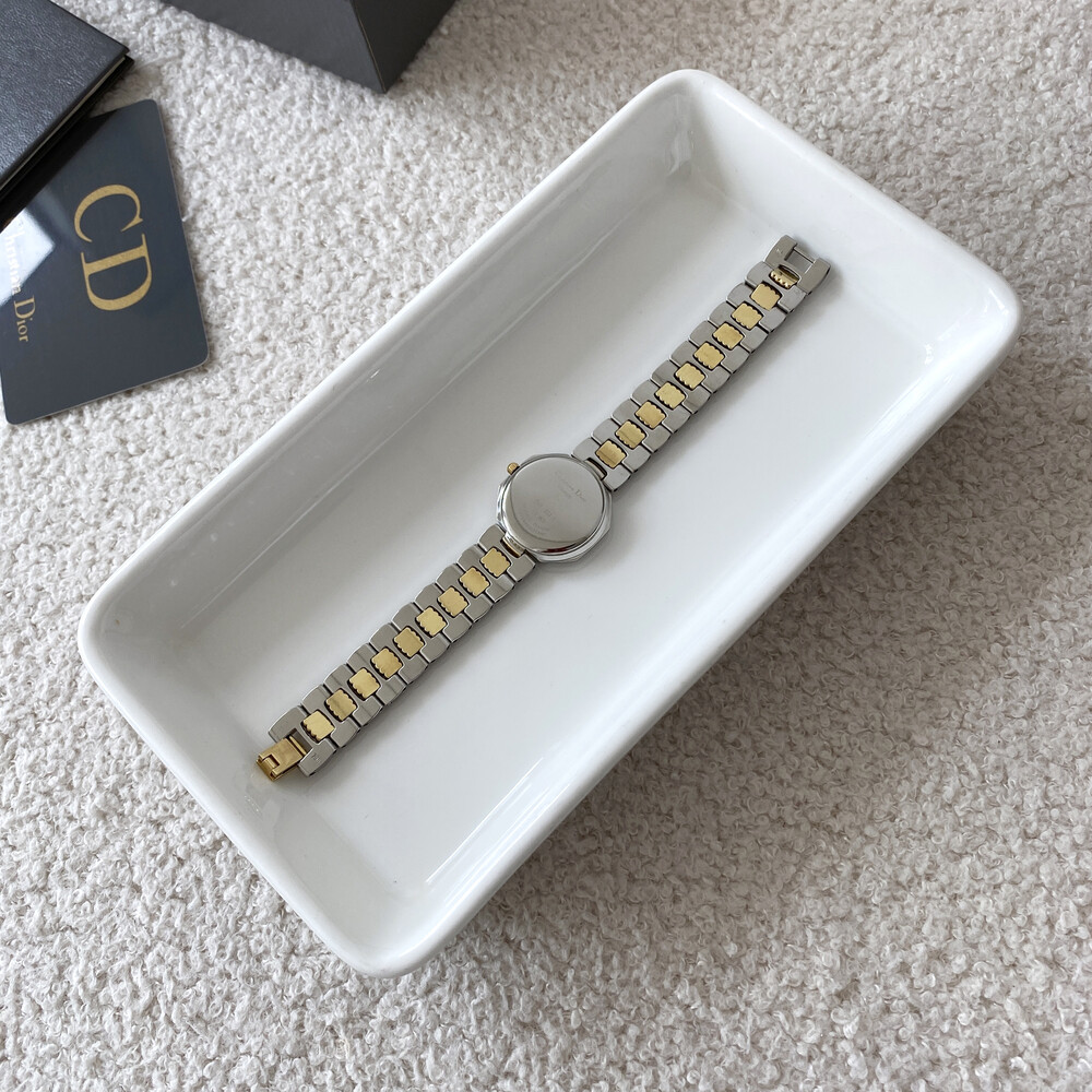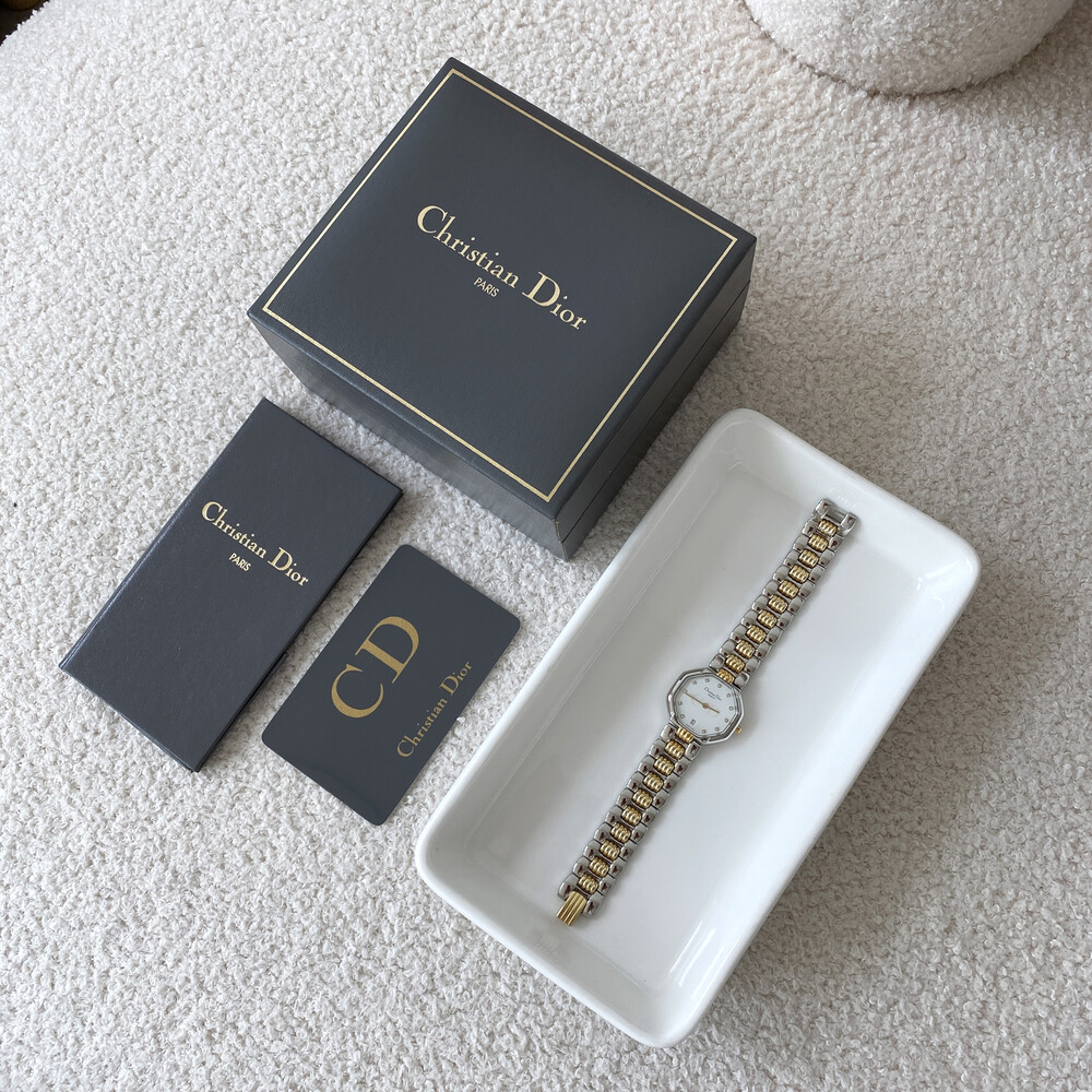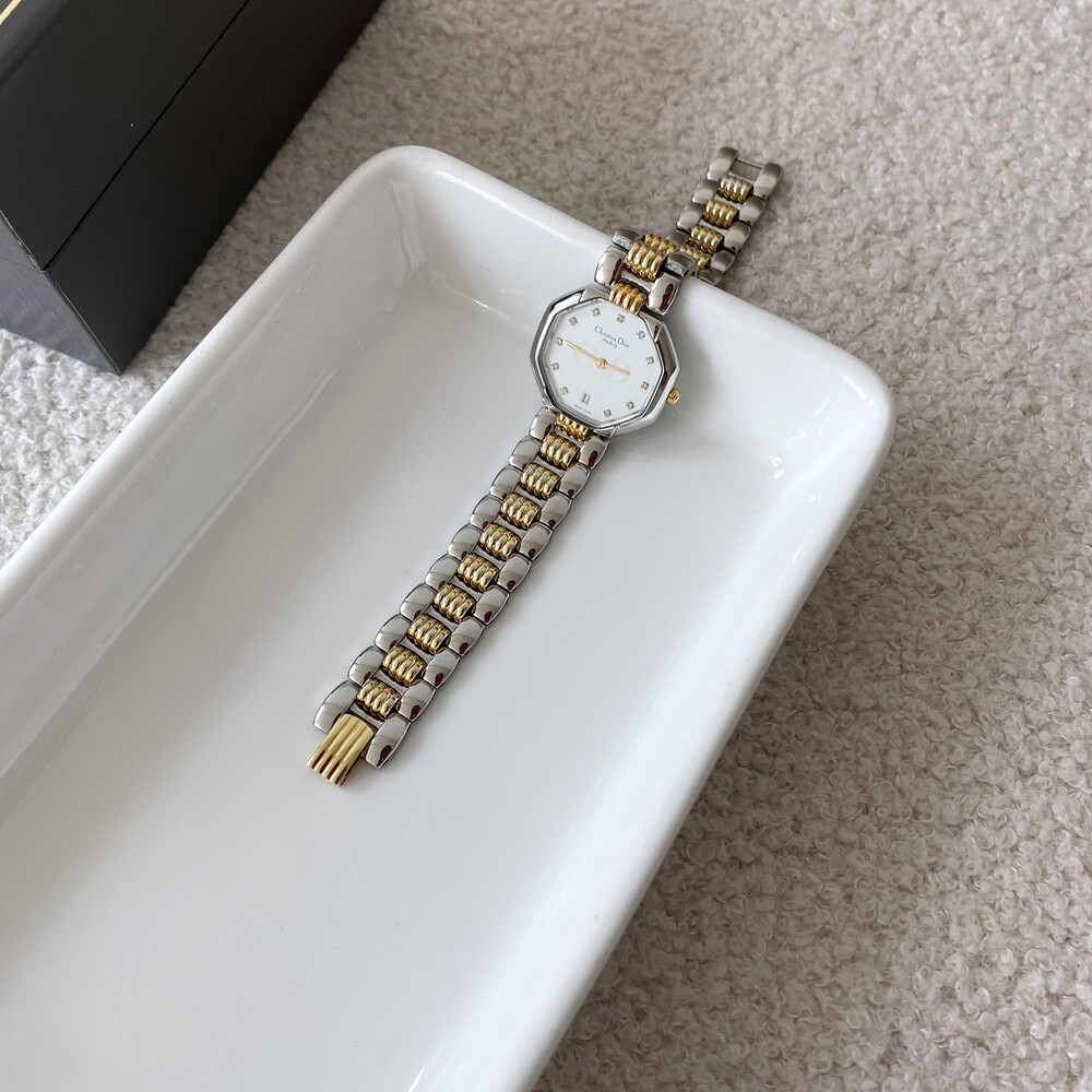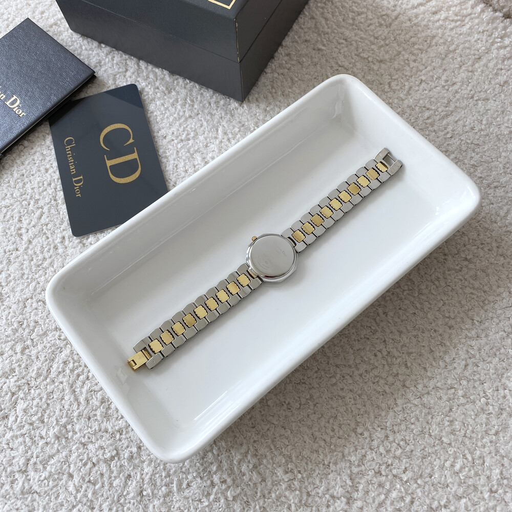 여성용으로 제작된 빈티지 디올 시계이며 스위스에서 생산된 쿼츠 무브먼트로 제작되었습니다.