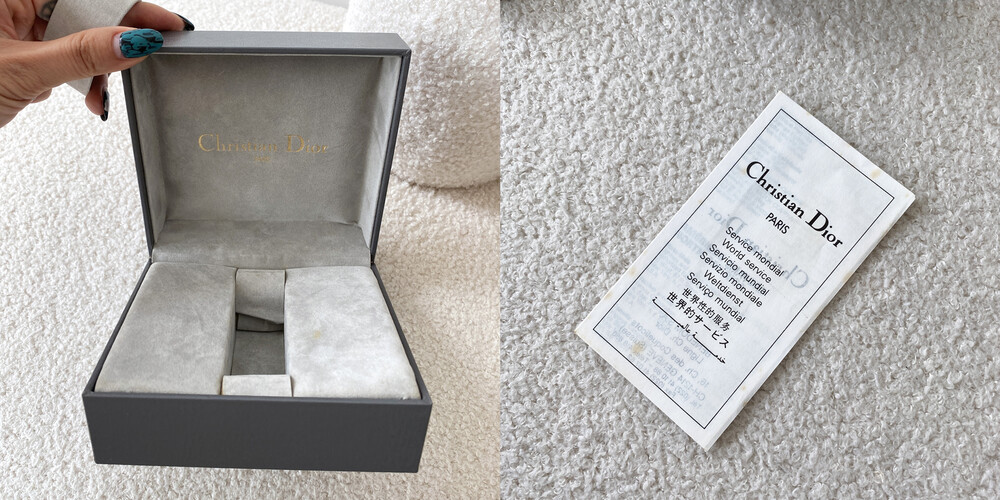 디올 시계 케이스, 서비스센터 책자, 사용설명서, 개런티 카드가 포함된 제품입니다.