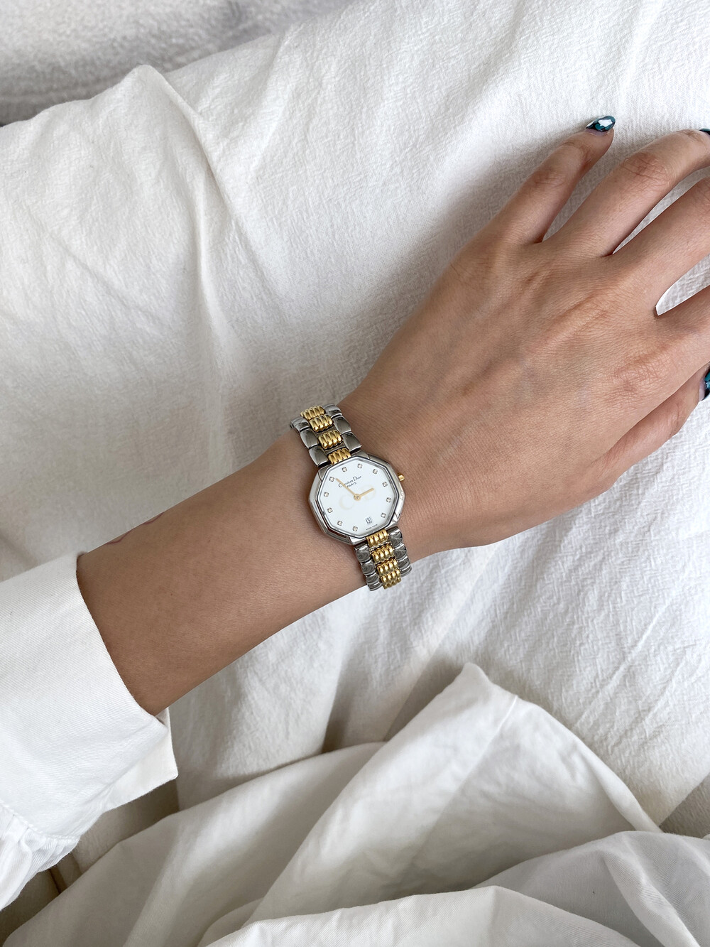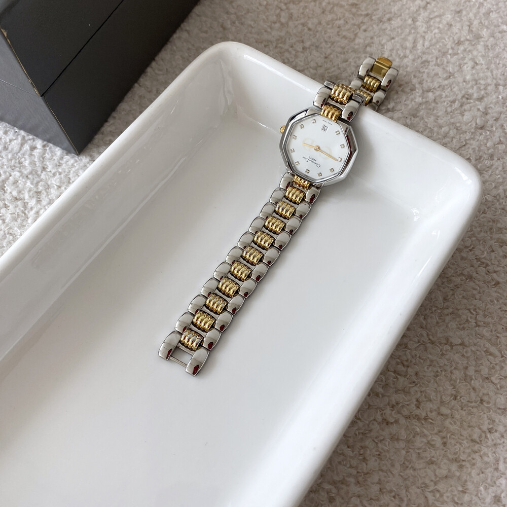 클래식한 옥타곤 타입의 케이스와 화이트 다이얼 위를 장식하는 CD 로고가 매력적인 모델입니다.