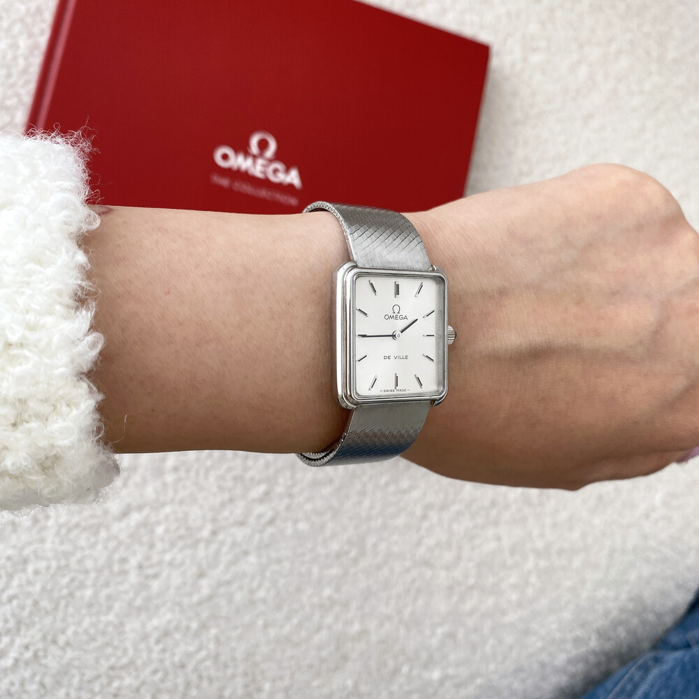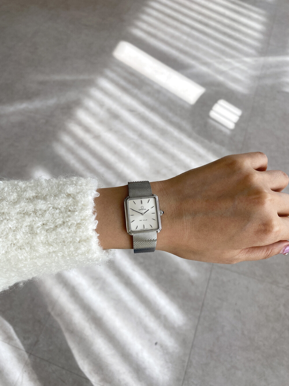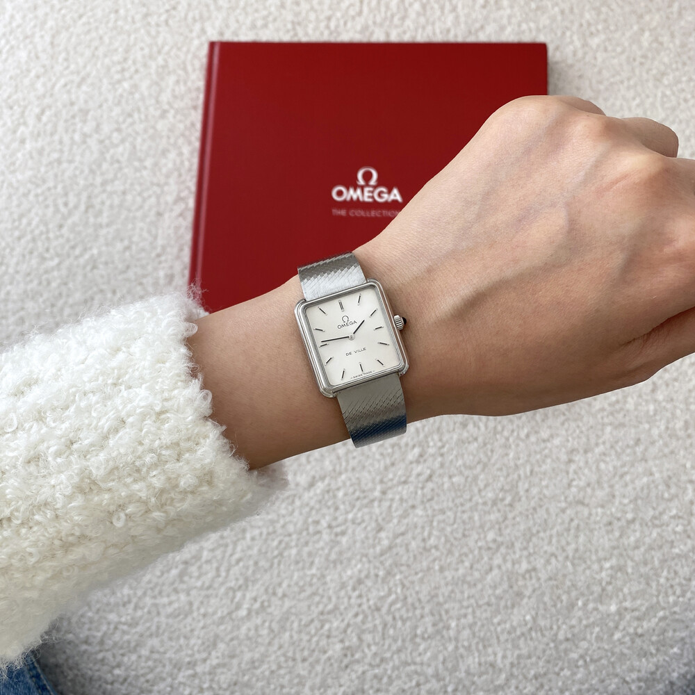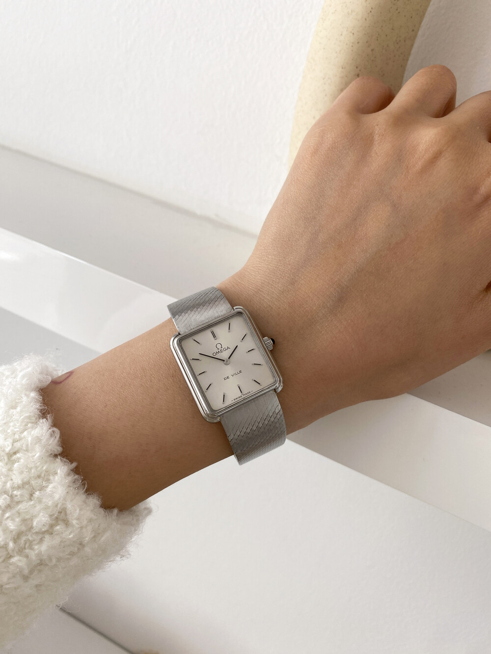 1978년도에 제작된 오메가 드빌 모델로 깔끔한 실버톤 다이얼과