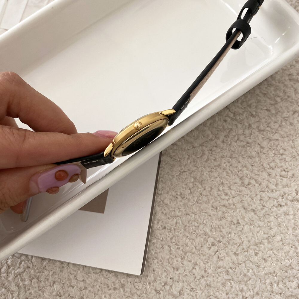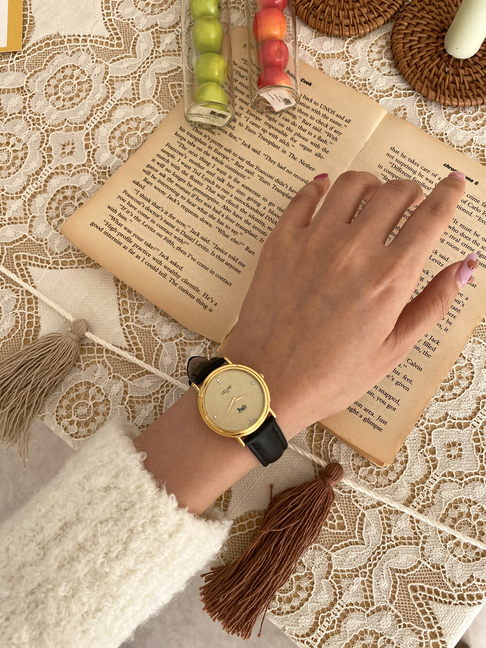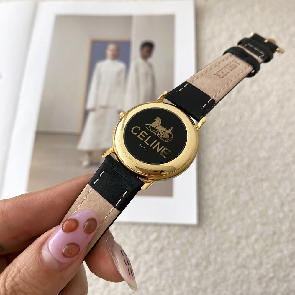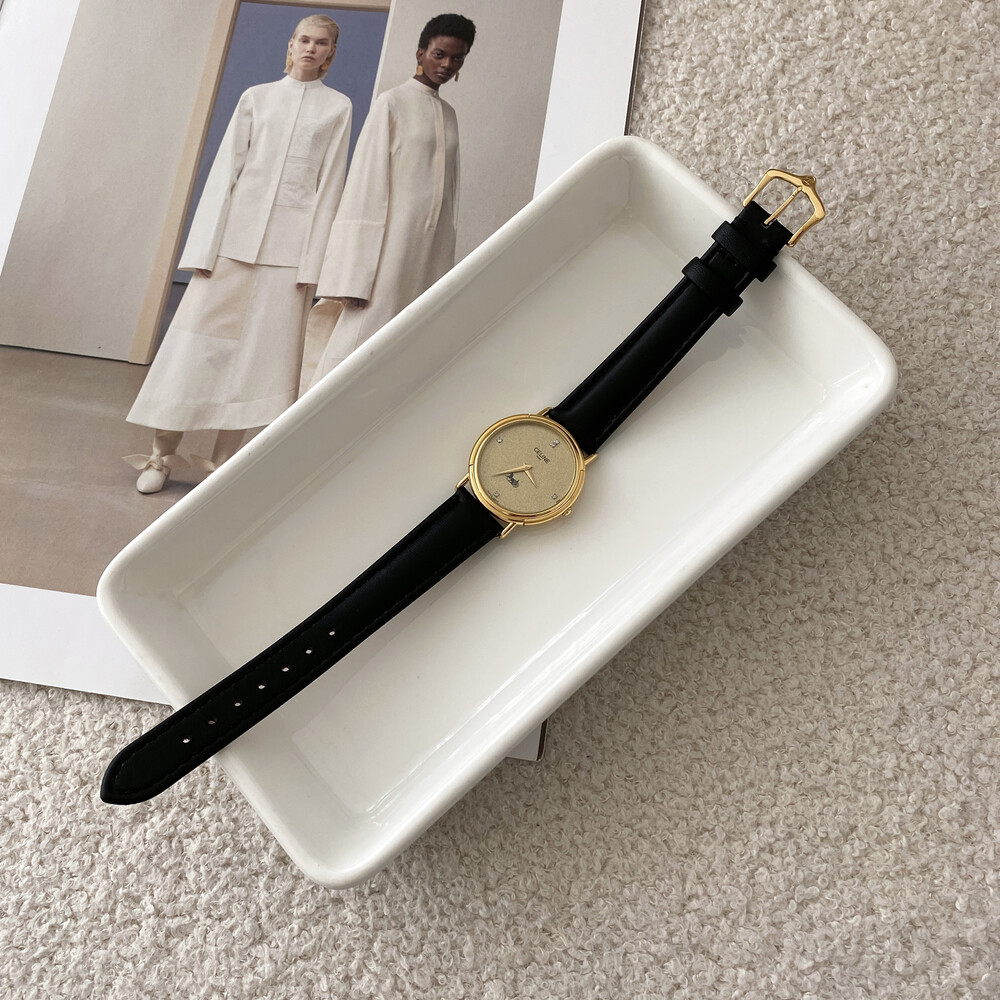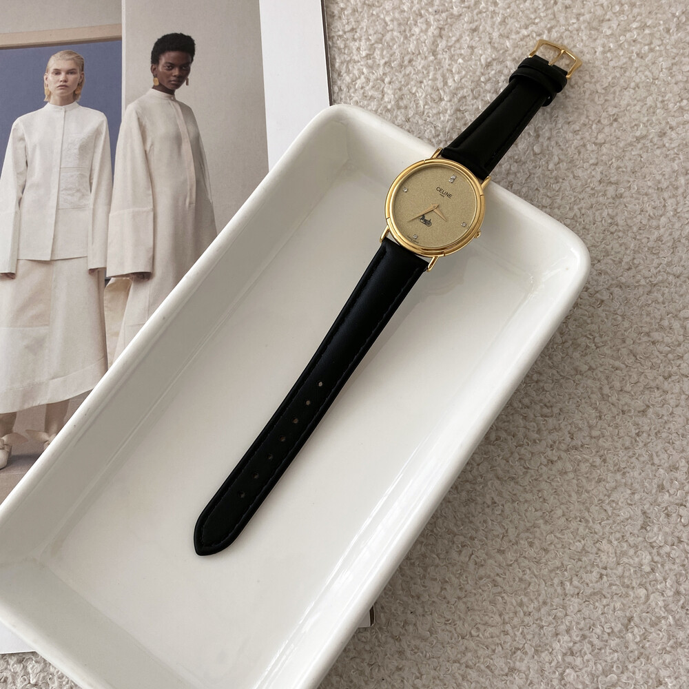 부드러운 골드 라운드 케이스와 다이얼 위를 장식하는 셀린느 마차 심볼이 매력적인 모델입니다.