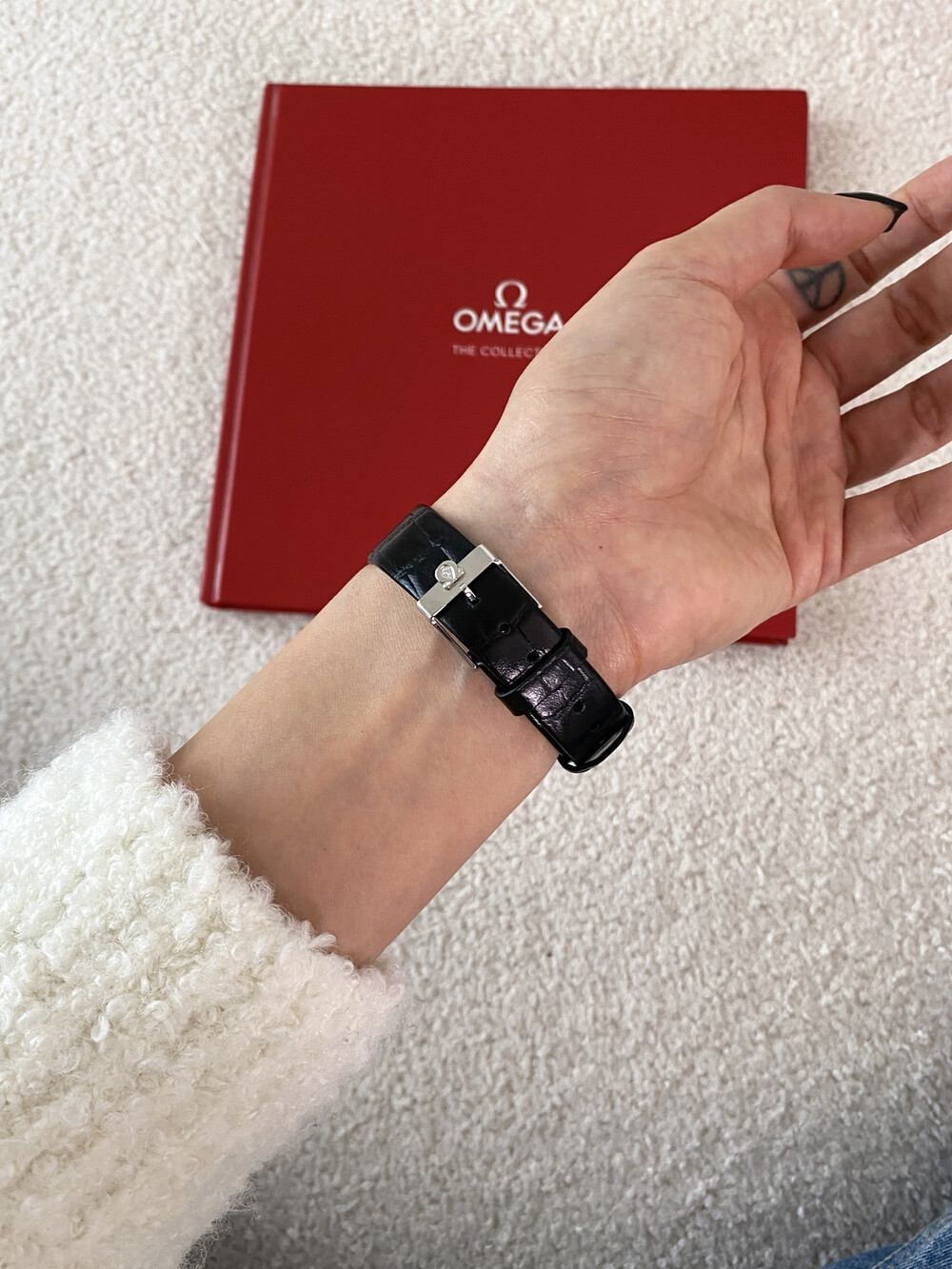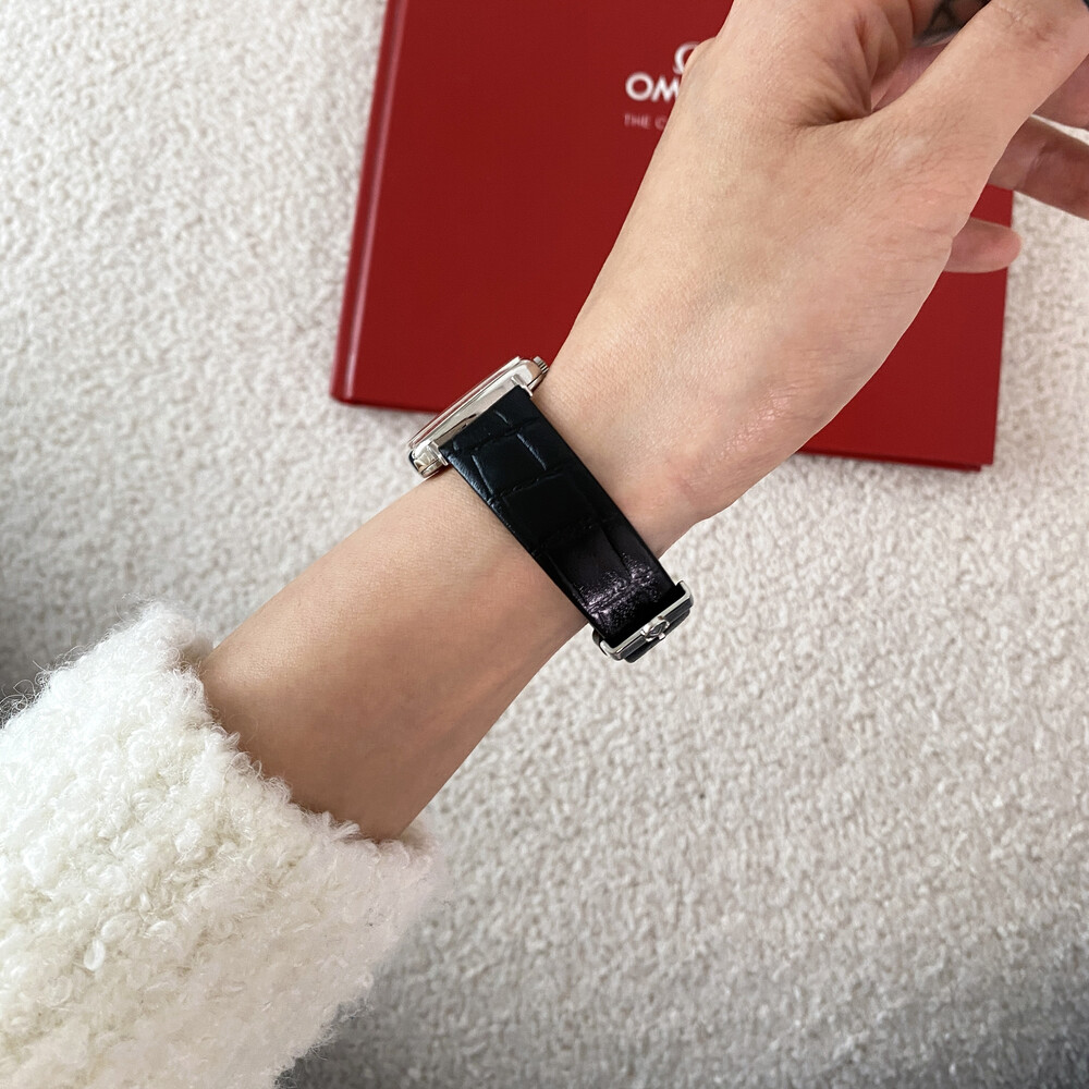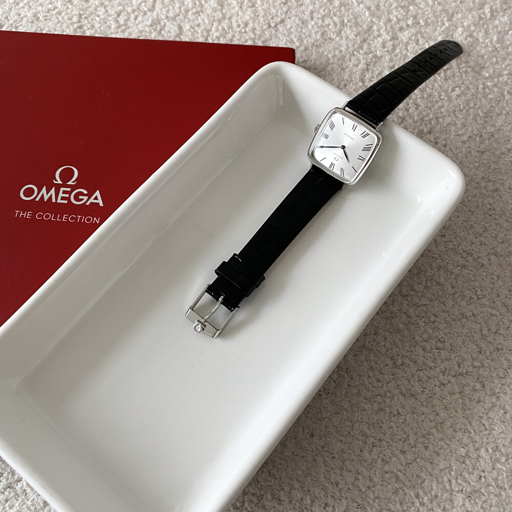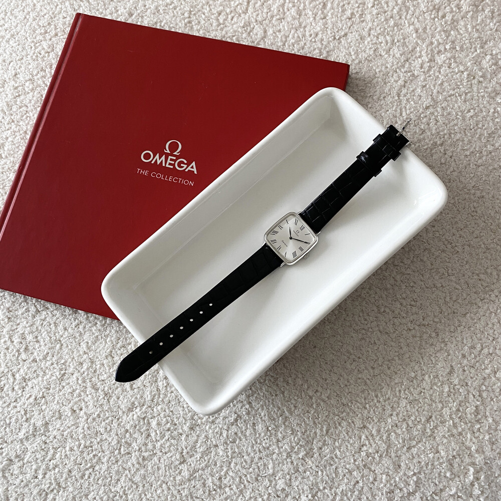 다이얼 위를 장식하는 로만 인덱스와 오메가 심볼이 매력적인 모델입니다.