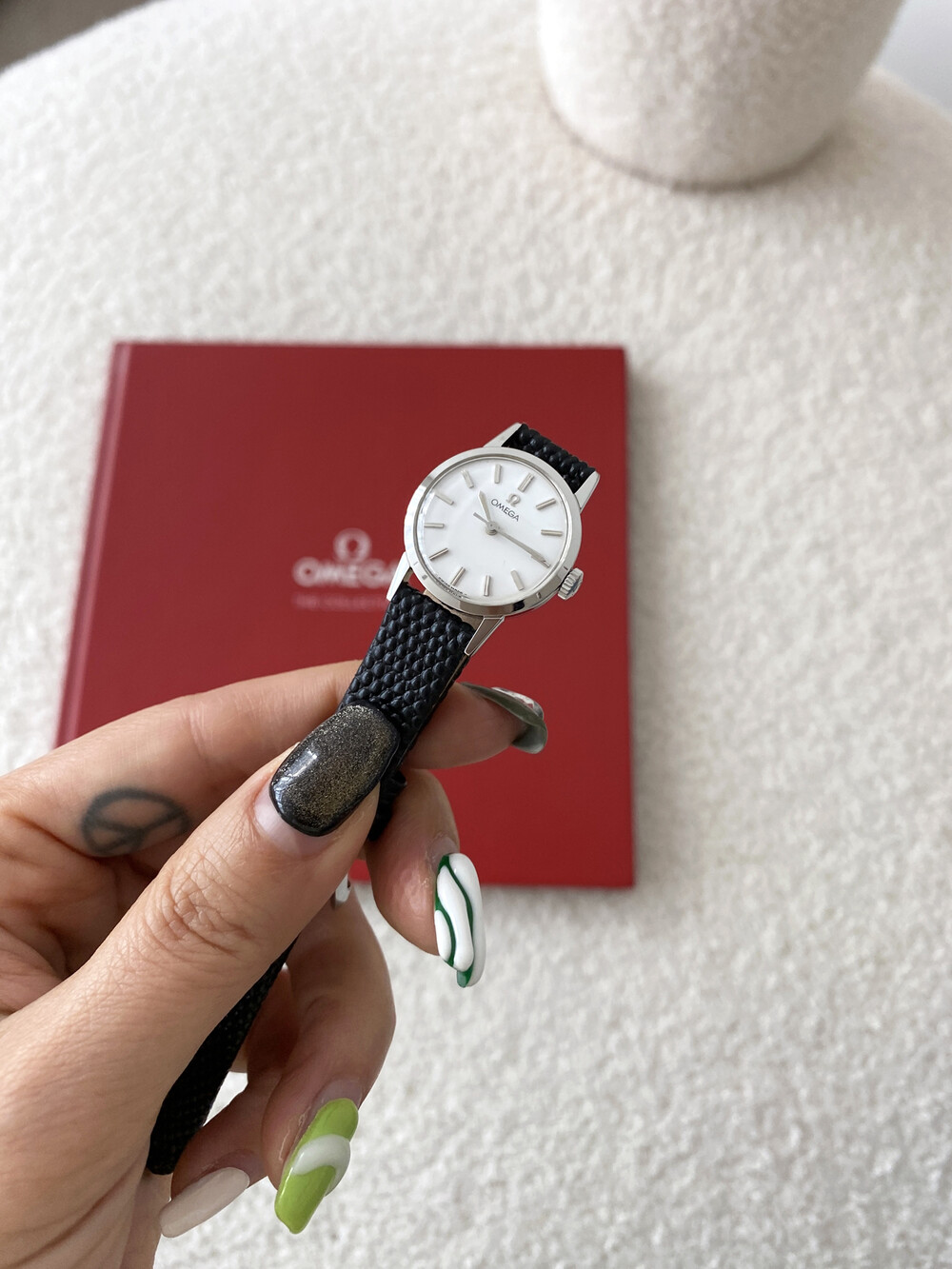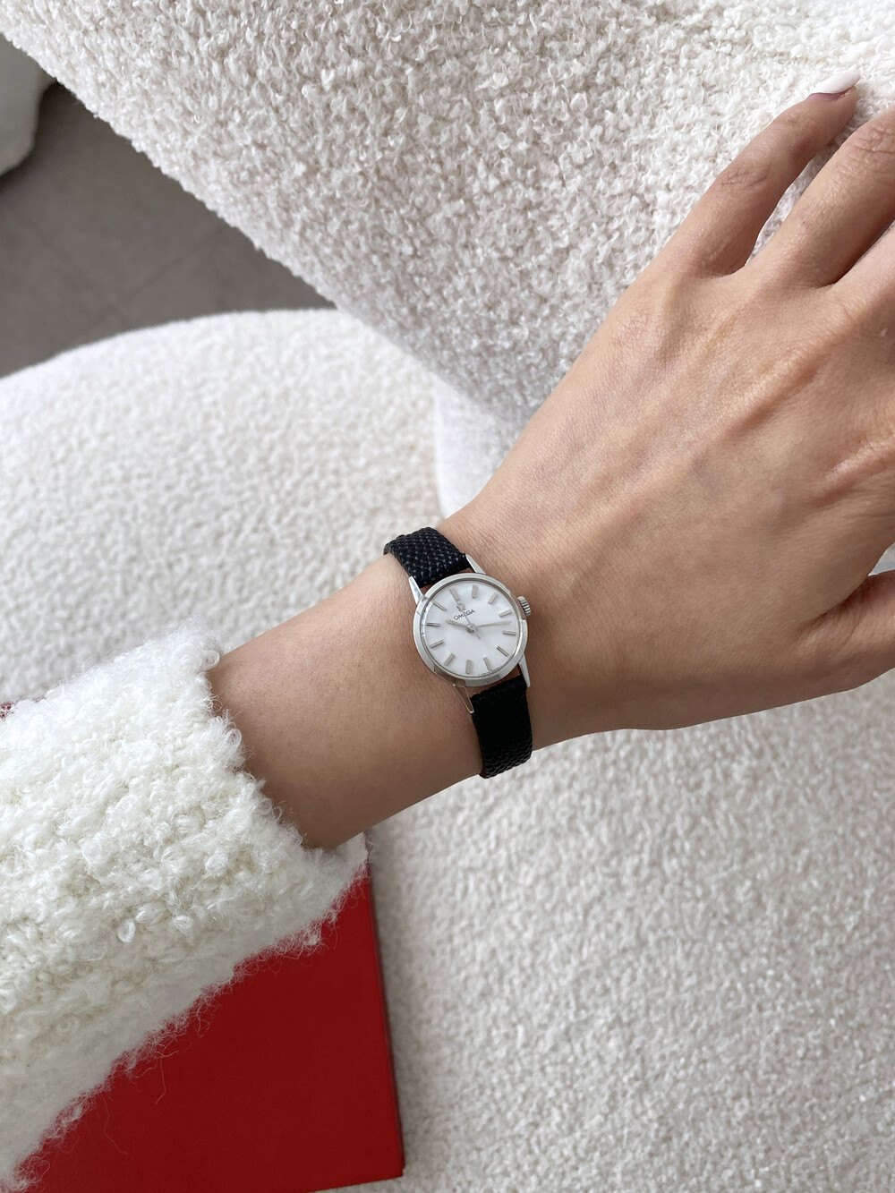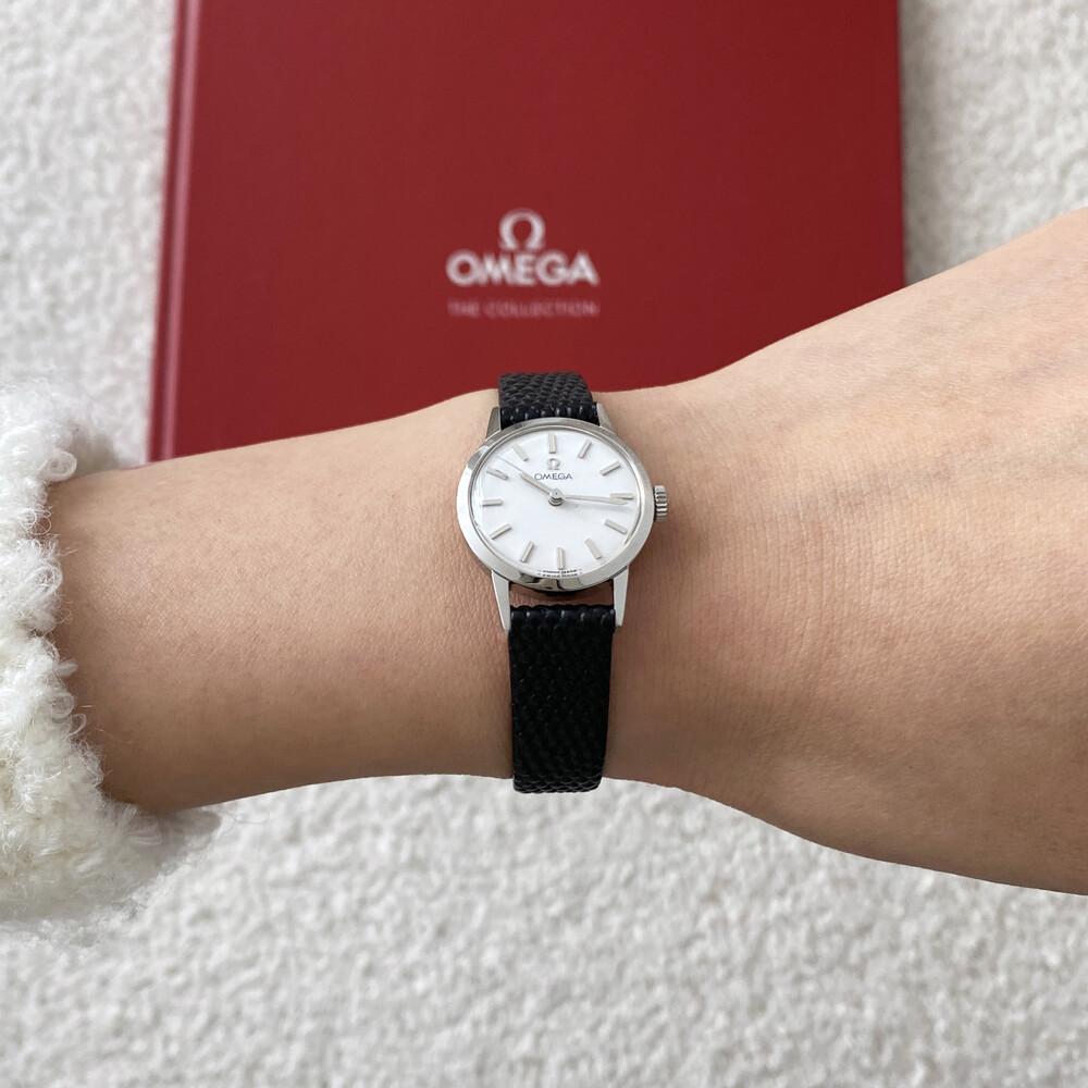 1962년도에 제작된 오메가 모델로 깔끔한 화이트 다이얼과 클래식한 바 인덱스,