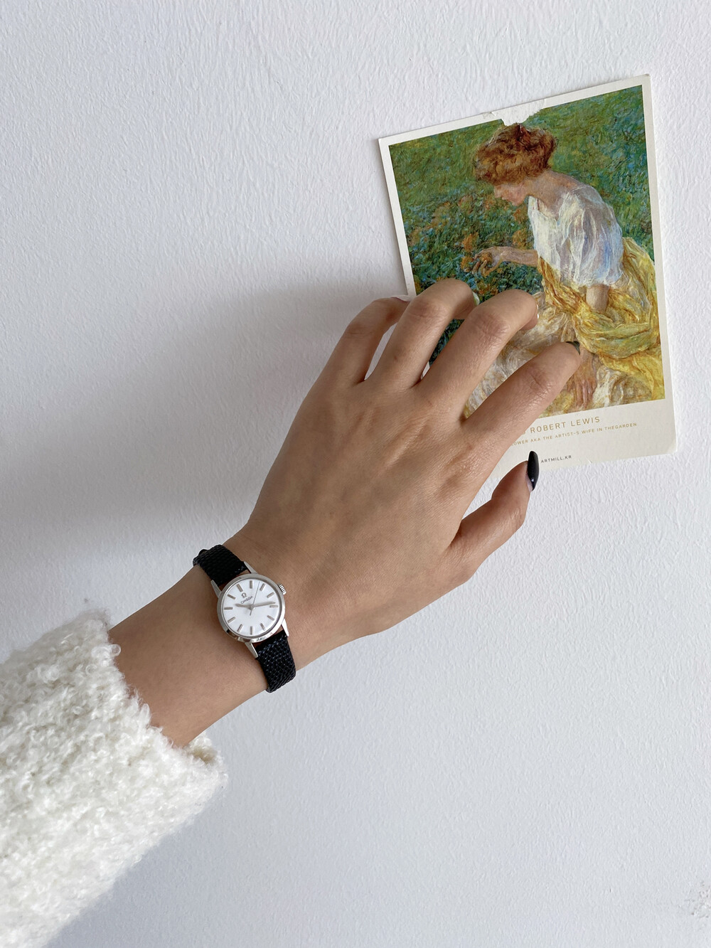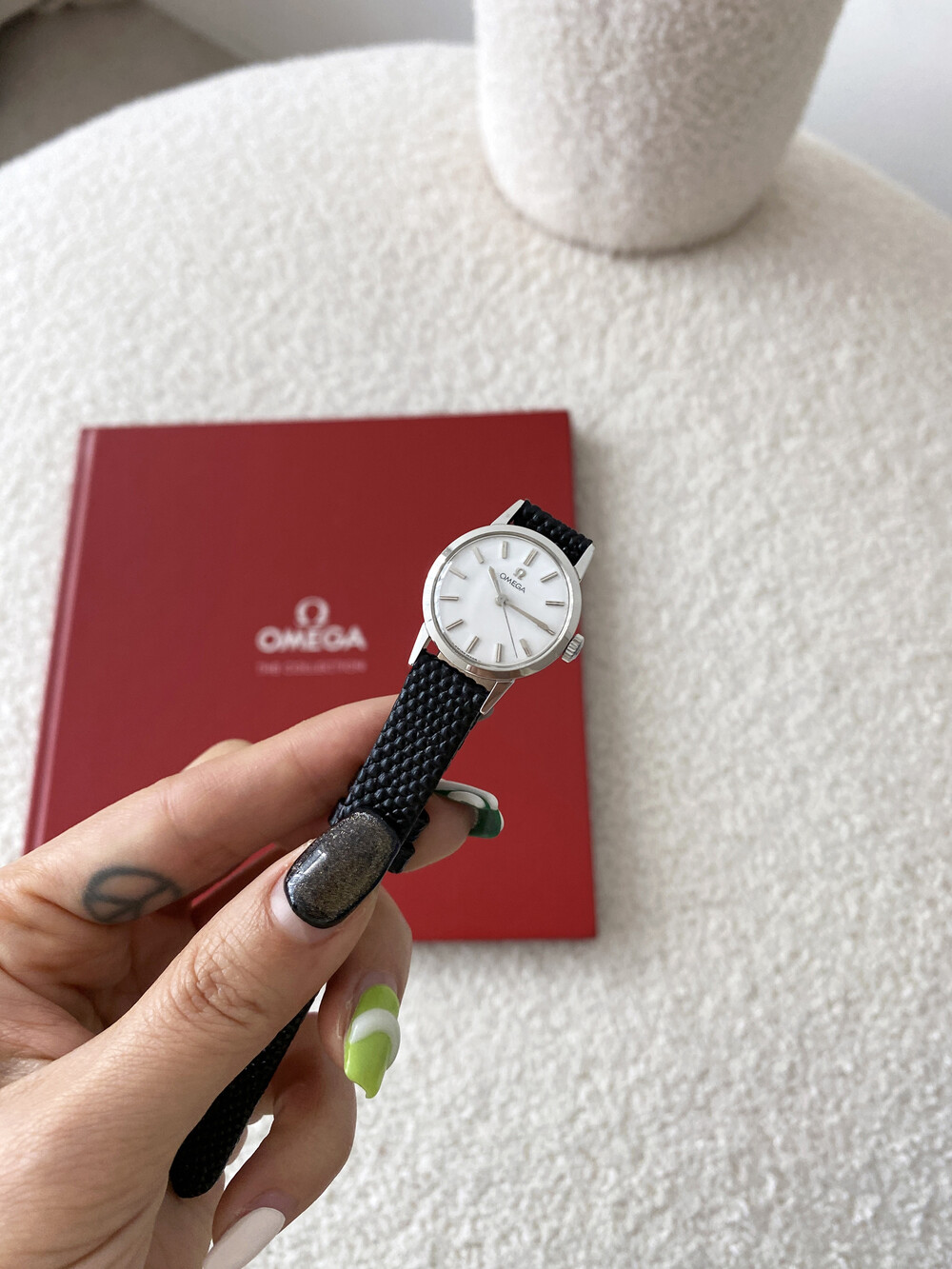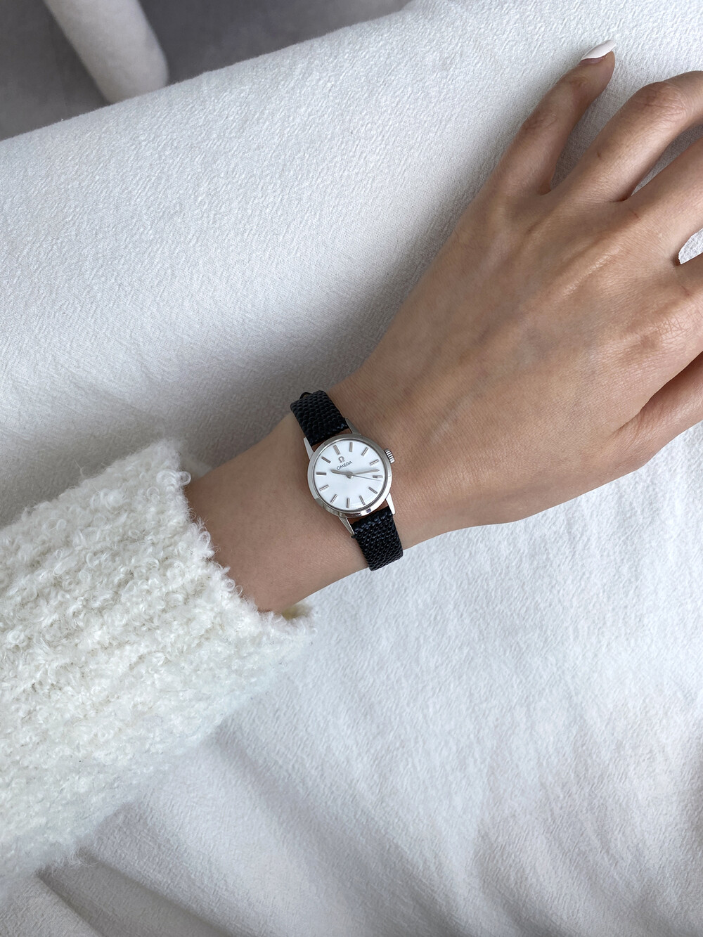 1962년도에 제작된 오메가 모델로 깔끔한 화이트 다이얼과 클래식한 바 인덱스,