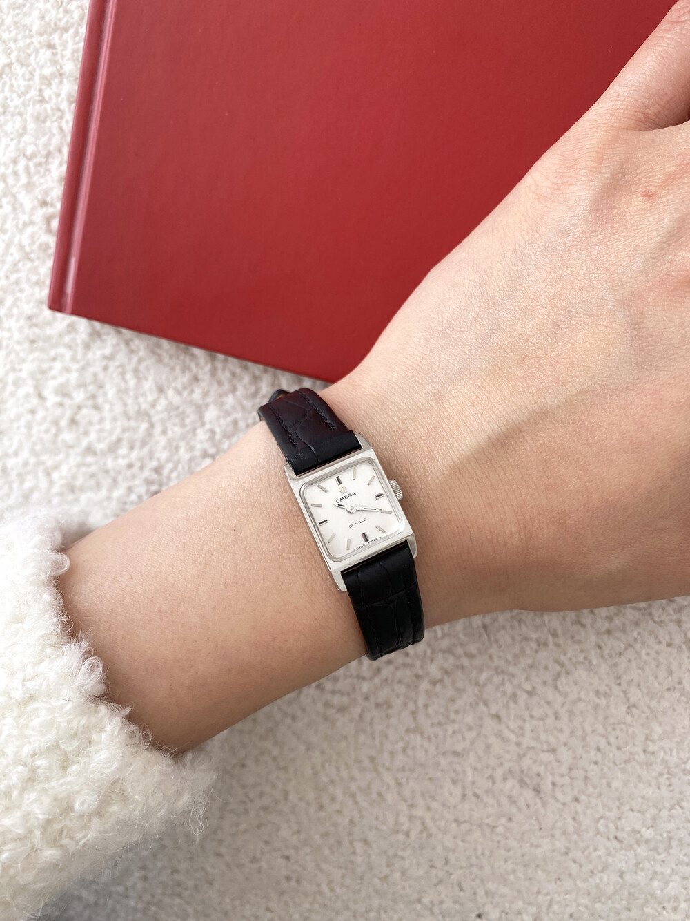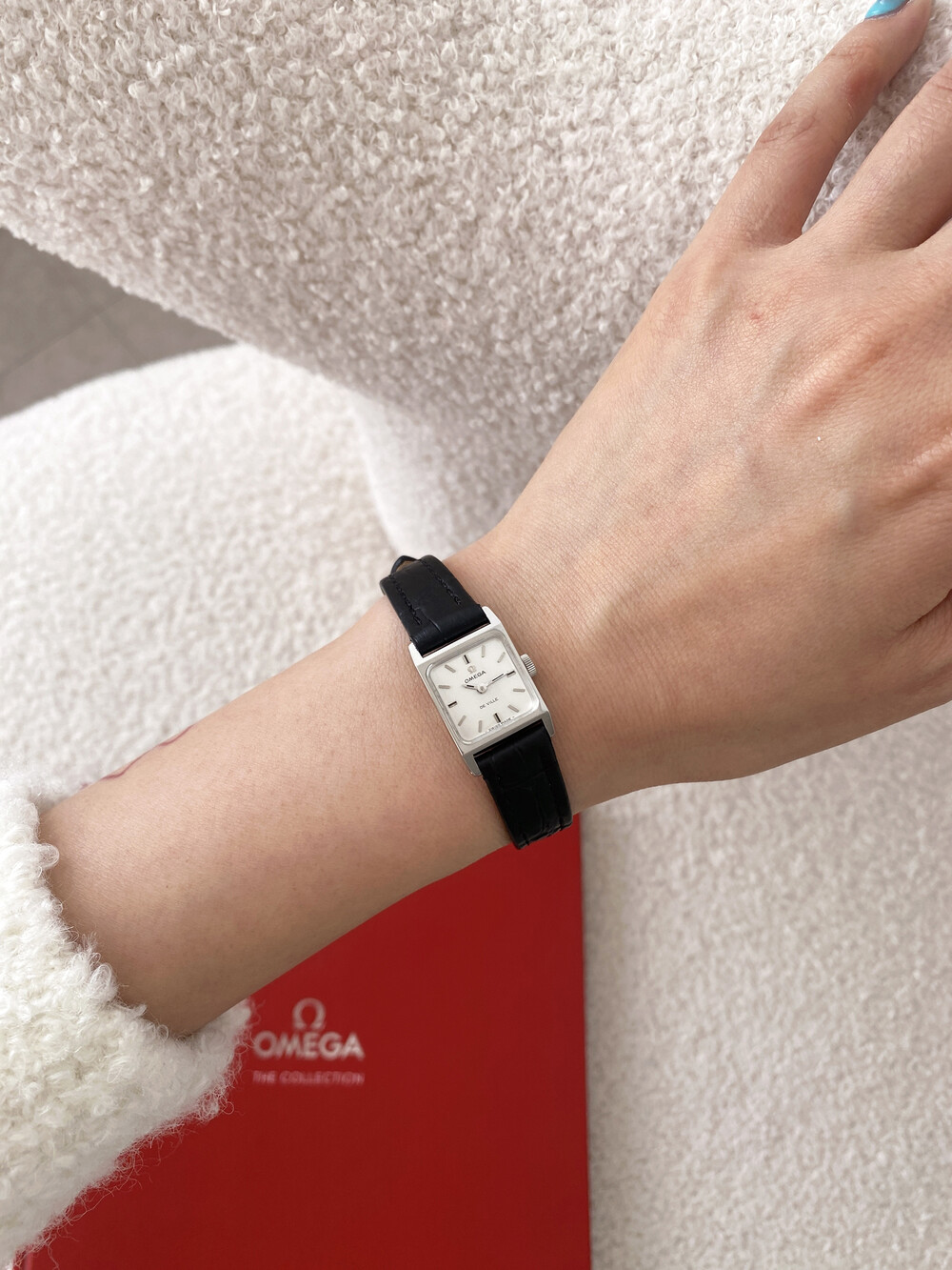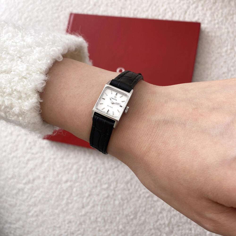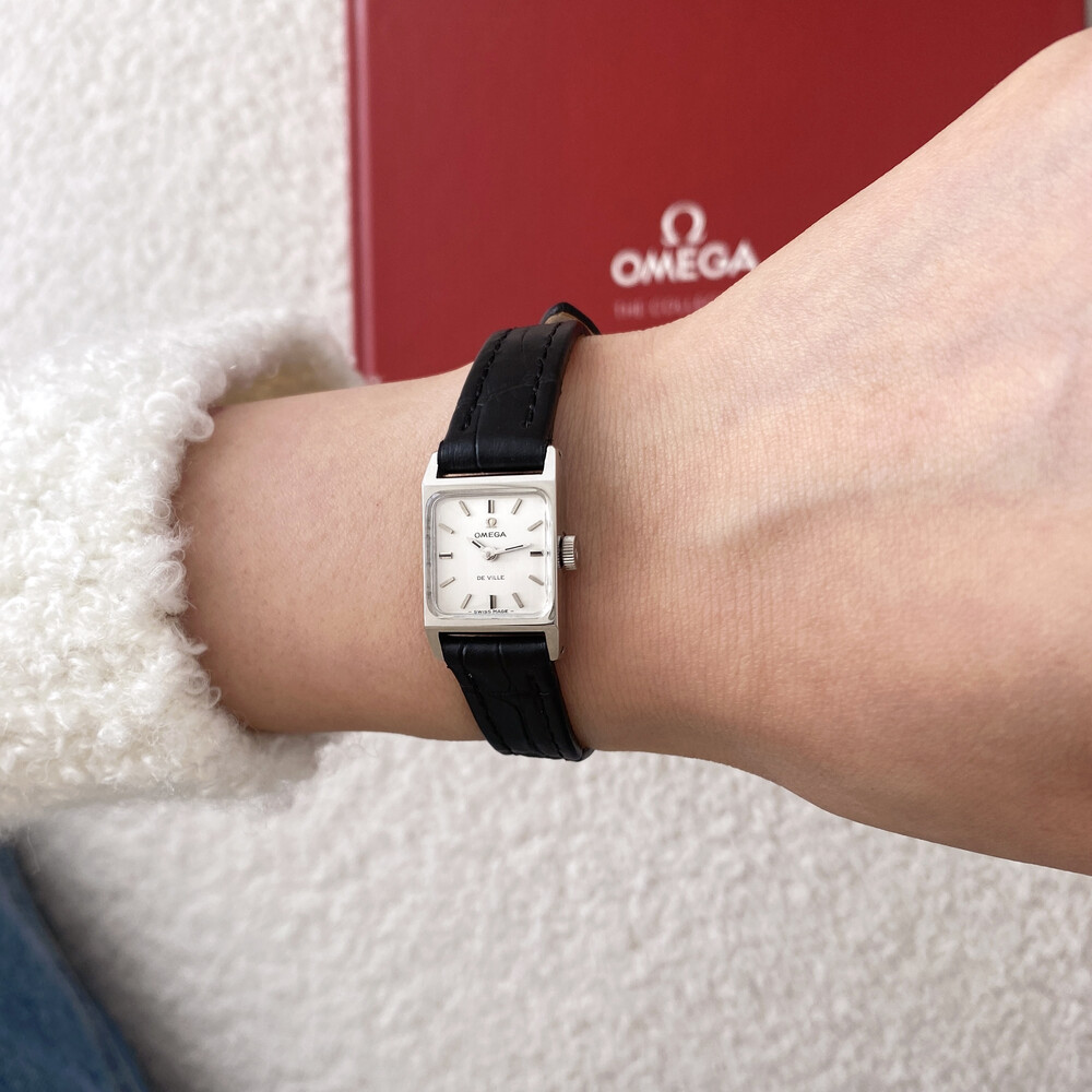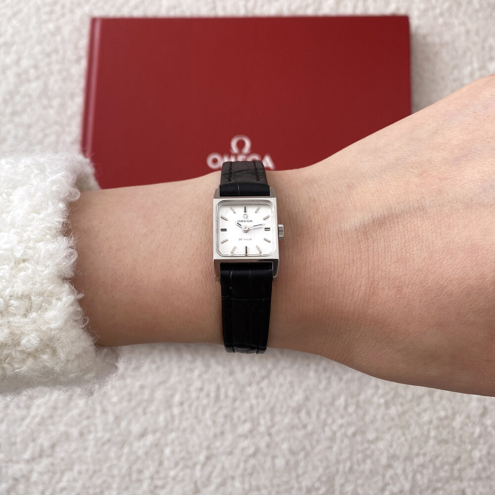 1970년도에 제작된 여성용 오메가 드빌 모델로 스퀘어 타입의 실버 케이스와