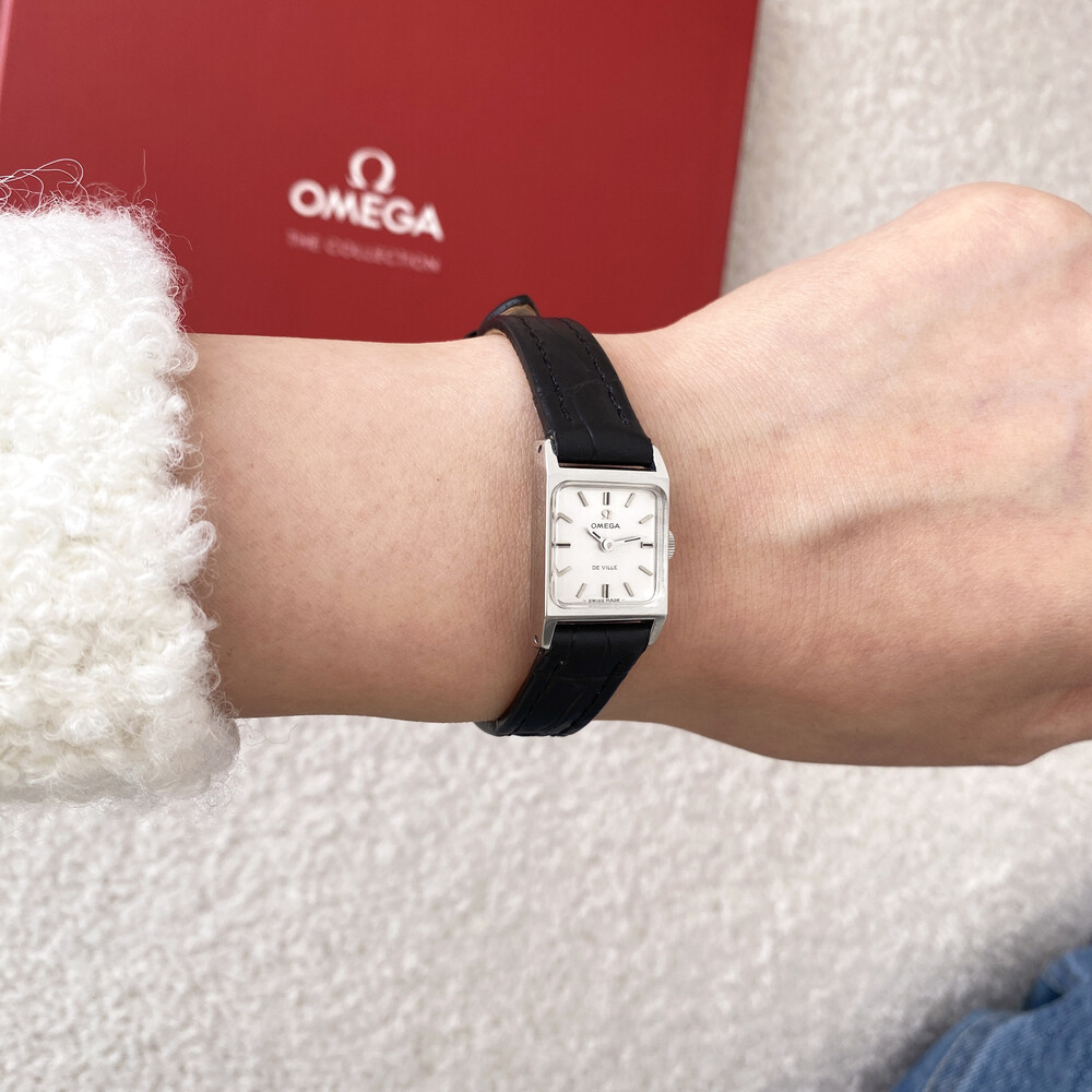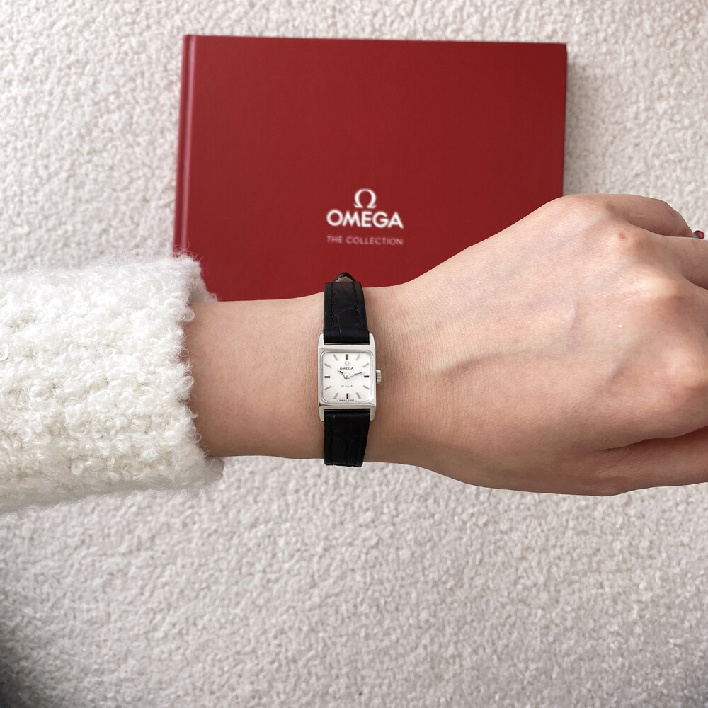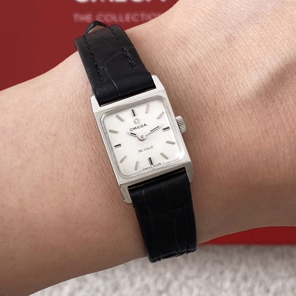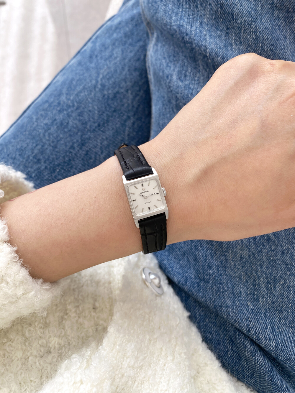 1970년도에 제작된 여성용 오메가 드빌 모델로 스퀘어 타입의 실버 케이스와